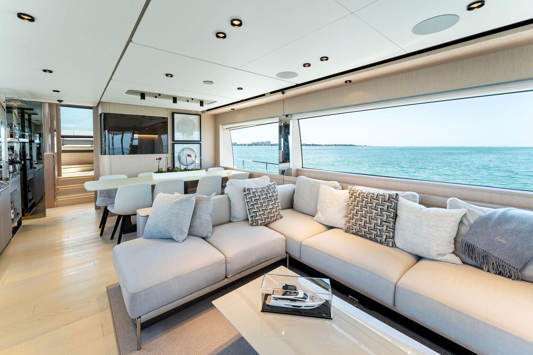 2023 Ferretti Yachts 780 The harmony in the internal and external volumes creates the perfect ambience for all kinds of cruising. Comfort, poise and safety at sea are the hallmarks of a new-concept vessel with a pleasing aerodynamic design. A true style leader, this is a yacht for enjoying the sea to the full.Evolution is the watchword behind the Ferretti Yachts design vision – and has been for over half a century. This constant quest is filled by the nautical expertise and inventive inspiration to make yachts that fulfil owners’ every desire for comfort, style, seaworthiness and safety on the waves. The philosophy shines through in the flowing design of the sporty lines and the sophisticated, comfortable interiors, emblems of a truly timeless elegance.A major new advance at the stern offers the amenity of a real beach club, courtesy of the new door-opening system that transforms the area into a delightful area to relax in at the water’s edge. A roll bar can be fitted for satellite installations, along with an optional modular hard top with a central awning or glass canopy. Like the rest of the Ferretti Yachts fleet, this new 78-footer is also available in a Tai He Ban version. It is a design philosophy that has won critical acclaim and aficionado affection around the world, including across the Asia Pacific.