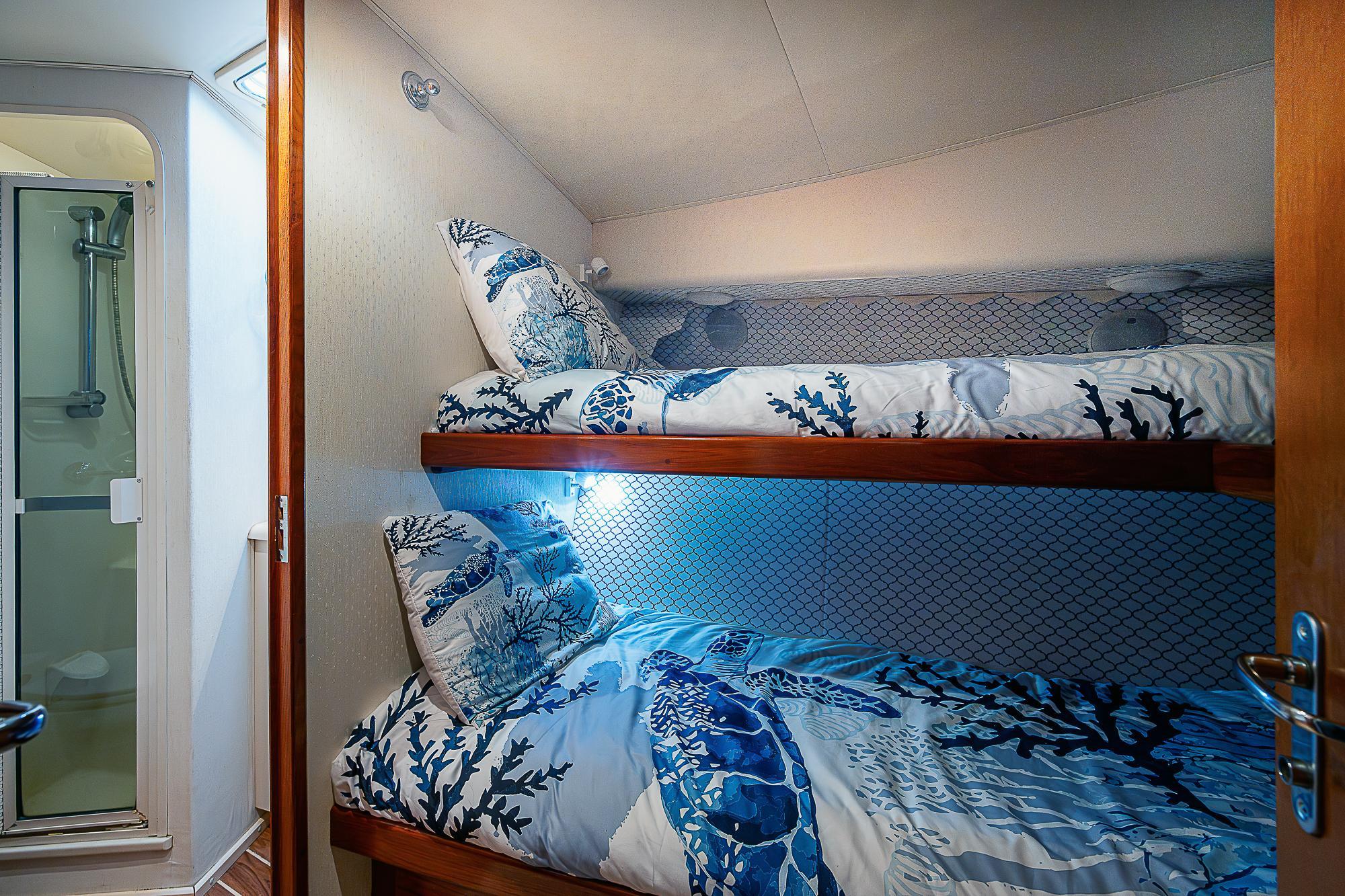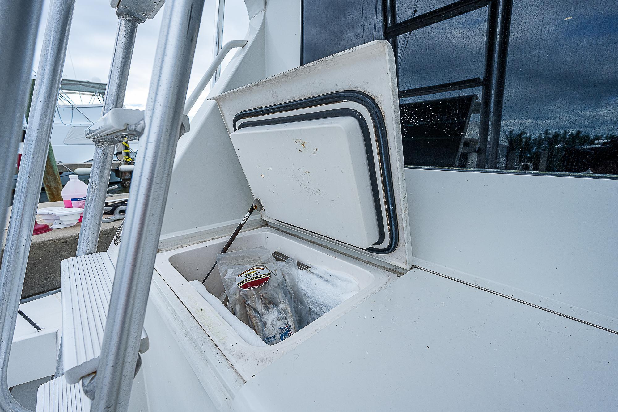 - Tank access and storage port and starboard at the entrance with cockpit freezer thermostat