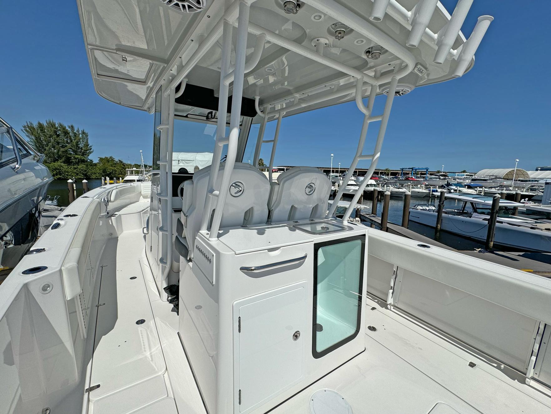 Available In Store: Tampa - HIN: DMA13163G425Edgewater 340CCTwin Yamaha 450sOur focus was clear: to design the first 34-footer built for both anglers and families. The 340CC features an optimized length-to-beam ratio, making it the perfect family-fishing boat with a deep-V hull. We incorporated a foldable visibility step into the helm seat base, allowing anyone to comfortably pilot the boat when deployed. Storage is essential for family outings, and the space beneath the forward lounge seat offers ample room for gear, dive tanks, fenders, buckets, the bow table, and forward backrests. This 34-foot boat offers amenities typically found in 40-50 footers.We're proud to showcase Edgewater boats at our Tampa Showroom