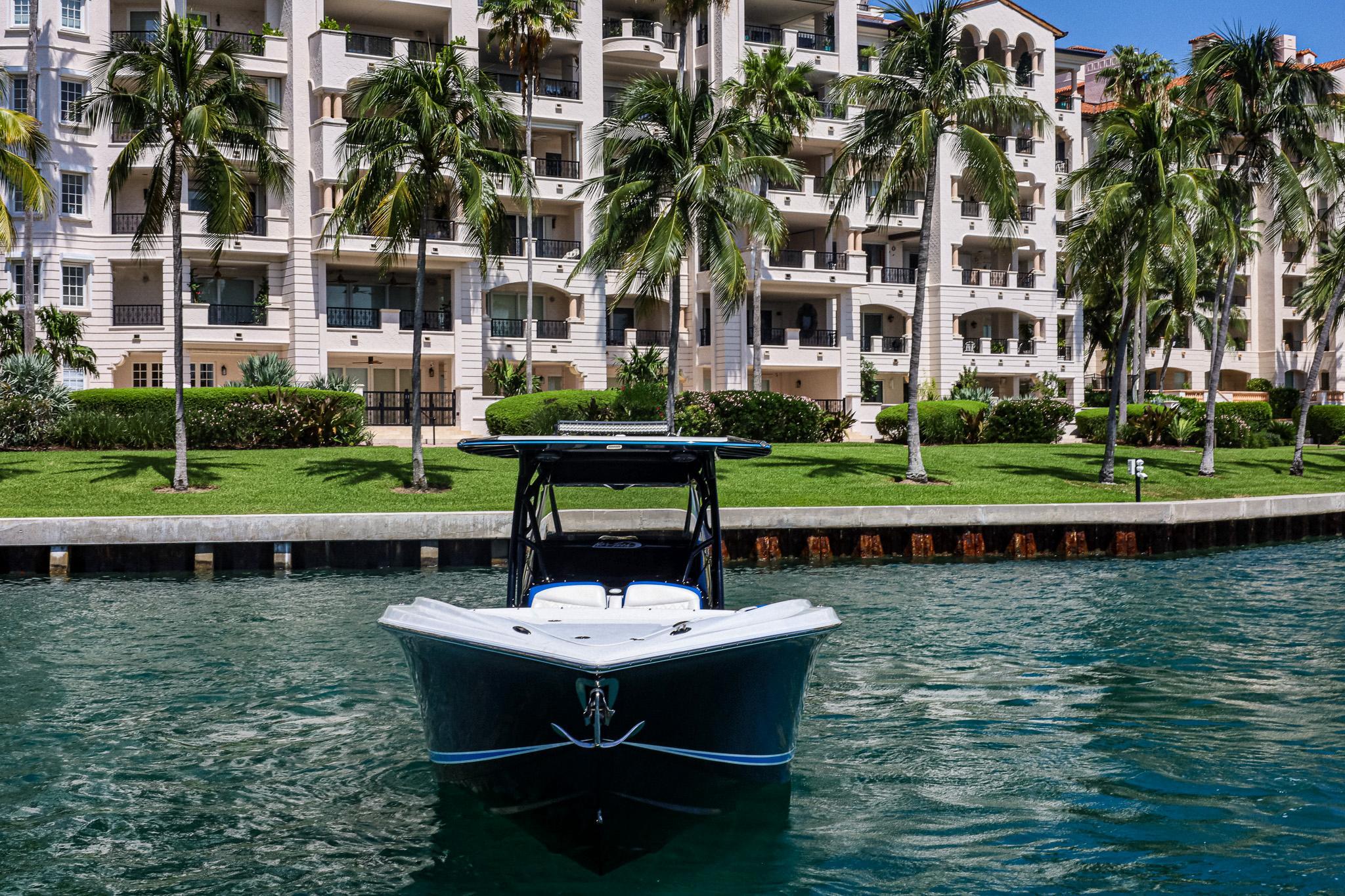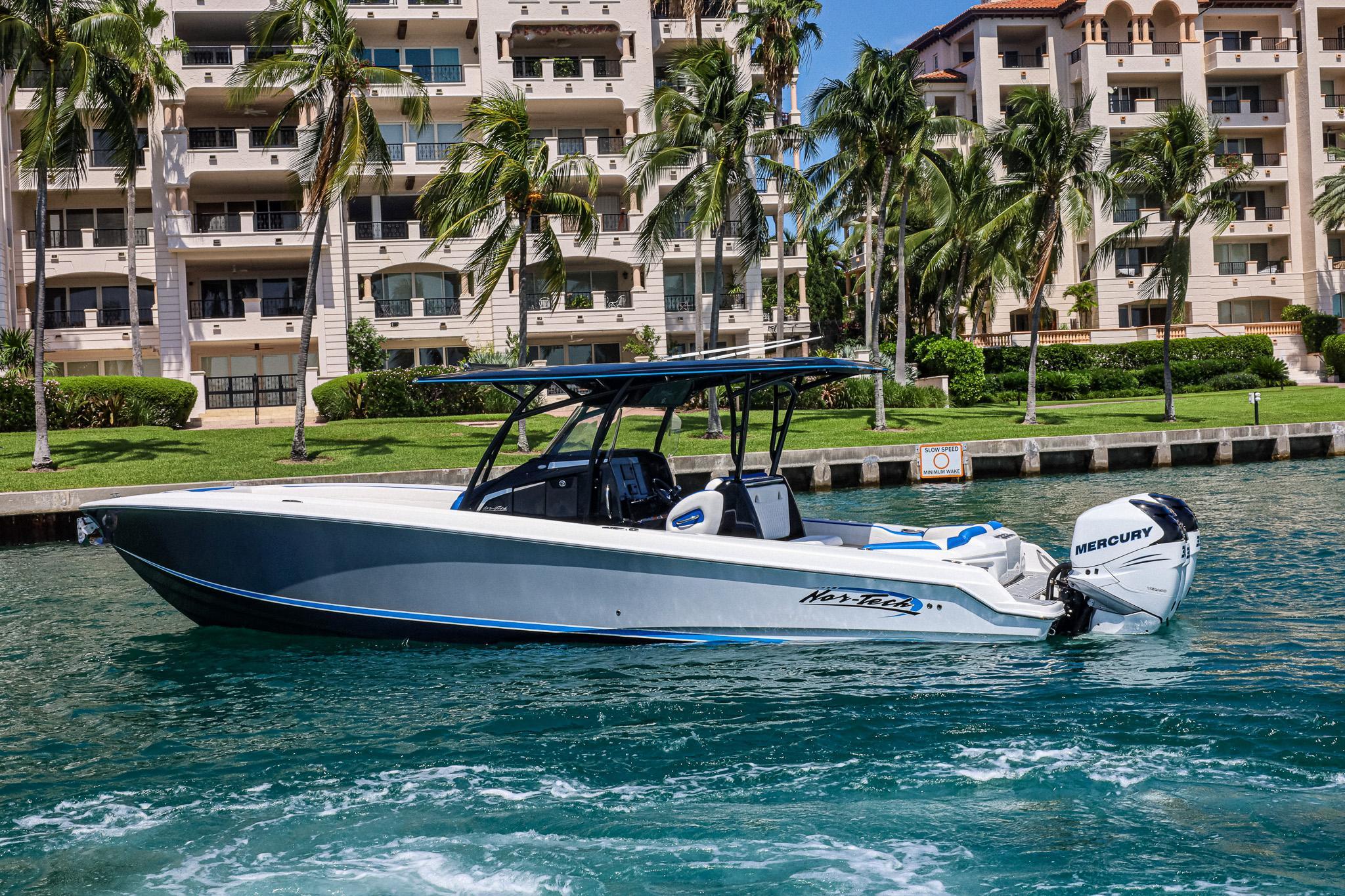 The 2020 Nortech 340 is sleek and powerful. With triple Mercury Verados 350s, this stunning powerboat is the epitome of luxury and speed, offering an exhilarating boating experience like no other. From its streamlined custom paint and design to the powerful engines, Nortech 340 is built to impress. The striking exterior features clean lines, custom paint, and a spacious cockpit designed for maximum comfort and enjoyment. The boat is constructed with top-quality materials, ensuring durability and longevity. Equipped with triple Mercury Verados 350s, Nortech offers unmatched power and speed. These outboard engines deliver impressive horsepower, allowing for thrilling acceleration and top speeds that will leave your adrenaline pumping. Verados are known for their reliability and fuel efficiency, ensuring a smooth and cost-effective ride. The spacious cockpit offers comfortable seating for friends and family, making it perfect for entertaining or simply enjoying a day out on the water. Premium upgraded upholstery and comfortable seating including a custom lounge and comfortable bow seating arrangements ensures a luxurious experience for all passengers. The helm station includes 17” Garmin screens that provide easy access to all navigation and control systems, allowing for effortless operation. Below deck, you'll find a cozy cabin perfect for an afternoon nap or quick overnight trip. The cabin is well-appointed with high-end finishes, a sink, storage area, and marine head. This 2020 Nortech 340 is equipped with state-of-the-art navigation (Garmin) and entertainment systems (JL), ensuring a modern and enjoyable boating experience. Whether you're out for a leisurely cruise, a day of fishing, or crossing to the Bahamas, this boat guarantees an unforgettable adventure every time. The 2020 Nortech 340 is a remarkable powerboat that combines luxury, performance, and style. If you're looking for a thrilling and high-end boating experience, this is the boat for you. Don't miss the opportunity to own this exceptional vessel that stands out from the crowd and sets a new standard in power boating.Features:340 Open Sport LayoutTriple Mercury 350 Verados with low hoursMercury Zero Effort ControlsVessel View SystemCenter Console with Center Steer set upVHF radioForward Bow Seating with Diamond stitched upholsteryStorage Box under bow seatsCarbon Fiber Dash (Black)12V AC with BatteriesFlush toilet w MaceratorTelescoping Dive LadderWindlassAnchor and Anchor chain 225’Rod Holder / Cup Holder ComboHelm Seat - 3 PersonRear Bench Seat - Club Sport2nd Row SeatingSliding Cooler SeatInterior Upholstery - WhiteLounger w Knee SupportDiamond Quilted Upholstery UpgradeHull with Custom Paint - White to Black FadeHull Side Boot Stripe in Grabber BlueT TopMotors with custom pain - White with Grabber BlueSea Deck Flooring in Diamond Pattern in Grey White and BlackSea Deck Helm PadFresh Water Transom ShowerBow TableFresh Water Engine Flush Navigation and Electronic package17” Garmin navigation and control screens x 3Dual USB Charging PortTransducerBlack Oak LED Curved LightingLumishore LED Lighting (2 colors)Bow ThrusterJoystickSound System and AudioJL Audio Premium Sound System with premium upgradeMM 100 Head Unit8.8 inch premium speakers (Gunwale)10 inch premium subwoofers5 Channel Class D Marine Amplifier7.7 inch overhead speakers LED Cockpit Lighting (Blue)
