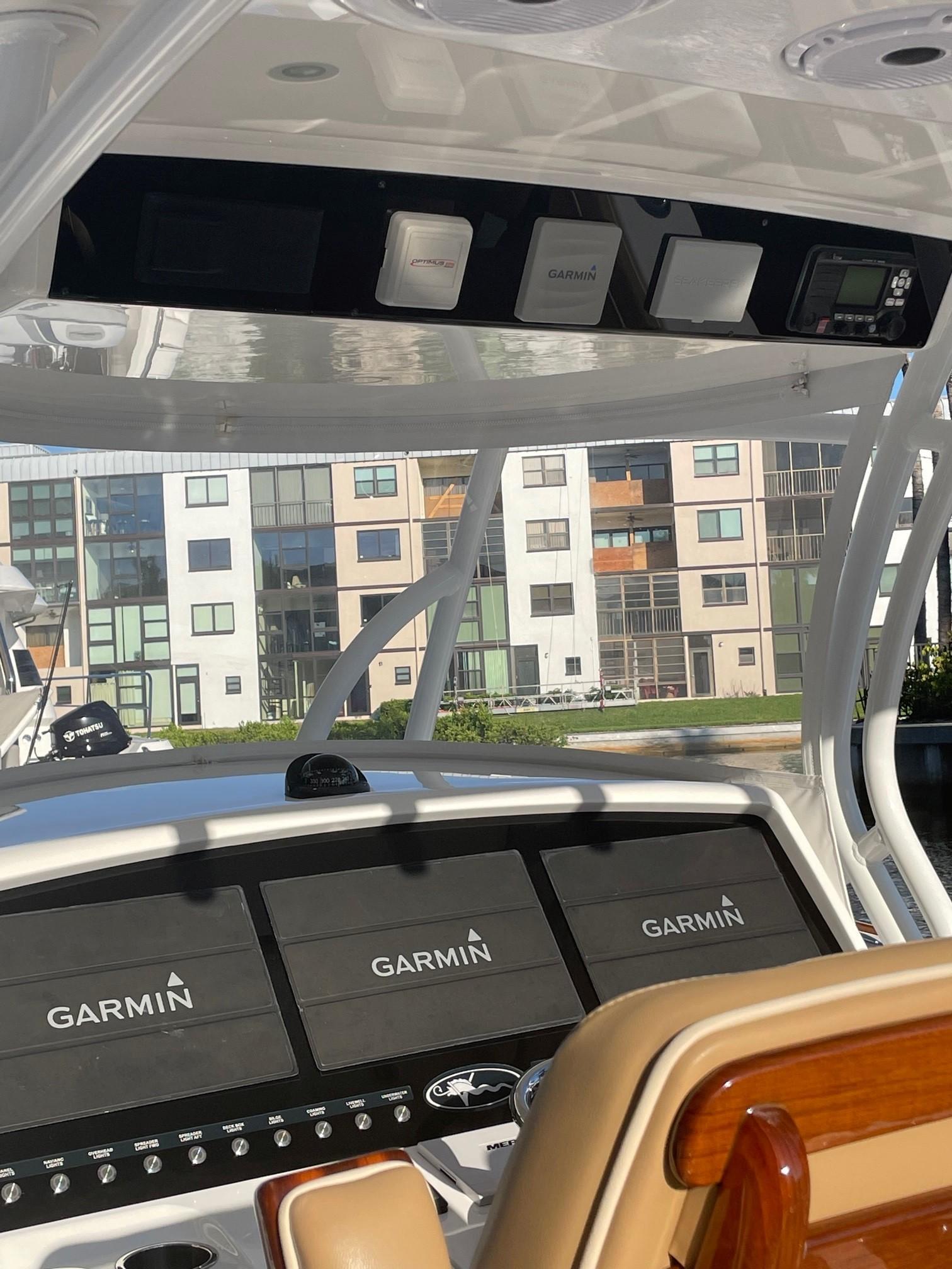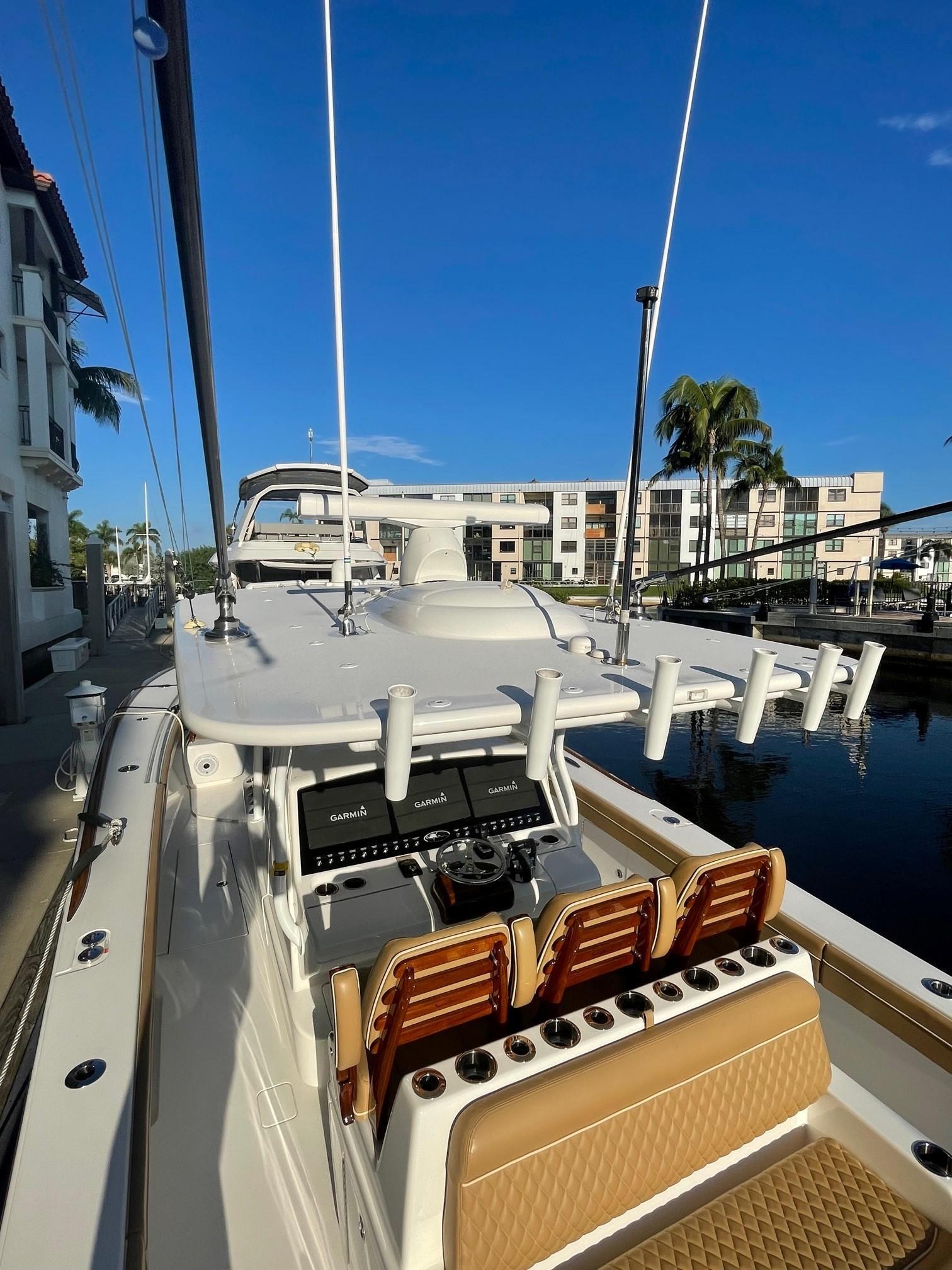 - Marine cover package included forward bench seating, console, lounge, helm seating, and full boat cover