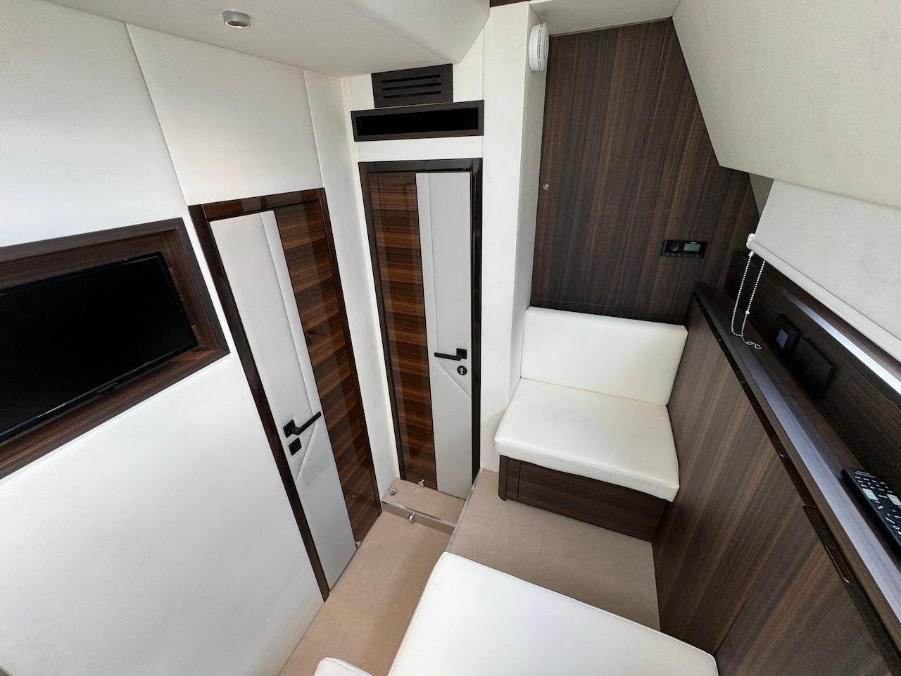 OptionsEngines Diesel CAT1,150HP Inboard Shaft Line V-Drive Engines Quick QNN Control (for Garmin/Raymarine) Electric Stabilizing Fins Cablemaster Glendinning with 20 mt cable/ 100 Amp Bow Thruster 10 Kw SternThruster10Kw Interceptor 450S V16 Addition control panel for Zipwake Electronic Standard (Dual Garmin GPS - Standard, VHF, Eco, Radar 24 Nm, Autopilot) Electronic UPGRADE (Dual Garmin GPS 16", VHF, Eco, Radar 36 Nm, Autopilot) Electronic UPGRADE (Dual Garmin GPS 17", VHF, Eco, Radar 36 Nm, Autopilot) Electronic UPGRADE (Dual Garmin GPS 22", VHF, Eco, Radar 36 Nm, Autopilot) Electronic UPGRADE (Triple Garmin GPS 16", VHF, Eco, Radar 36 Nm, Autopilot) Camera Control for Transom &Engine Room Electronic Standard (Raymarine) Electronic UPGRADE - Garmin/Raymarine Generator Upgrade 27 Kw (Strd 17 Kw/50 hz or 23 kw/60 hz) Generator Upgrade: "DUAL GREEN" dual generators (16kw) series ¶llel Galvanic Isolator 63 Amp Galvanic Isolator 100 Amp Isolation transformer with 4 step booster 25Kw Stainless Steel Ultramarine Anchor 35 Kg Stainless Steel Anchor Chain(100Mts, 10mm diameter) Mooring Winches (Nr 2) Stern Hidden Mooring cleats (2) on rear platform (right/left) Starboard Manual Side Door STD Port Manual Side Door Starboard Semi-Automatic Side Door Port Semi-Automatic Side Door INC Starboard Automatic Side Door Port Automatic Side Door Black water tank 500It S Layout choices: 3/4 stateroom + lower Salon / 4 stateroom 4 heads Electric Movement Pilot Seat (Back &Forth - Up &Down) Electric Movement Copilot Seat (Back &Forth -Up &Down) Stern Electric Sunshade of Fly Shower on Fly Rollbar with mini Hard Top Bimini Top Rigid Hard Top Hard Top Electric Insert Openable Bimini Fly furniture with sink EXTRA Fly Stern Furniture Refrigerated Ice Chest (Fly Furniture) EXTRA Icemaker on Fly Barbecue Kenyon on Fly Teak table on Fly Table on fly with marble insert Refrigerator on Fly EXTRA Refrigerator on Fly Additional TV Led Fly 4 0 " Flybridge cover Spotlight on Aft Fly (8) Satellite Antenna (Intellian 16 60 cm diameter) Satelite Pre-Wire stations White or Black cloth for hard top windows (4 sides + windshield) Dimmerable Areas (Fly Bridge, Bar) Third station Controller instead of Yacht Controller (requires Trolling valve) Bow Led Logo Retractable lights bow sofa (4) MAN Trolling valves 2 x Sat dummies Dome Stone/Marble Options for Kitchen Furniture Top Additional Refrigerator 65 Lt. Under Pilot Seat retractable saddle kit (installation) Crew cabin furniture with sink Refrigerator in Crew Cabin Microwave in Crew Cabin Safe in Master Cabin Additional side underwater lights (under Master cabin) CUSTOM Modification to wine chiller furniture with glasses holder and storage