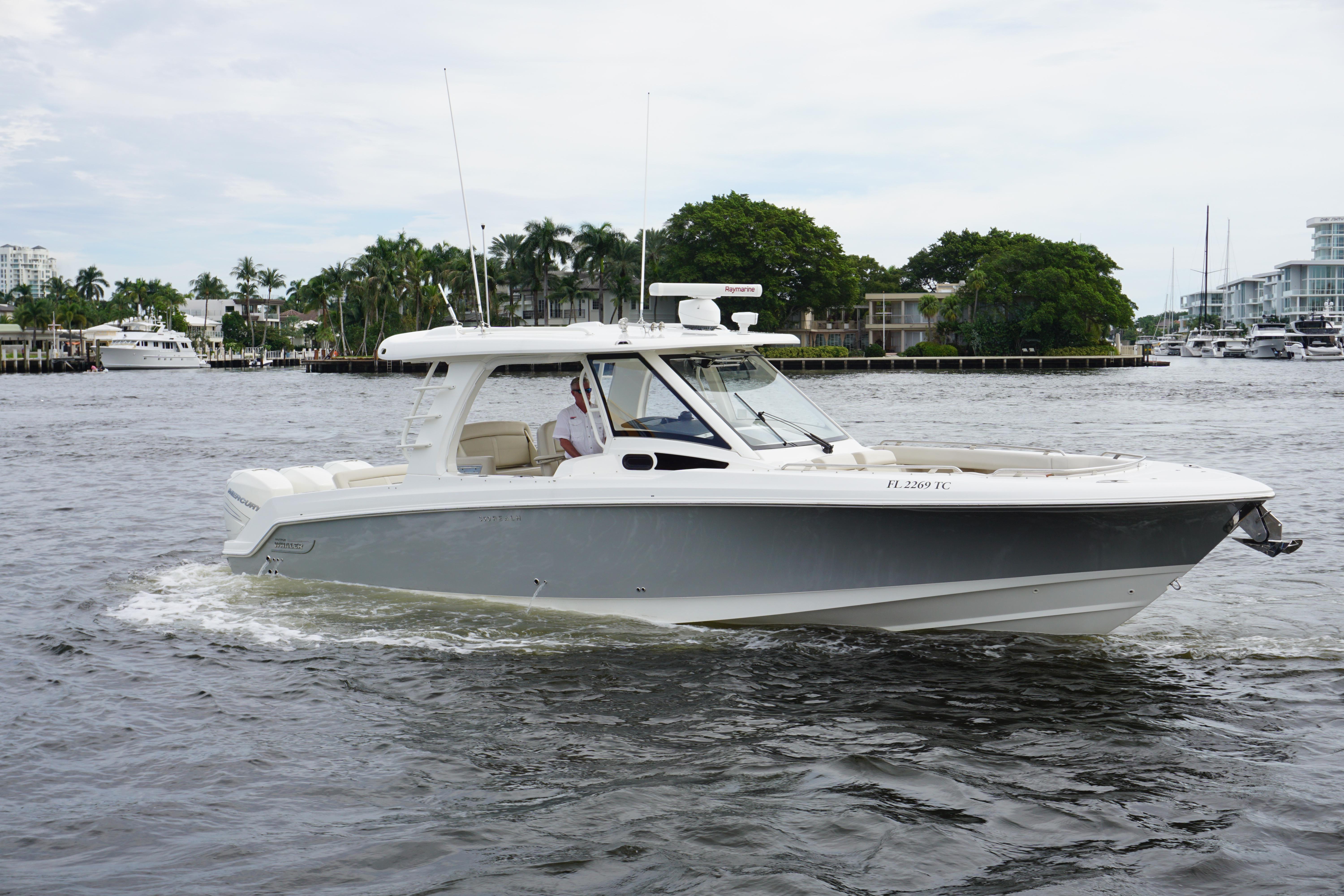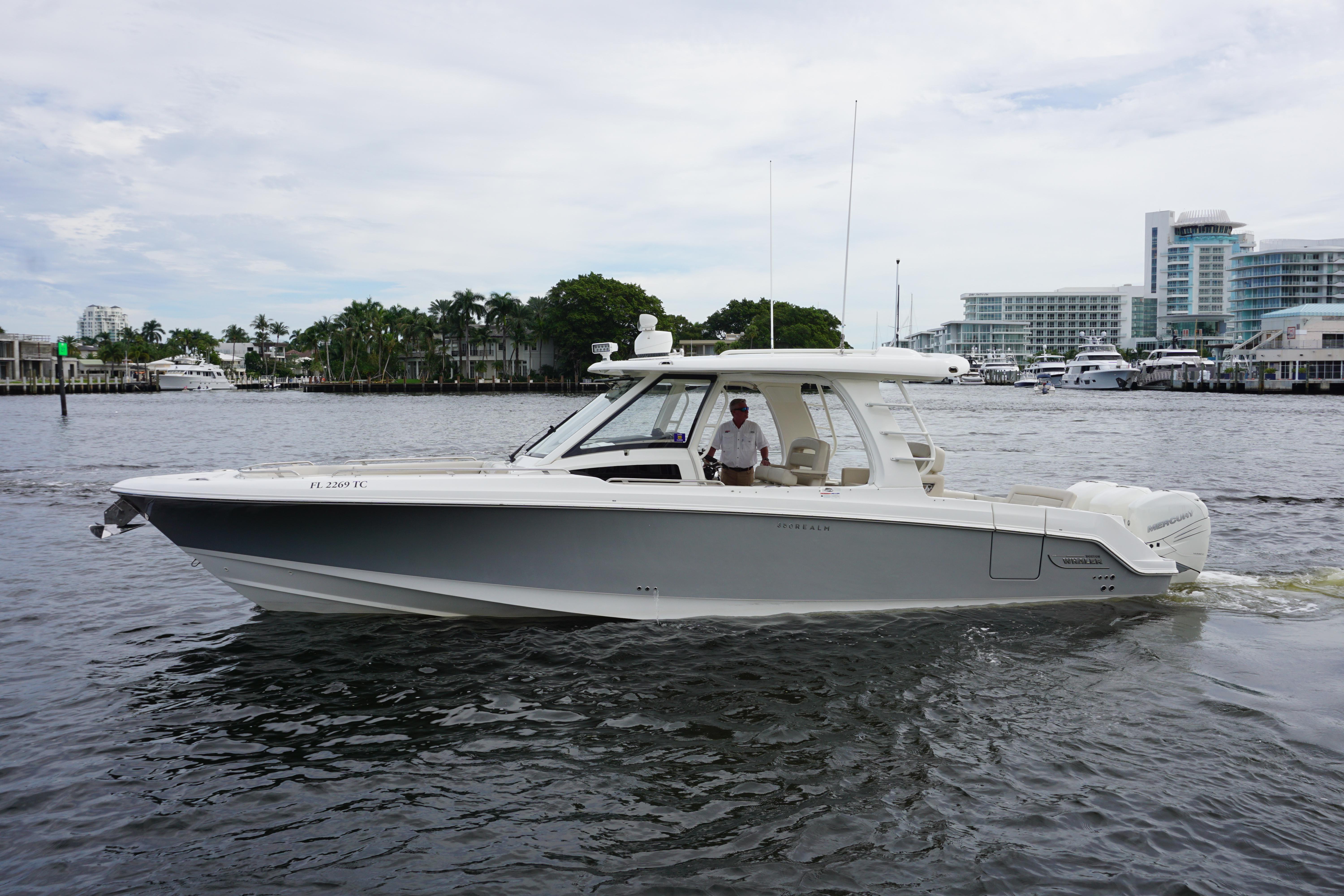 Listing is located off-site in Pompano Beach, FL. Appointment is required to view this boat. 2019 Boston Whaler 350 Realm with 350 L6 Triple White Mercury Verados with Joystick Piloting.Approximately 470 engine hours. This boat is Lift Kept, and on a monthly detail planMercury Platinum Extended Warranty valid through 12/02/2025 Notable Options Included : Colored Hull - Platinum Metallic PaintJoystick Piloting 350 L6 Triple Mercury Verado WhiteWhite Hardtop Enclosure CurtainsTheft Deterrent / Connectivity SystemGyroscopic Stabilizer -120VPremium Audio Package Raymarine Navigation Package (16" & 9" Dual Displays) Raymarine Open Array Radar 48" ACR SpotlightCanvas Cover PackageEngine Flush SystemVessel View Mobile Bow TableRefrigerated BucketUnderwater LightingSunshade Retractable SeaDek style Soft Decking - GreyWiFi Antenna Signal BoosterBW Warranty Structural: 12/02/2019 - 12/02/2029 Lauderdale Marina is a full-service Intracoastal waterfront boat dealership and marina. We sell and service the complete line of Boston Whaler boats from 13 to 42 feet, and all sizes of Mercury and Yamaha outboard motors. Our 4 acre point lot also features the award-winning Fifteenth Street Fisheries restaurant, a 365-foot ethanol-free gas and diesel fuel dock with dock store and a Yamaha and Mercury outboard parts & accessories department. We have boat dockage up to 165 feet and are open 7 days a week. Since 1948.