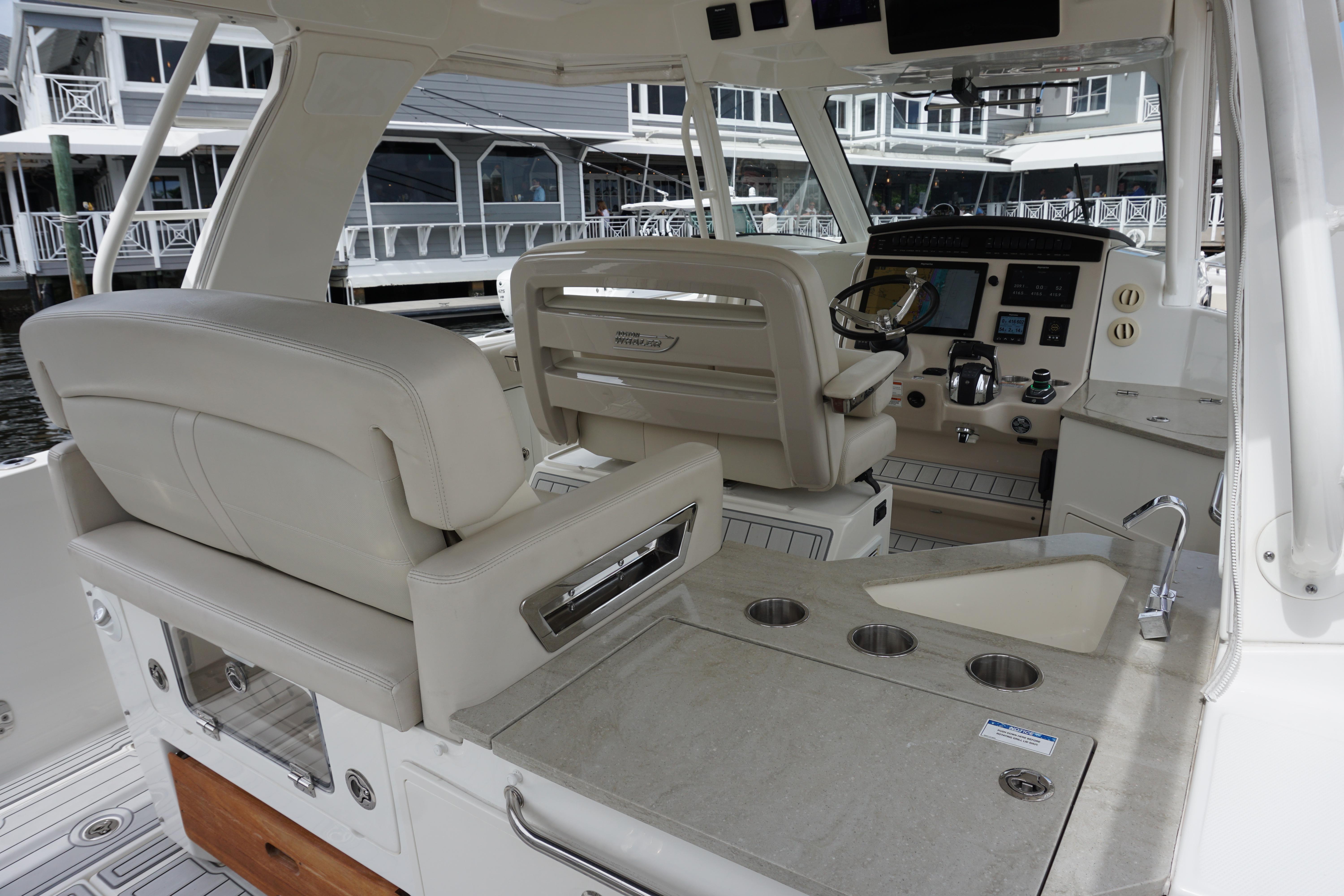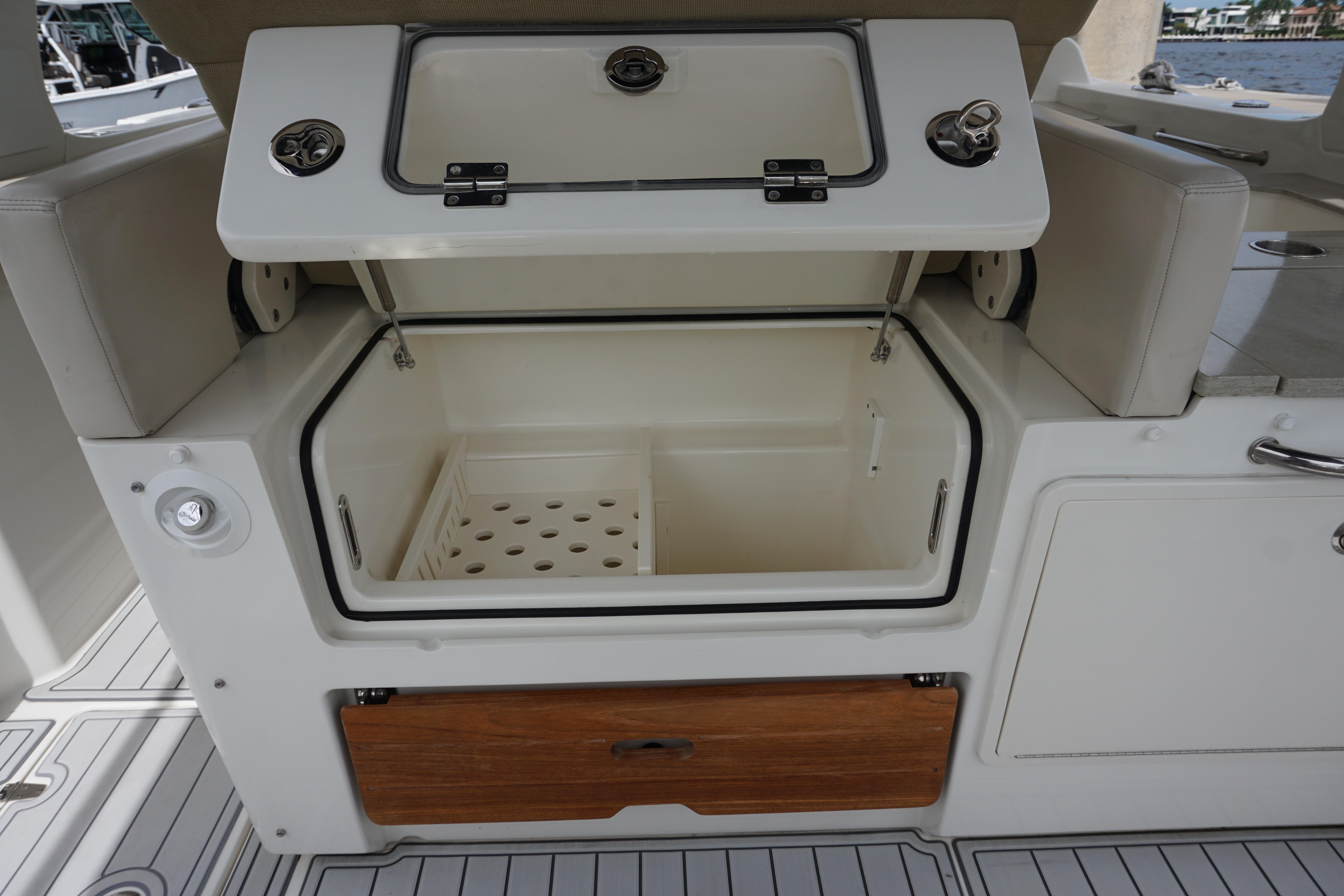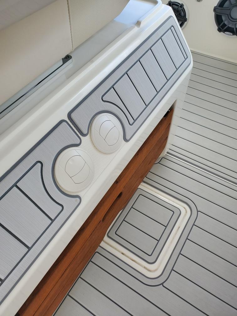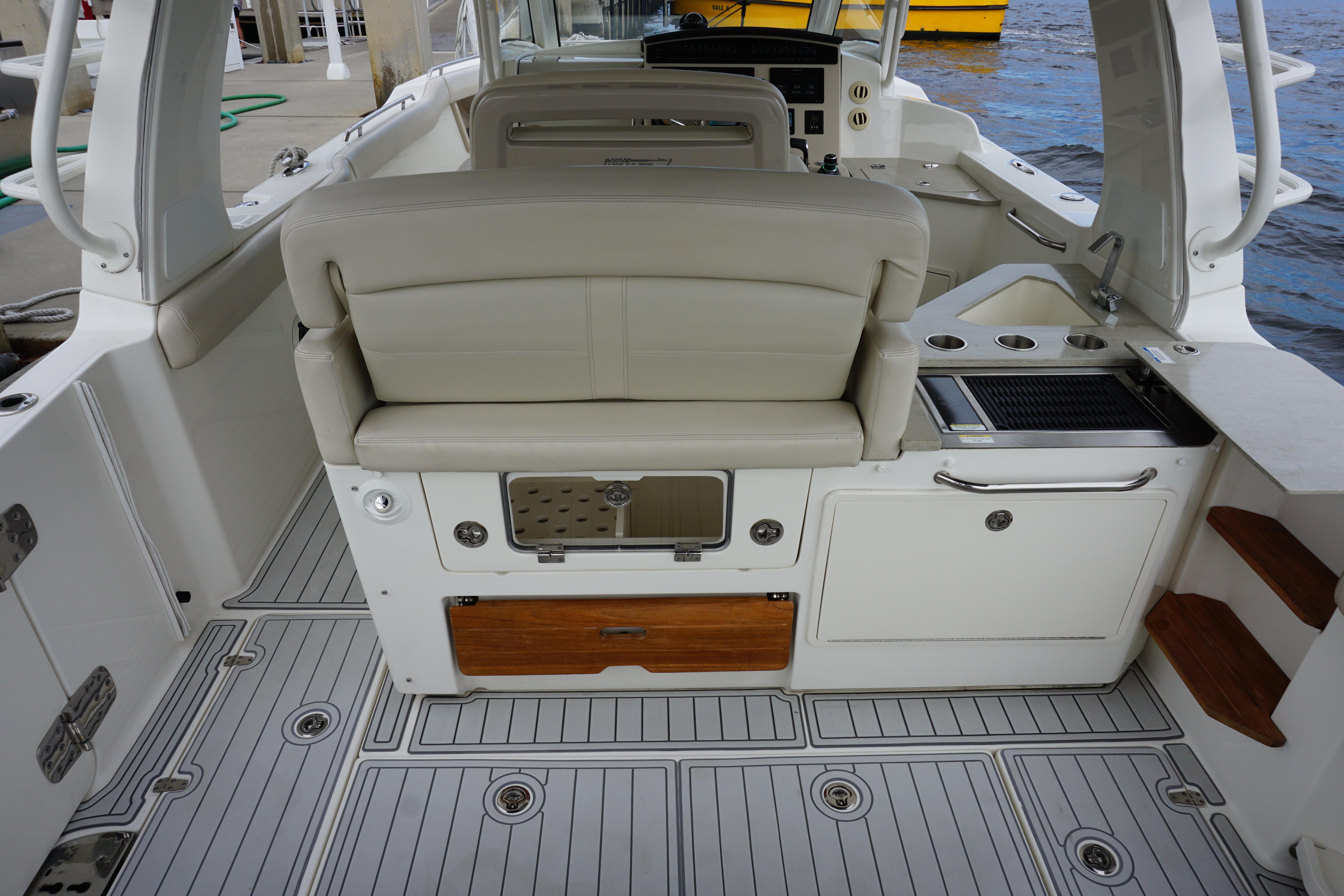 - Insulated 26qt cooler tub in starboard helm deck counter