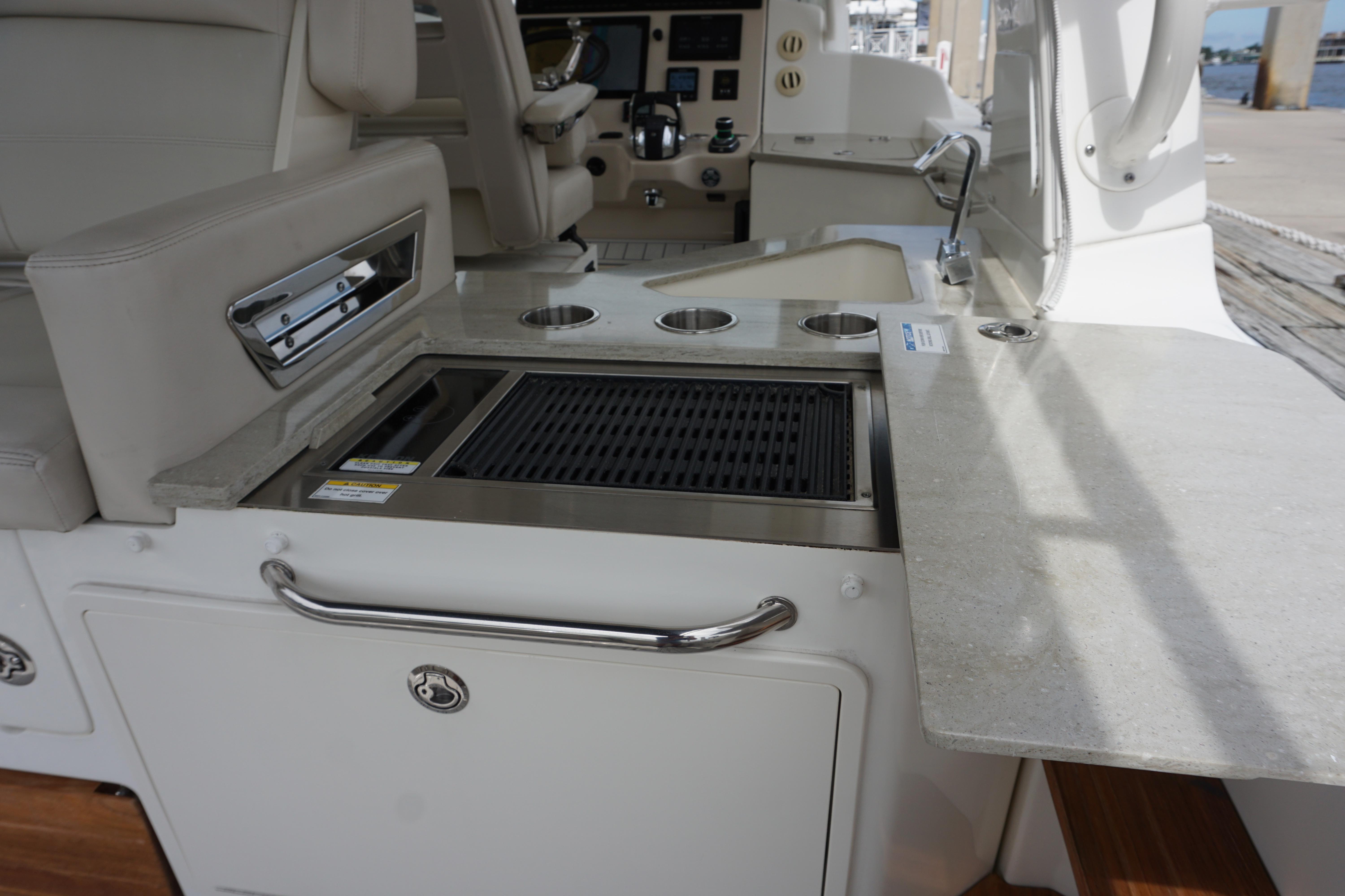 - Entertaining-friendly Cockpit Prep Center features a refrigerator, hot & cold freshwater sink, electric grill and more.