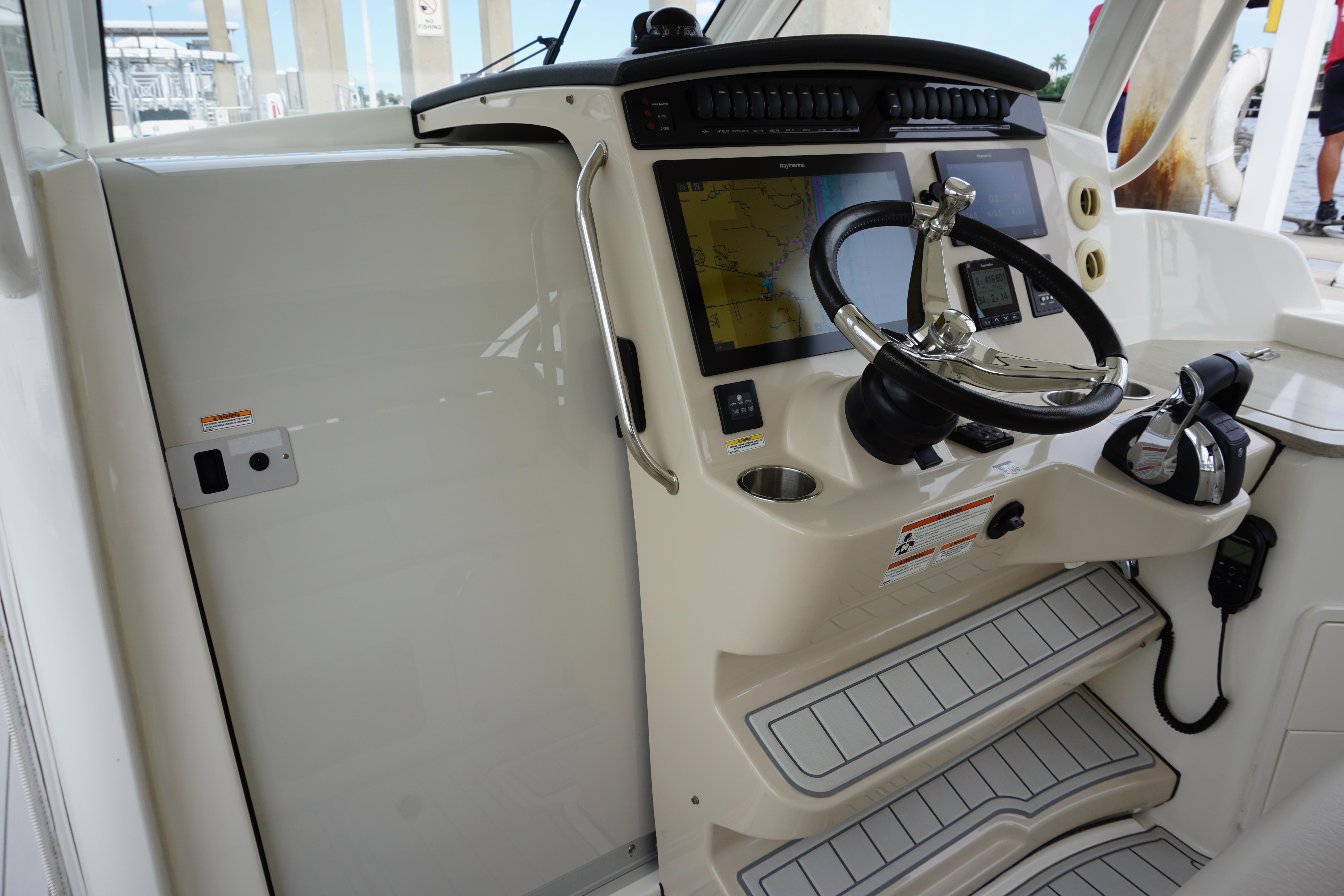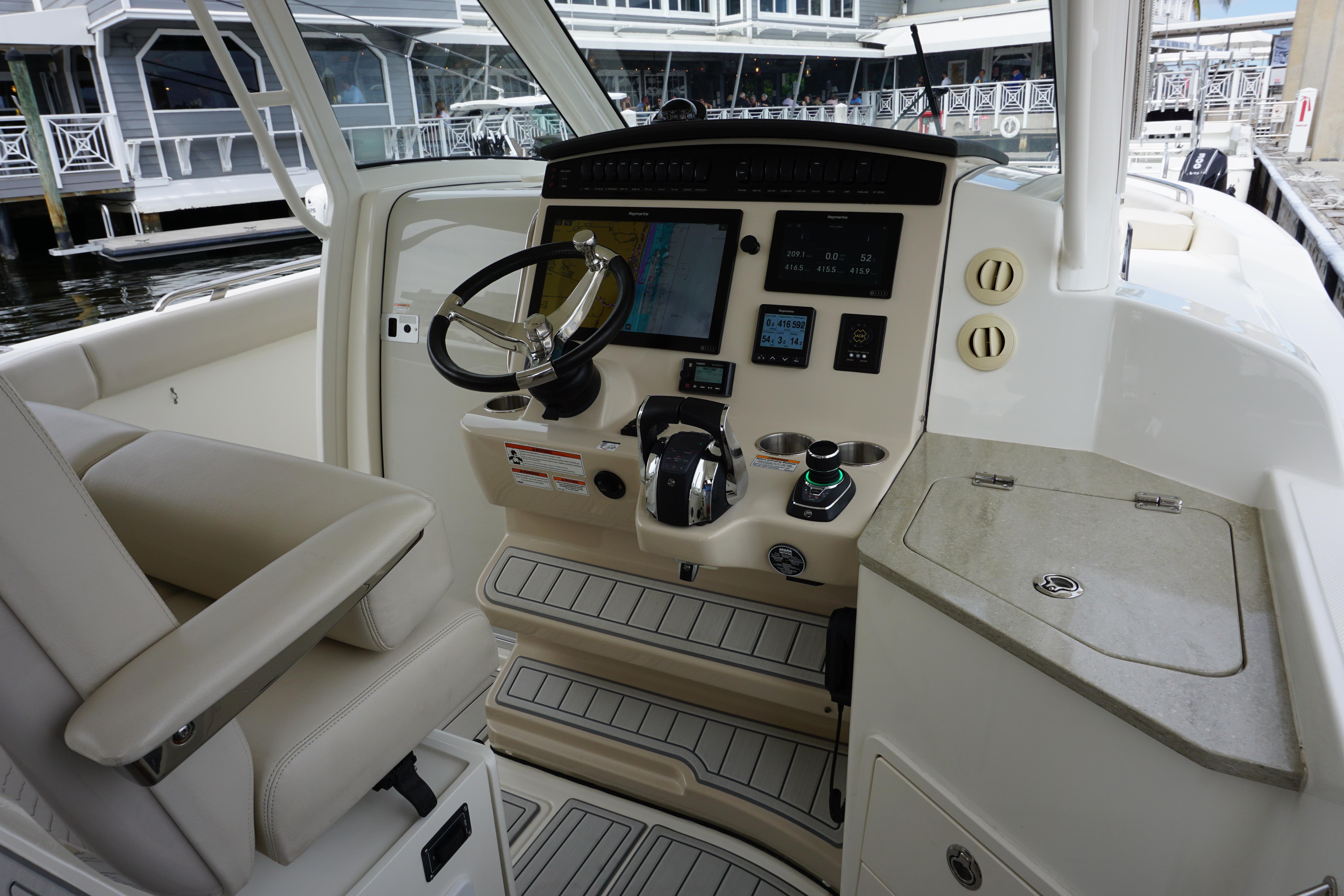 - Mercury DTS dual binnacle controls featuring Shadow Mode for center engine with integrated engine trim controls
