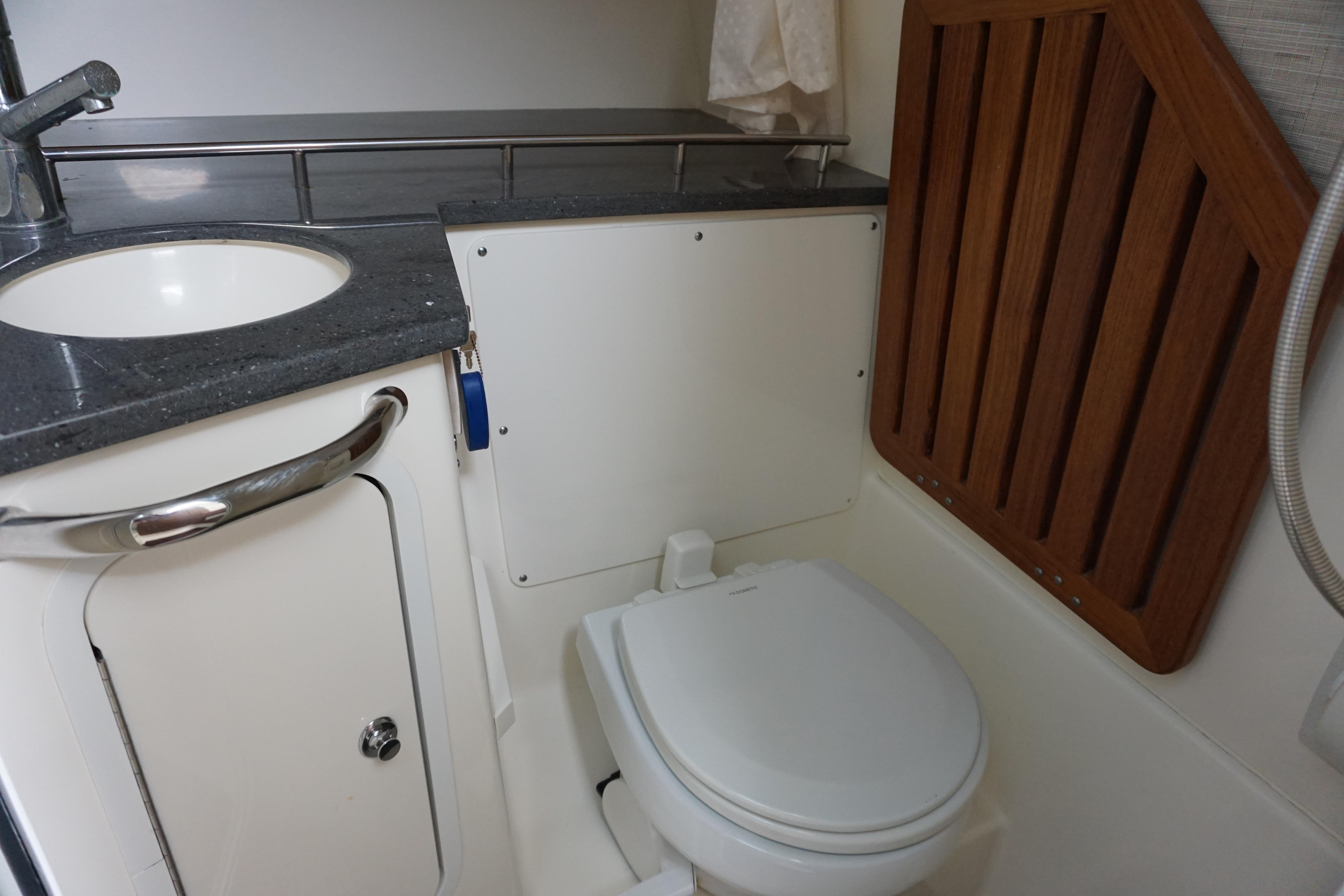 - VacuFlush™ toilet, holding tank, dockside pump-out, overboard discharge and tank level indicator