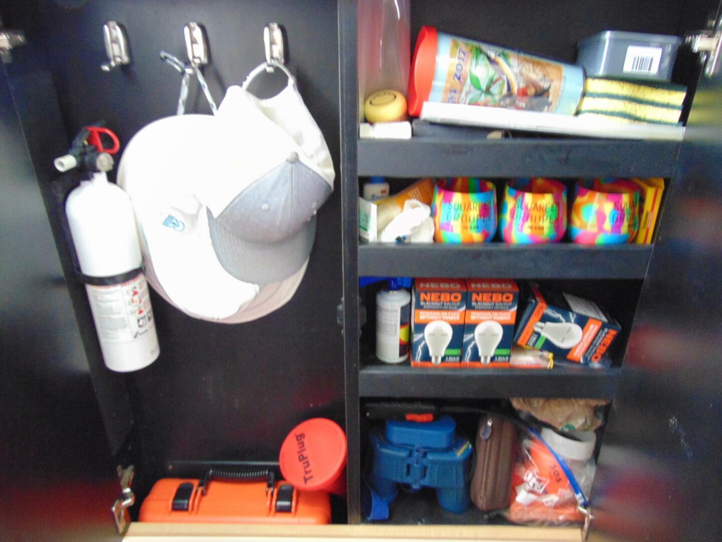 • Molded fiberglass port side dive / boarding door with removable stainless steel dive ladder