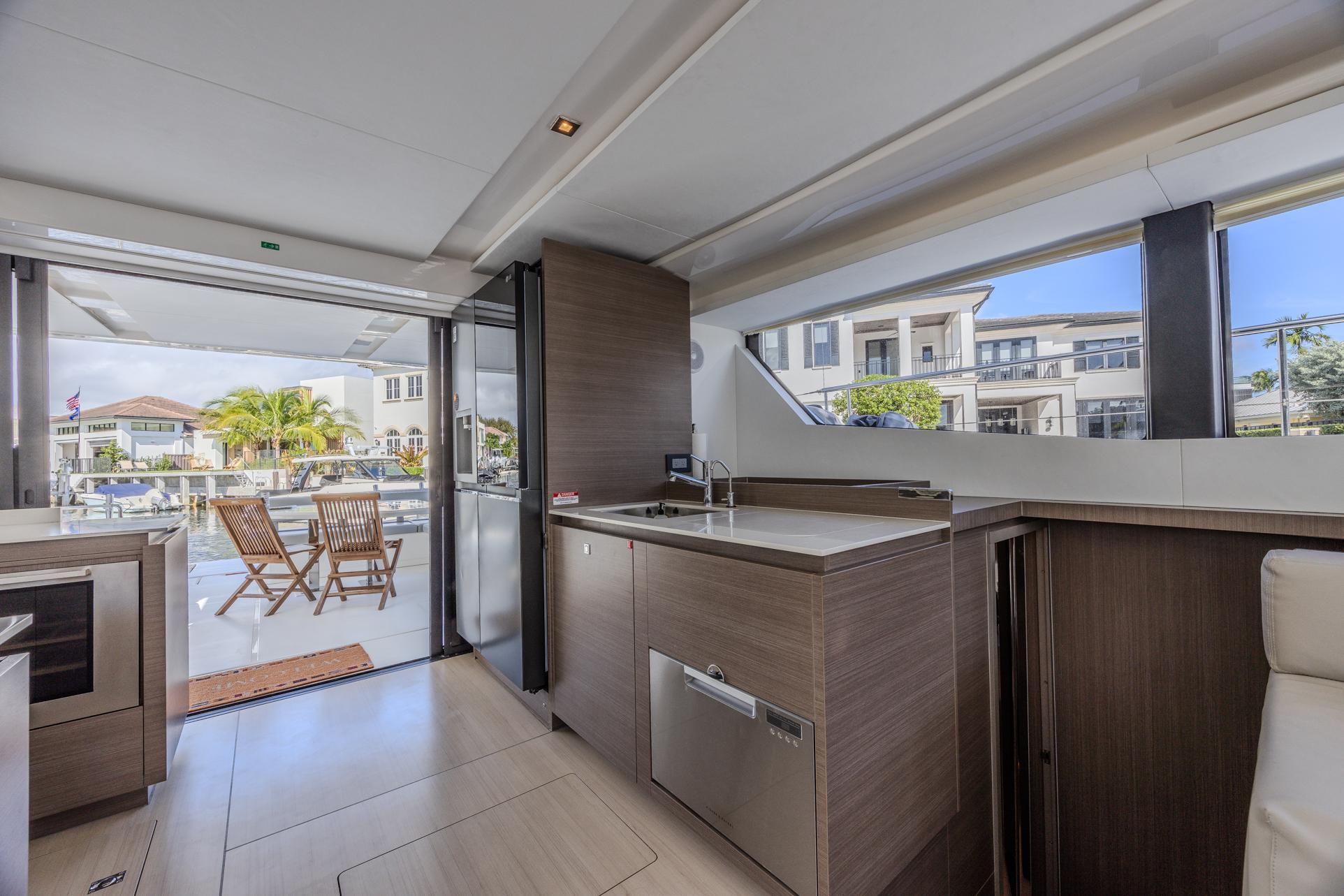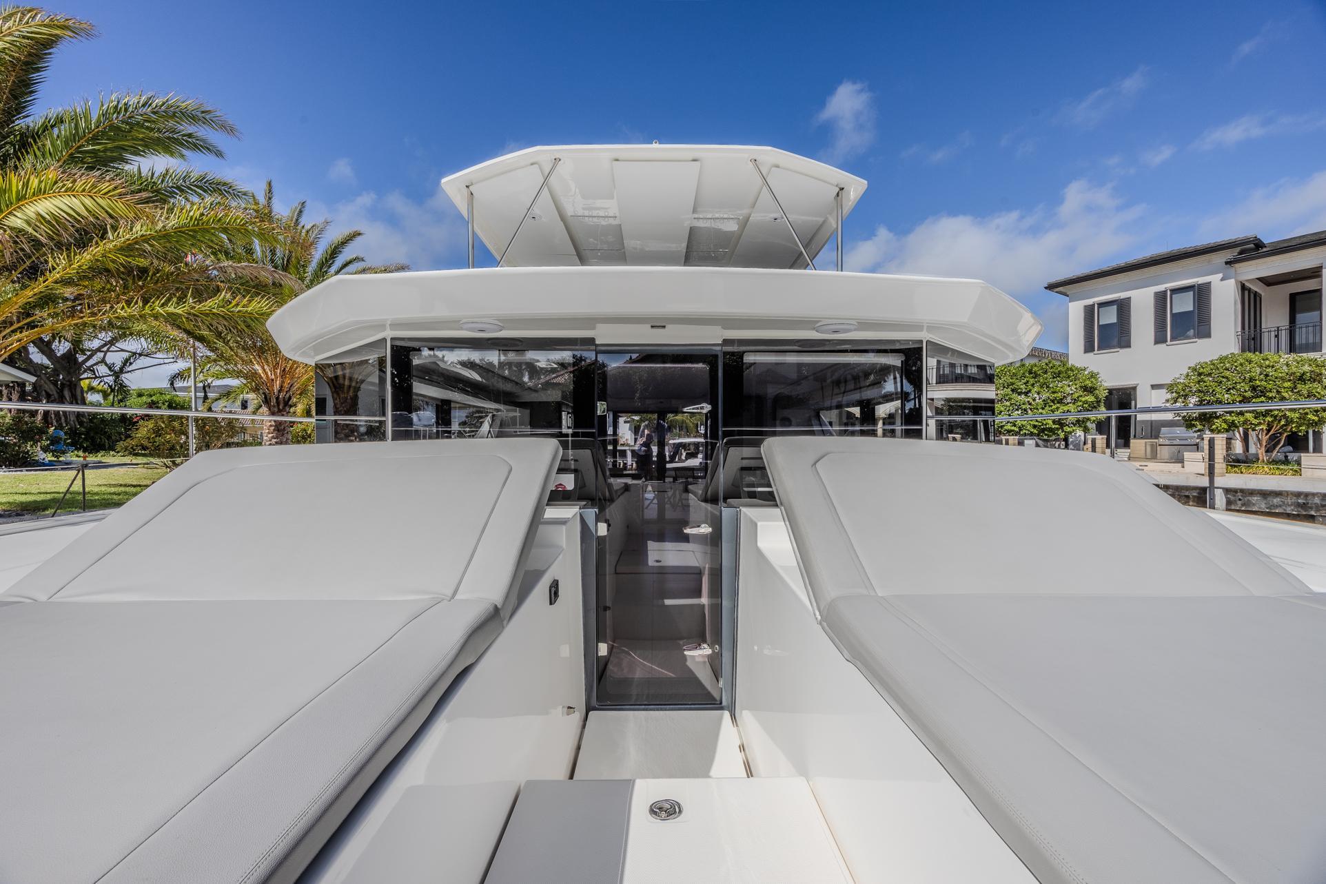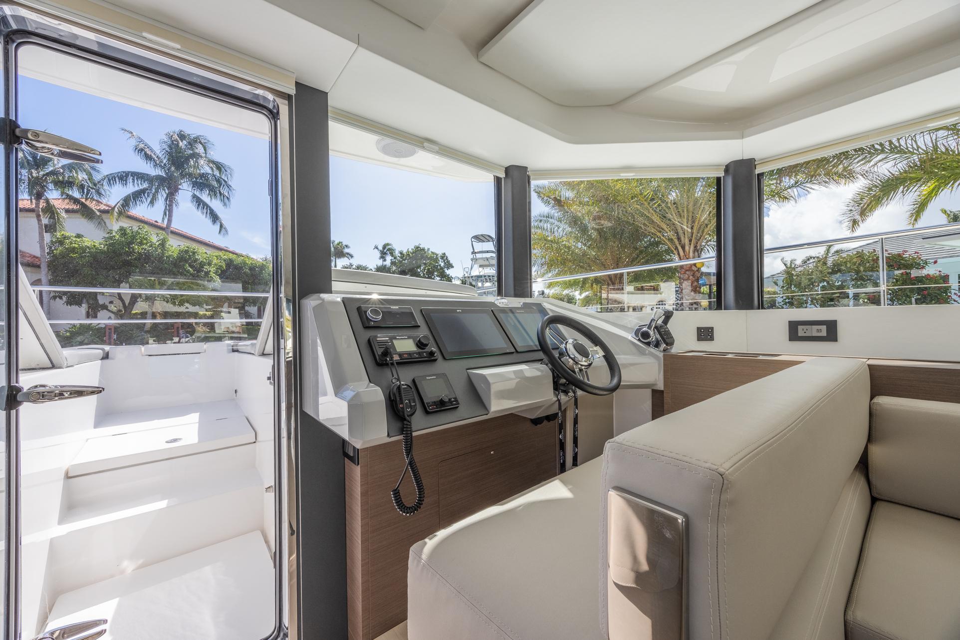Intuitive design throughout means improved functionality and efficiency, including the flybridge and helm station with maximized visibility. All coach roof windows are flat toughened glass for optical clarity. Smart, ergonomic design and the latest technology work harmoniously to create ease of operation and maintenance for a seamless onboard experience.