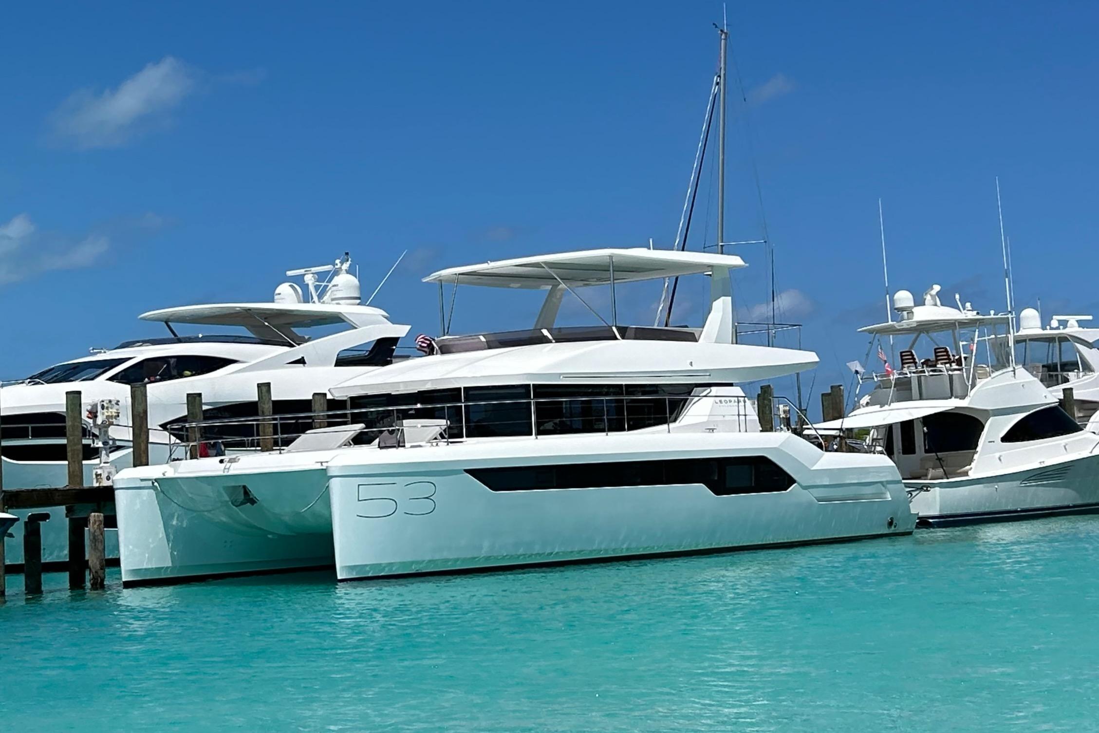 Introducing the upgraded 2024 Leopard 53 Power Catamaran—an evolution in luxury, performance, and innovation. Designed to deliver unmatched comfort on the water, the Leopard 53 features sleek modern lines, spacious interiors, and superior craftsmanship. Powered by twin Yanmar Diesel engines, it offers exceptional fuel efficiency and smooth cruising, perfect for both leisurely coastal exploration and extended Bluewater adventures.When you step aboard you are welcomed by a vast, open-concept salon with panoramic views, a fully equipped gourmet galley, and lavishly appointed staterooms, with the 5-stateroom configuration including private crew quarters and head. The expansive flybridge, complete with a wet bar, grill, and ample seating, makes this the ultimate entertainment hub. Cutting-edge technology and navigation systems ensure a smooth ride and effortless handling, while its durable construction guarantees stability in all conditions.With its blend of style, functionality, and performance, the 2024 Leopard 53 Power Cat redefines what it means to cruise in luxury. ***Upgrades*** · Upgraded Lithium battery bank with smart monitoring system and 7” Victron GX70 touchscreen display.· Bow Thruster· Starlink· Hull Shield Ultra Sonic Hull Protection· Custom Sea Deck on stairs· Miele propane cooktop in Galley· Upgraded Fusion stereo with JL Audio· Dual Ray Marine Axiom XL16 MFD at Fly Bridge helm, Dual Ray Marine Axiom 12 Touch screen MFD inside helm with upgraded 4’ open array radar with Seaview bracket· Sea Water Pro water maker · Self leveling boarding stairs with handrail· Vitrifrigo ice maker and refrigerator on fly-bridge· AIS