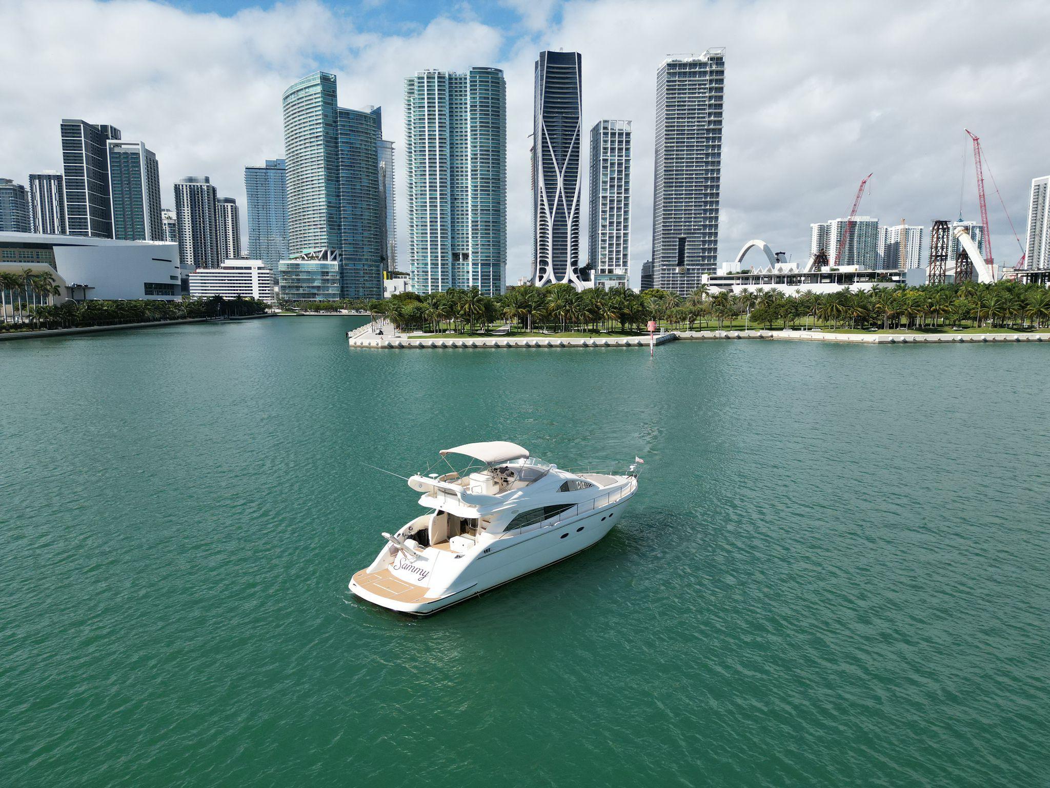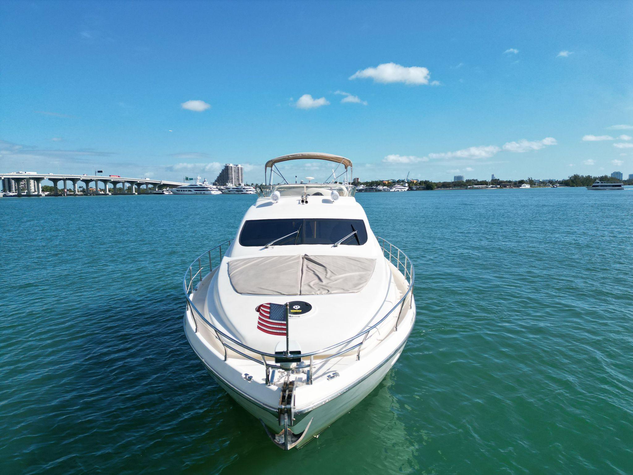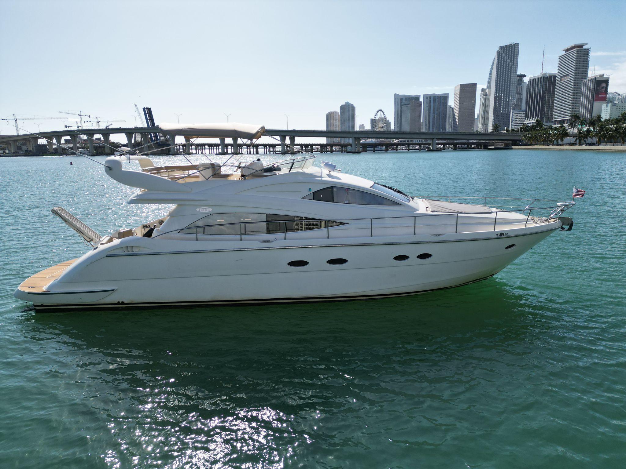 2003 Aicon Yacht 56Introducing the Aicon 56ft yacht: a pinnacle of Italian luxury and craftsmanship. This sleek vessel combines timeless elegance with cutting-edge technology to redefine the standards of maritime opulence.From its graceful exterior lines to its sumptuously appointed interior, the Aicon 56ft yacht exudes sophistication at every turn. Designed for both relaxation and performance, it offers a perfect balance of comfort and style.Step aboard to discover spacious saloons, plush seating, and well-appointed cabins—all meticulously crafted to provide an oasis of luxury on the water. With advanced propulsion systems , this yacht ensures a smooth and exhilarating ride.Accommodations-3 State Room 3 head layout.-Crew quarters with a small head-spacious salon with round shape seating -bar style galley -flybridge -lower helm station -Upper helm station -cockpit seating -bow seating-PasserelleState Rooms: -VIP state room: -Queen size berth-Honey brown wood tops and cabinet storage-Ambient lighting -Light wood floors-Natural lighting -Closet storage -Berth storage cabinets -Tv VIP head:-Stand up shower -toilet -Natural lighting -Blue marble countertops -Honey brown wood finish -Sink -Ac -Guest room:-A/c -Twin single berths-Natural lighting -Honey brown wood finish closet -Honey brown wood finish cabinet -Koi fish painting -Honey brown wood berth cabinet storage -Ambient lighting -Light switch -Charge ports -Sand color flooring -Master state room:-Full beam master -Honey brown wood finish closet storage -Honey brown wood finish countertops -Tv -Vanity -A/c -Individual head -Sand color wood finish on floors -Sand color vinyl on ceiling -Sand color vinyl walls -Natural lighting -Power outlets -Berth side lights -Wide windows that allow more natural lighting -Master state room head:-Blue marble countertops-Bidet -Toilet -Honey brown color wood cabinets -A/c -Sink cabinet storage -Stand up shower Galley:-Bar style layout -Honey brown wood countertops-Vintage blue marble tops -cabinet storage -sink -Thomson fridge/freezer-whirlpool microwave -natural lighting -light switches-induction stove Helm station 1- Blue captains chair - Ray marine electronics - Caterpillar engine controls- Electric engine control - Blue helm station upholstery - Compass - Fuel gauge - Windlass control - Autopilot - Ambient lighting Helm station 2:- VHF- Electric engine control - Caterpillar display engine control - Ray marine electronics - Auto pilot - Windlass switch - Bilge pump switch - Bow thruster control - Compass Flybridge - helm station- Bimini top - Round shape seating - Stairs - Sink/ stove - Jl audio speakers Cockpit:- sea deck flooring - Glass sliding door - Stairs to flybridge - Port and starboard access to bow - Engine room floor latch - Paserelle- Fuse panel control - Crew quarters - Bench seating - Cleats - Entertainment area Propulsions: - Twin diesel Caterpillar 3406 800hp engines - 2000 hours - Electric engine controls Electronics:- Ray marine - Caterpillar engine displays - Electric engine controls- VHF- Fuse panel - Battery switches- JL audio - Electric outlets - Ambient lighting - Auto pilot#AiconYachts