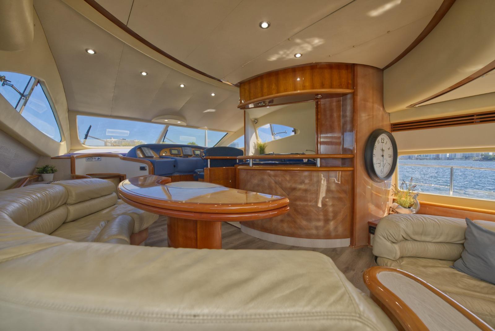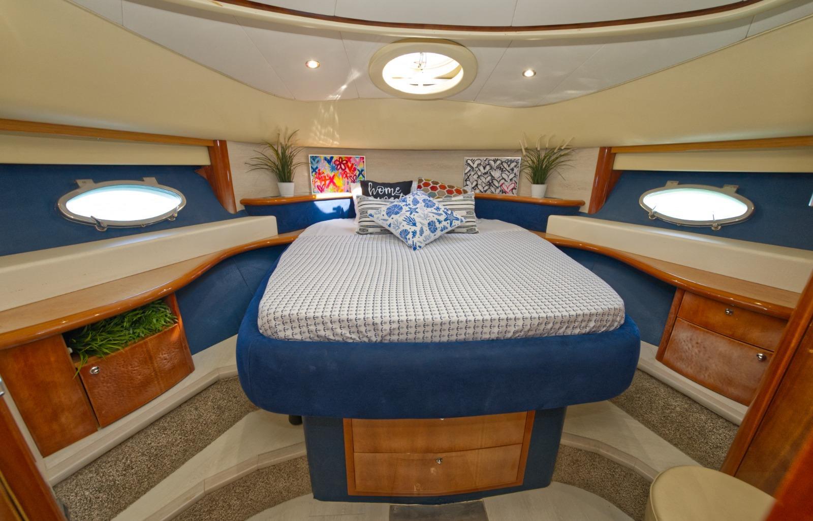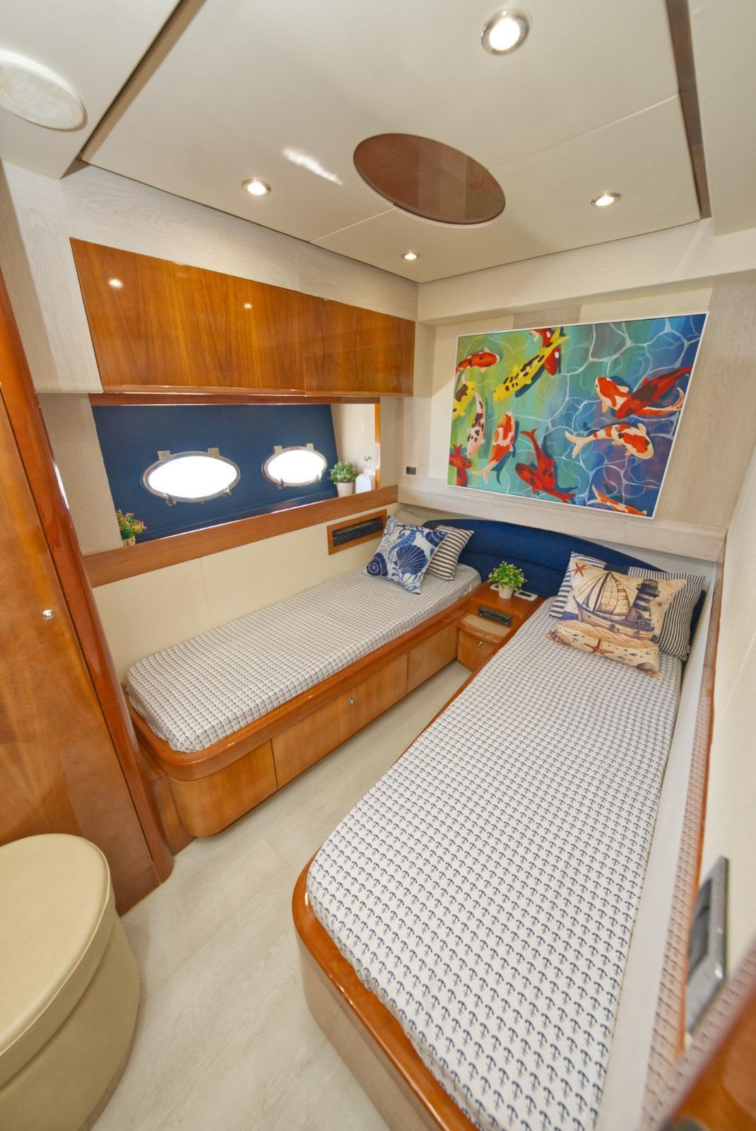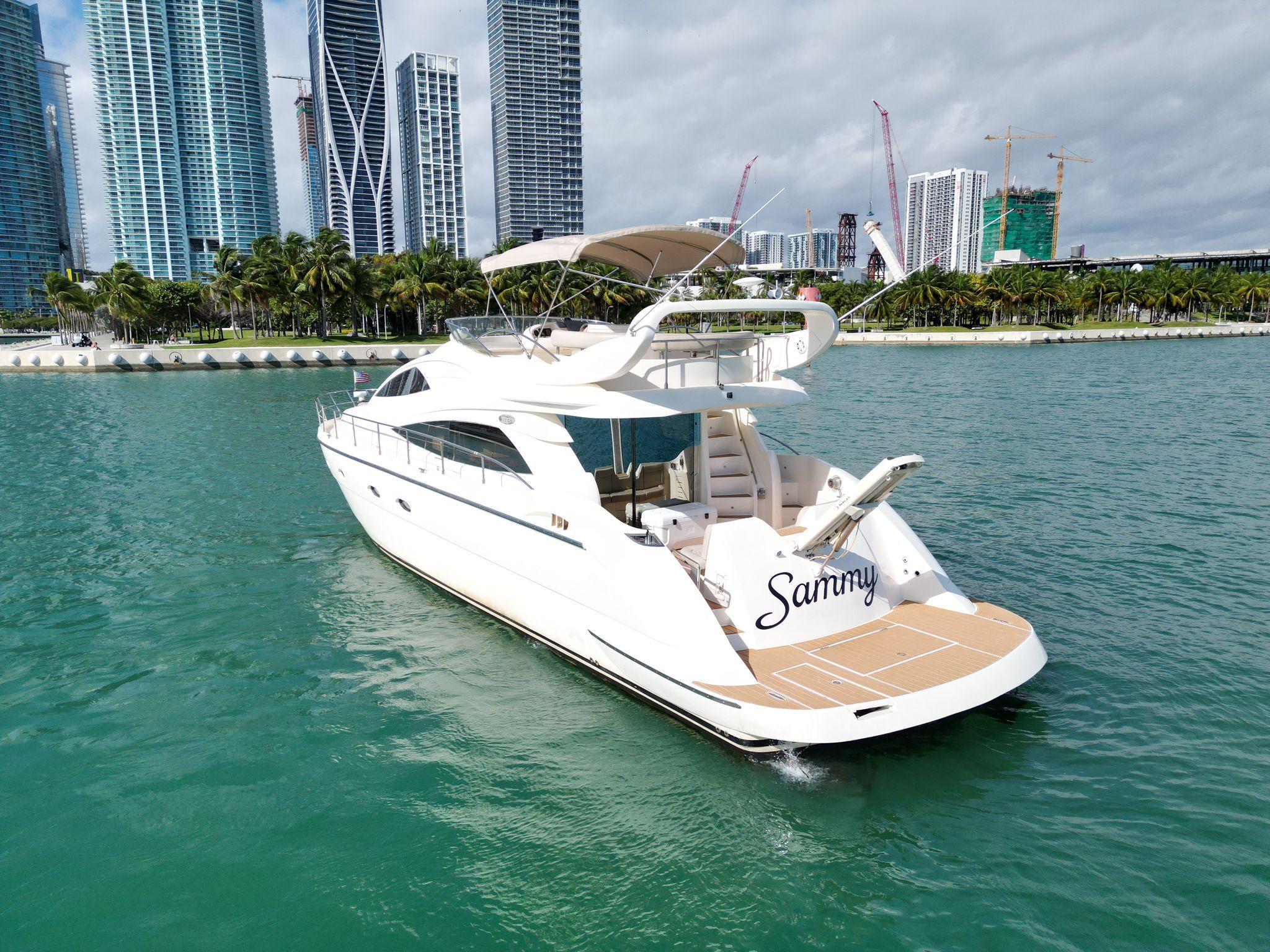 2003 Aicon Yacht 56Introducing the Aicon 56ft yacht: a pinnacle of Italian luxury and craftsmanship. This sleek vessel combines timeless elegance with cutting-edge technology to redefine the standards of maritime opulence.From its graceful exterior lines to its sumptuously appointed interior, the Aicon 56ft yacht exudes sophistication at every turn. Designed for both relaxation and performance, it offers a perfect balance of comfort and style.Step aboard to discover spacious saloons, plush seating, and well-appointed cabins—all meticulously crafted to provide an oasis of luxury on the water. With advanced propulsion systems , this yacht ensures a smooth and exhilarating ride.Accommodations-3 State Room 3 head layout.-Crew quarters with a small head-spacious salon with round shape seating -bar style galley -flybridge -lower helm station -Upper helm station -cockpit seating -bow seating-PasserelleState Rooms: -VIP state room: -Queen size berth-Honey brown wood tops and cabinet storage-Ambient lighting -Light wood floors-Natural lighting -Closet storage -Berth storage cabinets -Tv VIP head:-Stand up shower -toilet -Natural lighting -Blue marble countertops -Honey brown wood finish -Sink -Ac -Guest room:-A/c -Twin single berths-Natural lighting -Honey brown wood finish closet -Honey brown wood finish cabinet -Koi fish painting -Honey brown wood berth cabinet storage -Ambient lighting -Light switch -Charge ports -Sand color flooring -Master state room:-Full beam master -Honey brown wood finish closet storage -Honey brown wood finish countertops -Tv -Vanity -A/c -Individual head -Sand color wood finish on floors -Sand color vinyl on ceiling -Sand color vinyl walls -Natural lighting -Power outlets -Berth side lights -Wide windows that allow more natural lighting -Master state room head:-Blue marble countertops-Bidet -Toilet -Honey brown color wood cabinets -A/c -Sink cabinet storage -Stand up shower Galley:-Bar style layout -Honey brown wood countertops-Vintage blue marble tops -cabinet storage -sink -Thomson fridge/freezer-whirlpool microwave -natural lighting -light switches-induction stove Helm station 1- Blue captains chair - Ray marine electronics - Caterpillar engine controls- Electric engine control - Blue helm station upholstery - Compass - Fuel gauge - Windlass control - Autopilot - Ambient lighting Helm station 2:- VHF- Electric engine control - Caterpillar display engine control - Ray marine electronics - Auto pilot - Windlass switch - Bilge pump switch - Bow thruster control - Compass Flybridge - helm station- Bimini top - Round shape seating - Stairs - Sink/ stove - Jl audio speakers Cockpit:- sea deck flooring - Glass sliding door - Stairs to flybridge - Port and starboard access to bow - Engine room floor latch - Paserelle- Fuse panel control - Crew quarters - Bench seating - Cleats - Entertainment area Propulsions: - Twin diesel Caterpillar 3406 800hp engines - 2000 hours - Electric engine controls Electronics:- Ray marine - Caterpillar engine displays - Electric engine controls- VHF- Fuse panel - Battery switches- JL audio - Electric outlets - Ambient lighting - Auto pilot#AiconYachts