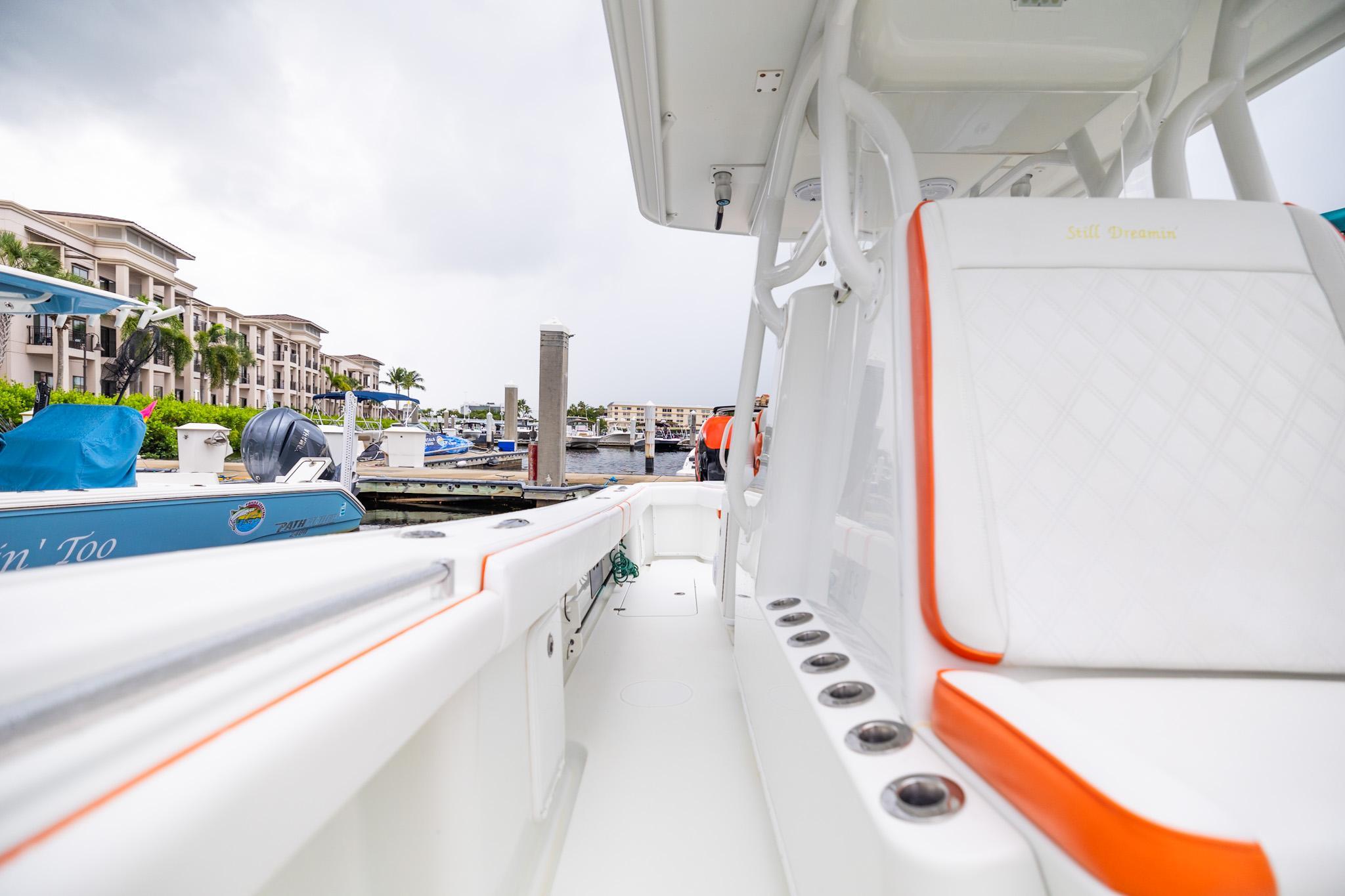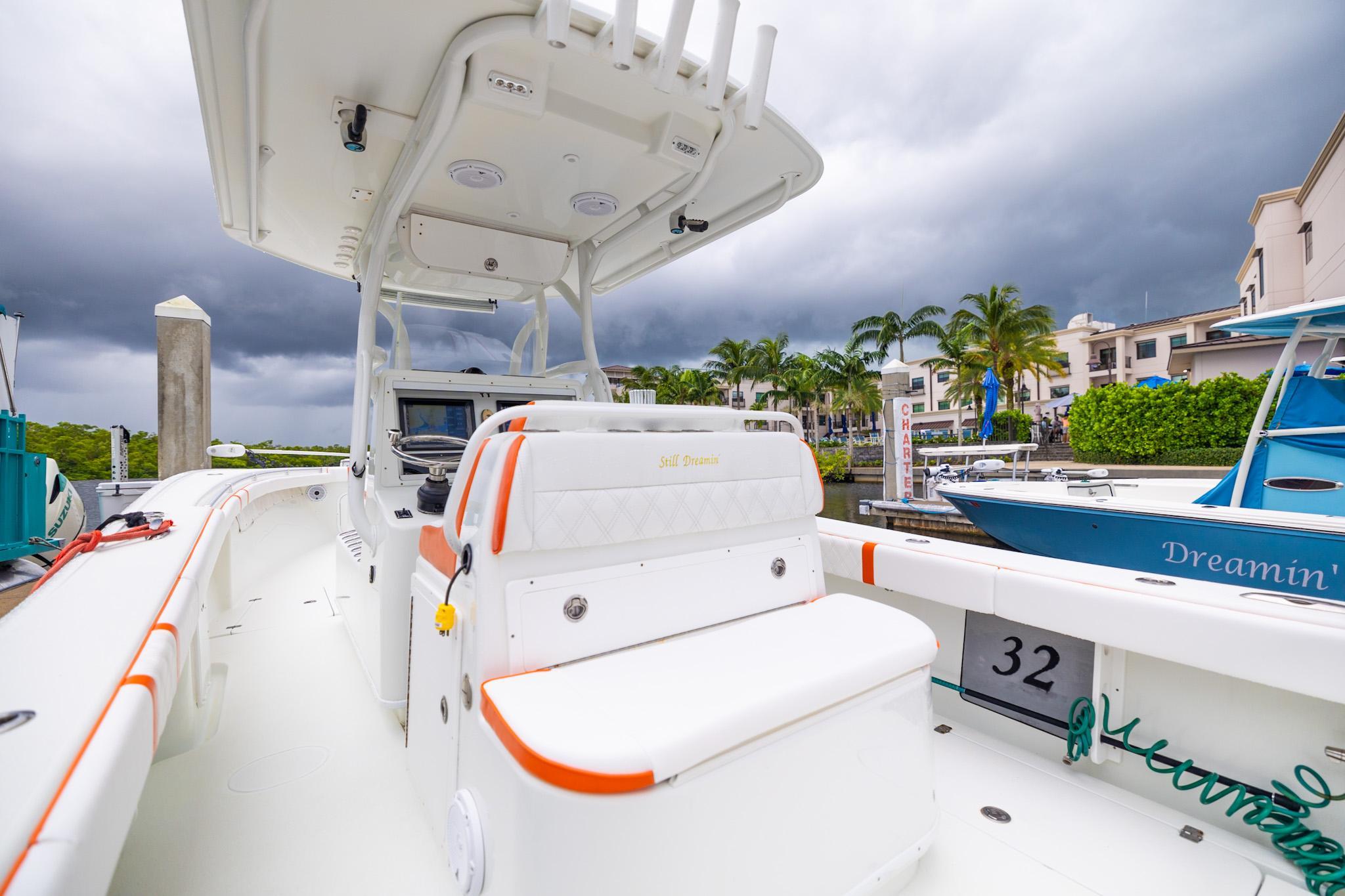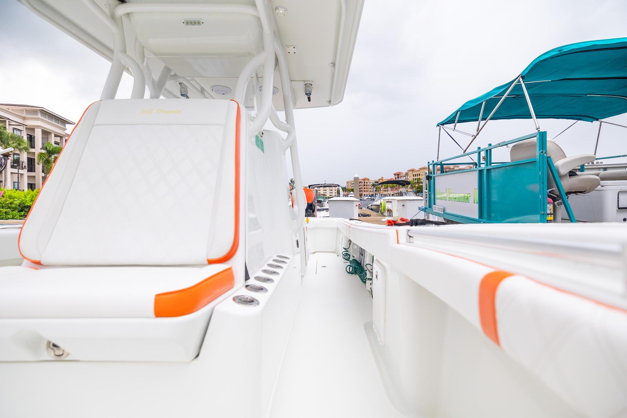 2015 32' Yellowfin "Still Dreamin'" is dreaming of its next owner! It is a standout vessel with both style and serious offshore capability. With twin Mercury 400 Verado engines, the boat is powered to take on the toughest waters. The 32 is one of the most highly sought-after in the Yellowfin lineup, and this boat is equipped with a coffin box with actuator, large transom and leaning post LiveWell's, a 36V trolling motor, and a T-Top featuring speakers, LED lights, spreaders, and a remote-controlled spotlight. Its striking factory orange hull, with matching accents in the upholstery, ensures it turns heads at the dock or offshore. Meticulously maintained by its captain, this boat is ready for its next adventure with a new owner!