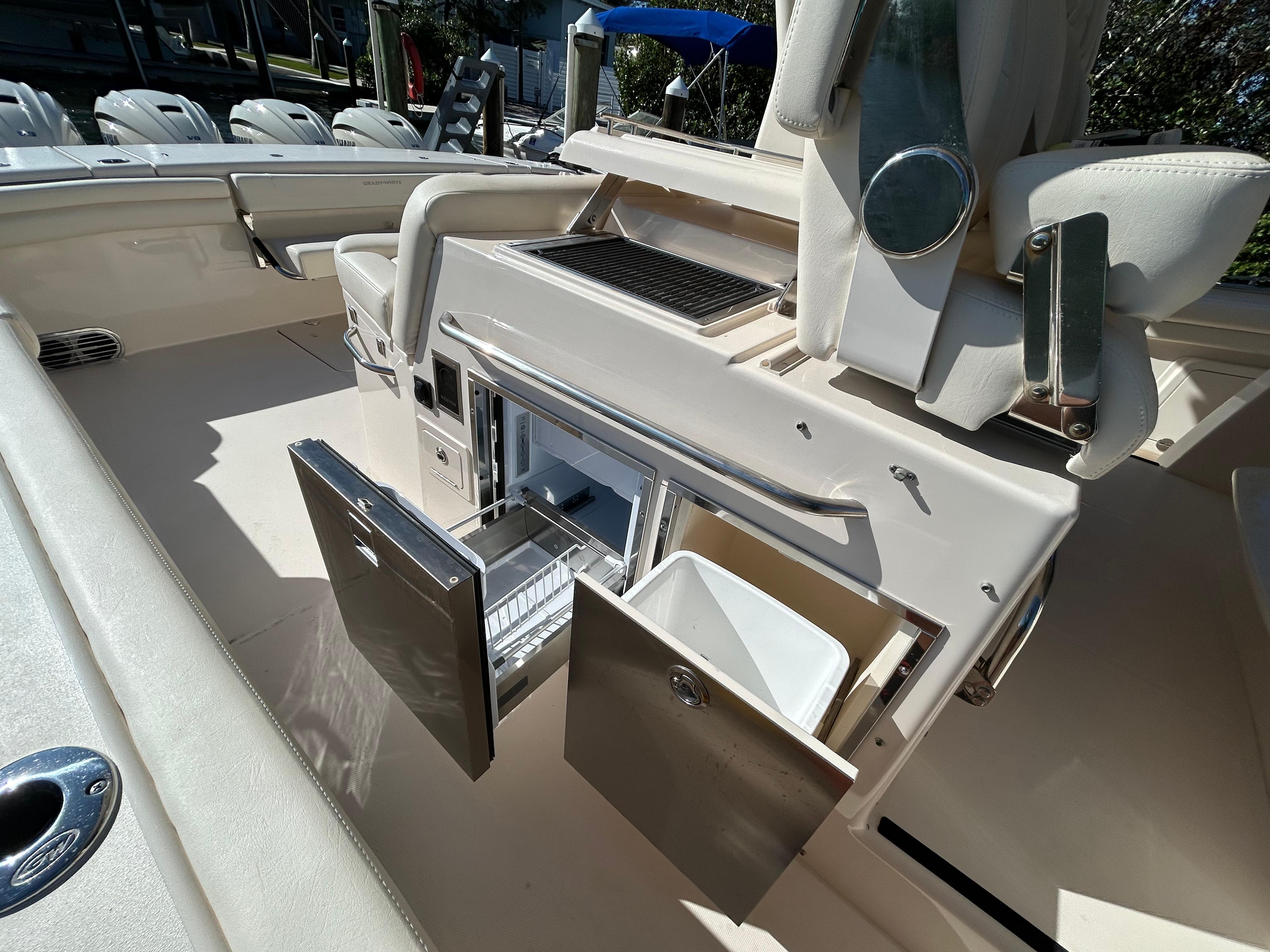 Cockpit galley starboard w/grill, stainless steel refrigerator & trash compartment