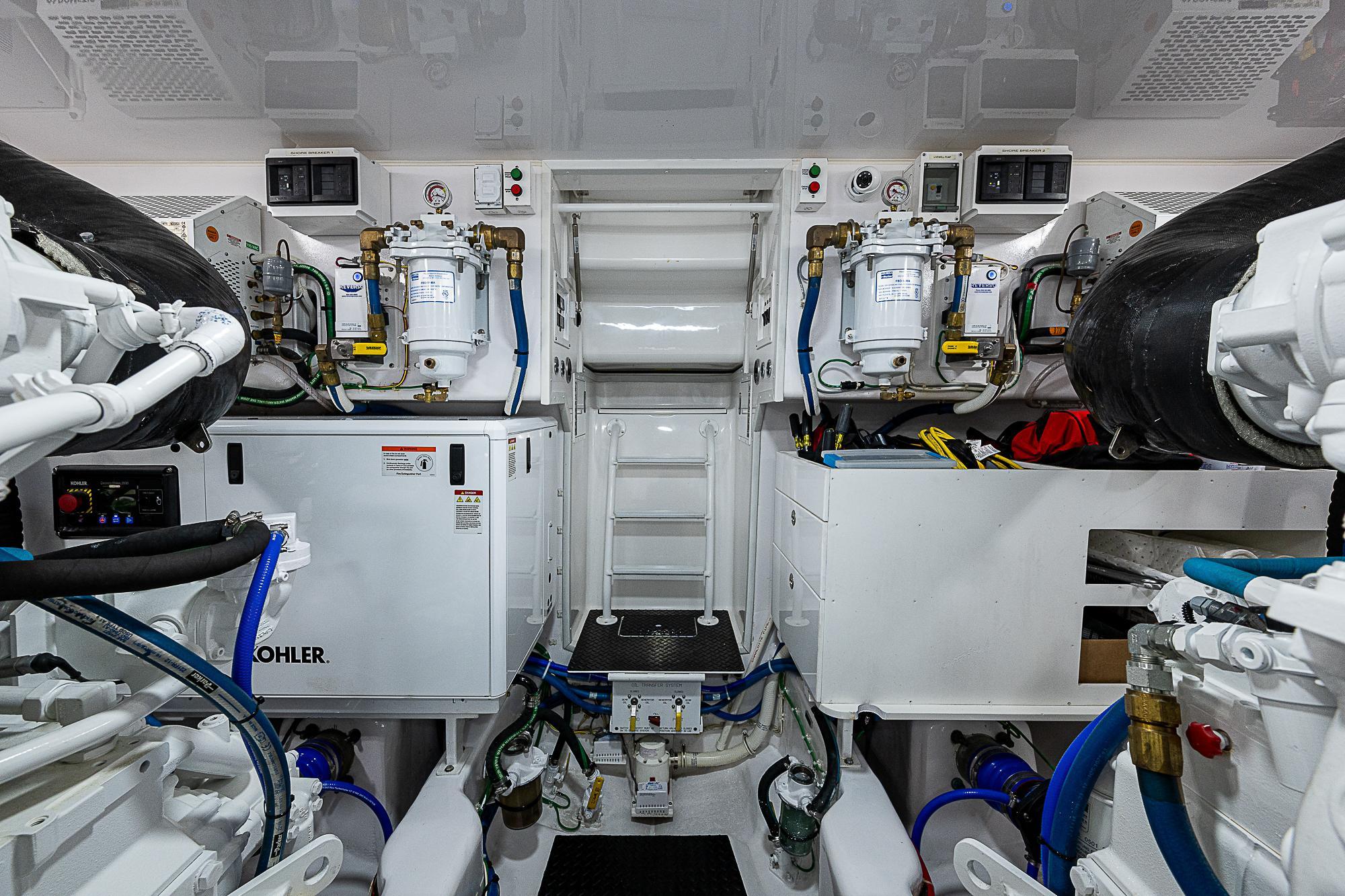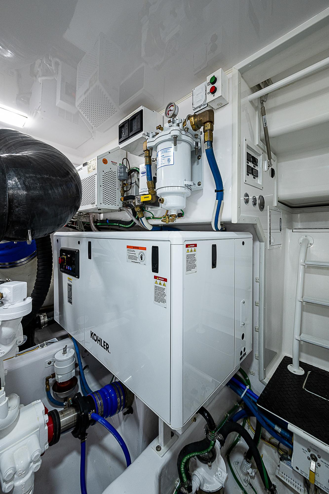 With its Optimus Electronic Power Steering matched to stainless-steel, high-speed rudders and single-lever electronic controls, the 54 delivers outstanding performance, comfort and range. As you would expect, the engineroom is equipped in the Viking tradition with outstanding engineering that is exclusive to this design and maximizes access and serviceability. Mechanical and electrical equipment includes a Delta-T ventilation system with supply and discharge fans for proper fresh air supply and water suppression; an oil changing system for the engines, transmission and generator; and a fire suppression system. The 54 also comes standard with an Onan 21.5 kW E-QD (electronic quiet diesel) Series generator.