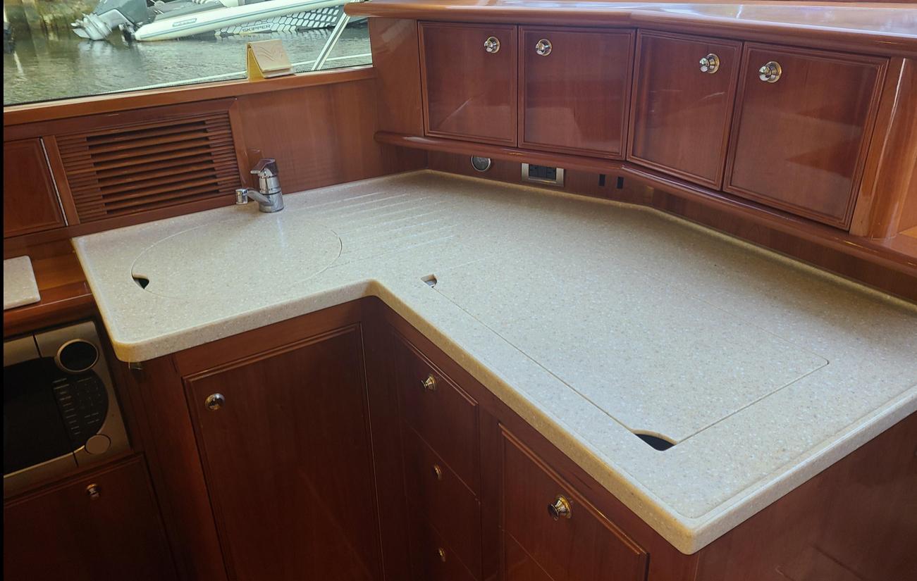 Additional DescriptionEverything from the quality of the appliances to the solid surface bench-top tells you it is a galley designed with the gourmet cook in mind.
