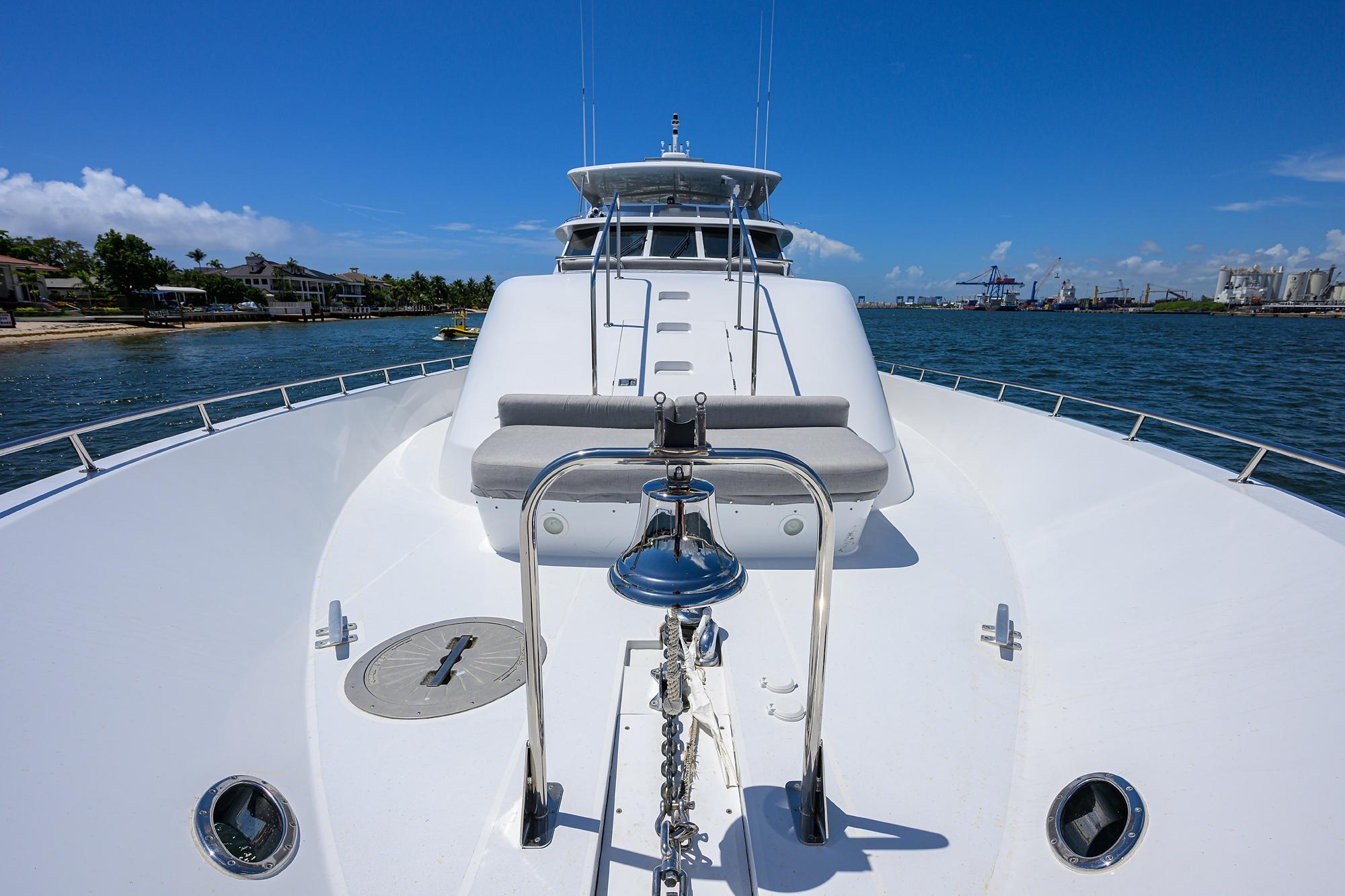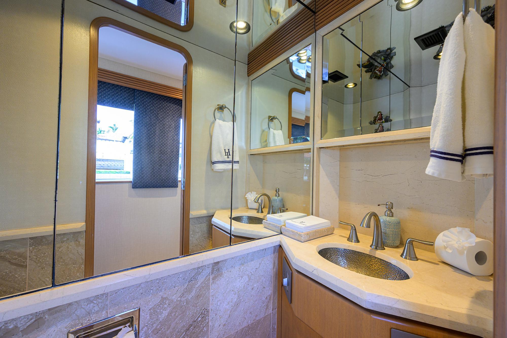 From the salon moving forward on starboard side is a day head and a deck entry door, forward of this is access to the pilothouse, galley and 2 crew cabins forward.