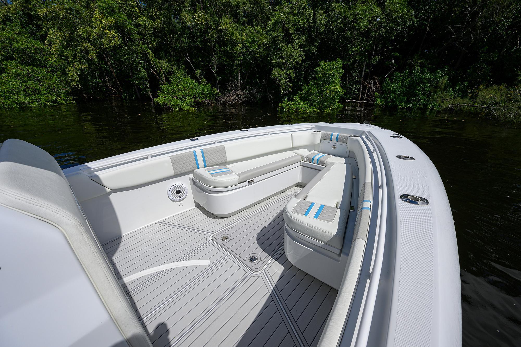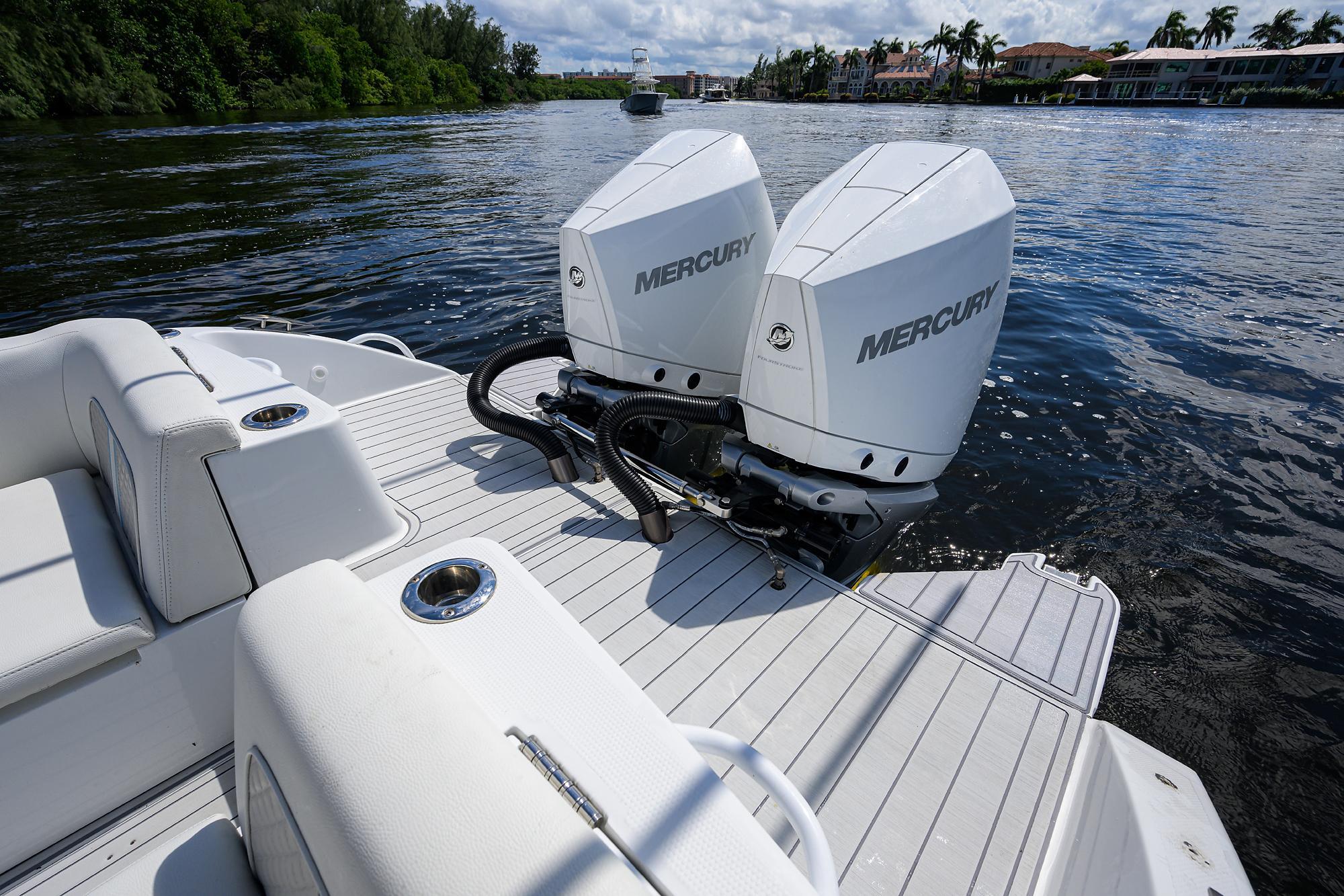 2024 30' Rum Runner – Lightly Used and Loaded with Upgrades!This stunning 30' Rum Runner is your chance to own a boat that’s as good as new, with only 96 total hours (as of 4/6/2025) and a factory warranty valid through June 2026. Traded in by a customer upgrading to a new boat, this vessel is packed with premium features and upgrades, ensuring an unparalleled experience on the water.Performance & Power:Twin 300 V8 Mercury Engines in Cold Fusion White: Reliable, efficient, and stylish.96 Total Hours: Lightly used and meticulously maintained.K-Plane Upgraded Trim Tabs: Enhanced performance for smooth handling in various conditions.Electronics & Tech:Dual 16" Garmin GPS Displays: State-of-the-art navigation and control.Open Array 48-Mile Radar: Superior range and clarity for any voyage.Fusion Stereo System: Paired with (6) JL Audio 8.8 speakers and (3) JL Audio amps for an exceptional audio experience.(2) Upgraded Transducers: Enhanced sonar performance for fishing or navigation.Electronic Battery Switches: Conveniently located in the glove box for easy access.Luxury Features:Upgraded Fiberglass T-Top: Powder-coated in white for durability and style.Carbon Fiber 18' Taco Outriggers: Under T-Top controls for seamless operation.SeaDek Cockpit Flooring: Comfort and style throughout the cockpit.New U-Shaped Bow Seat: Adjustable backrest with ample storage underneath.New Console Door: Easier access with more space in the head.Custom Bench Seat: Additional comfort and utility for passengers.Fishing & Boating Amenities:55-Gallon Live Well: Ready for all your fishing needs.$3,000 Worth of Rod Holders: Including Lee and Mate Series holders for maximum utility.Removable Rear Seats: With flip-out middle cushion and backrest for versatility.Lighting & Covers:Underwater Lights (4): For a striking glow at night.Lumitec POCO Lighting System: Customizable lighting throughout the boat.Razor Lights on the T-Top: Providing ample illumination.Custom Removable Bow & Stern Sunshades: Perfect for extended days on the water.Console & Helm Seat Covers: To keep your investment protected.This boat was used as a "Conch Salad" taxi for its big sister vessel, giving it light, gentle use. It’s only the second used Rum Runner we’ve ever had, making this a rare find.Don’t wait! Call now and let’s get you on the water with this beautiful, feature-packed 30' Rum Runner! This boat won’t last long!