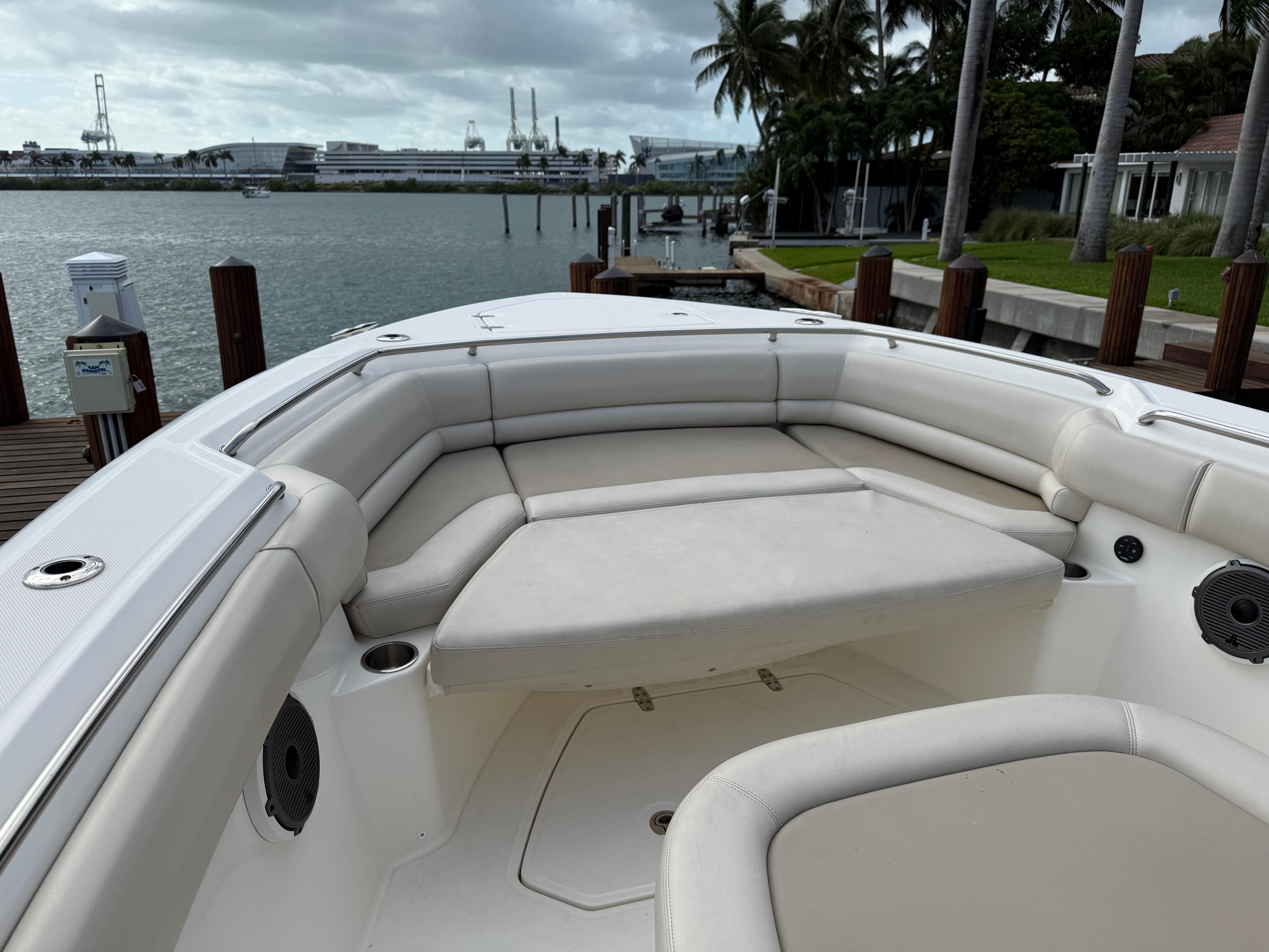 The Boston Whaler 33 Outrage 2020 is a high-end sport fishing vessel known for its durability and versatile design, ideal for both offshore fishing and recreational outings. Equipped with high-performance engines and advanced navigation technology, it provides a powerful and safe driving experience. Its design includes specialized features such as live wells, rod holders, and optimized storage for fishing enthusiasts, while its well-equipped cabin offers comfort with a resting area and full bathroom, making this model an excellent choice for extended adventures on the water.