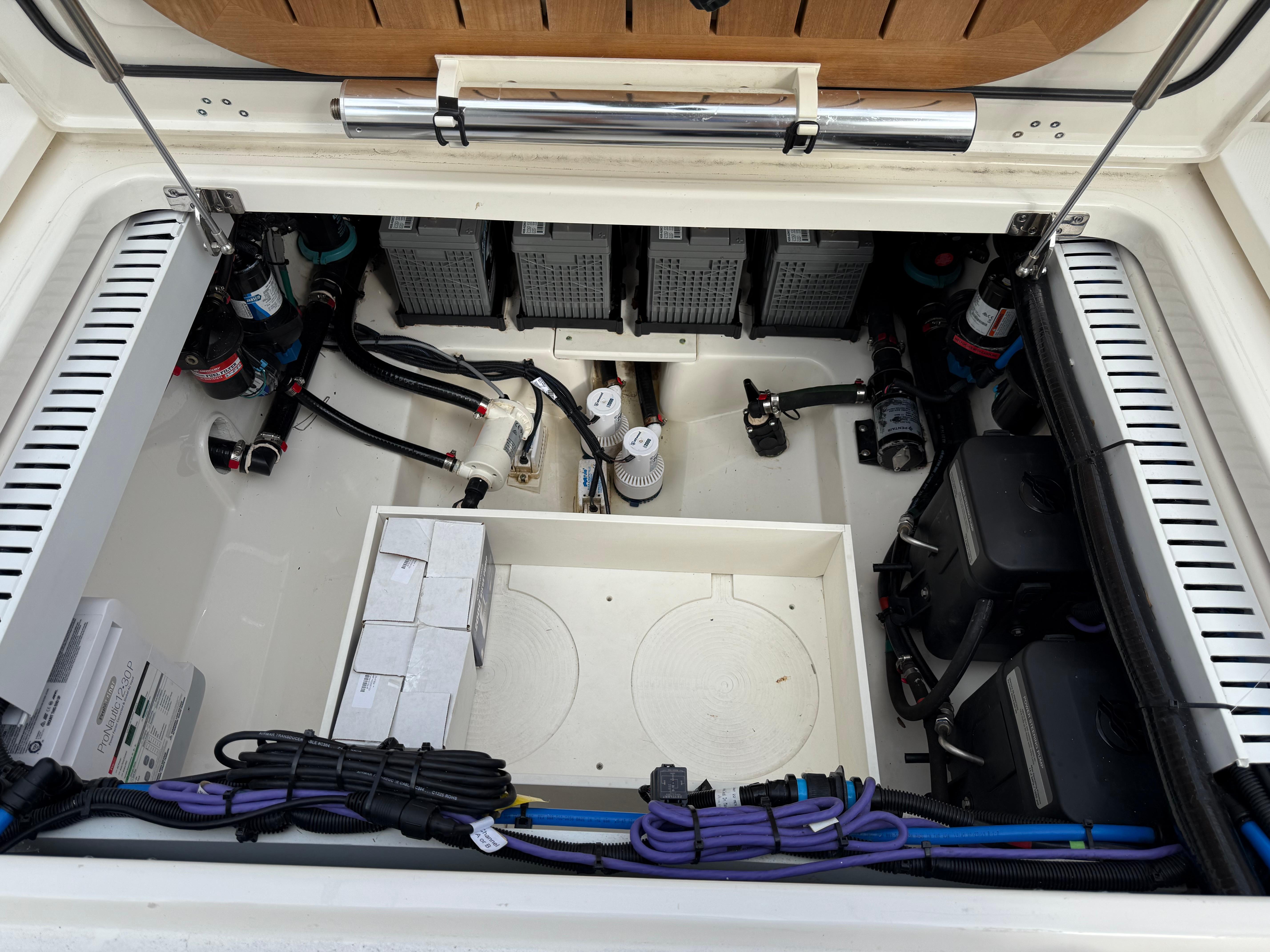 TankageFUEL SYSTEM TYPE One (1) aluminum gasoline fuel tank serves the ship. The fuel filling is located on the port side and is well marked for gas. FUEL FILLING HOSE/TUBING Type A2 Fuel hoses approved by the USCG, where it was spotted The fuel filling had a double hose attachment as required by ABYC H-24. FUEL LINES/HOSES Type A1 fuel lines approved by the USCG, where they are seen. It seems to be useful and in good condition