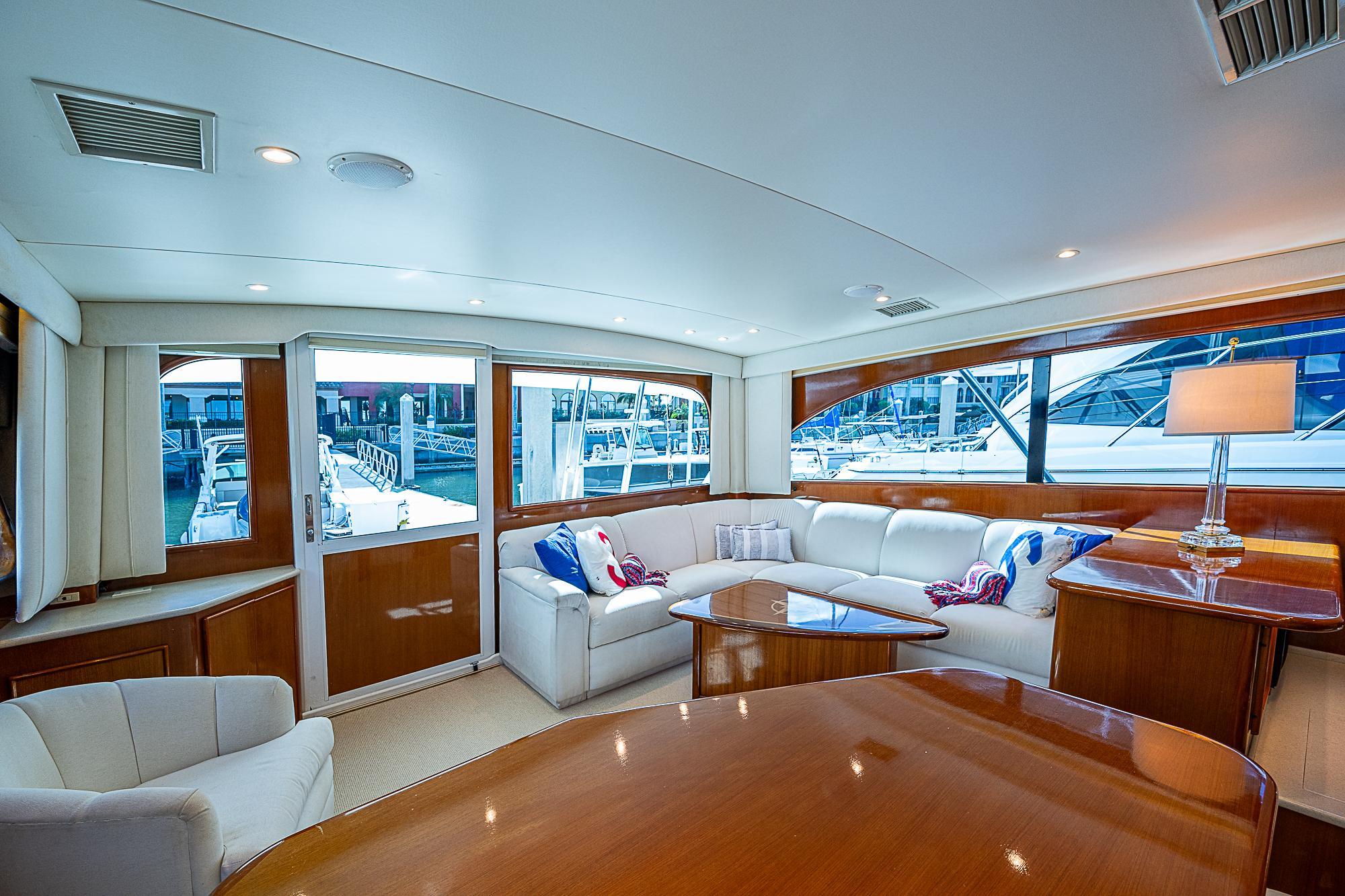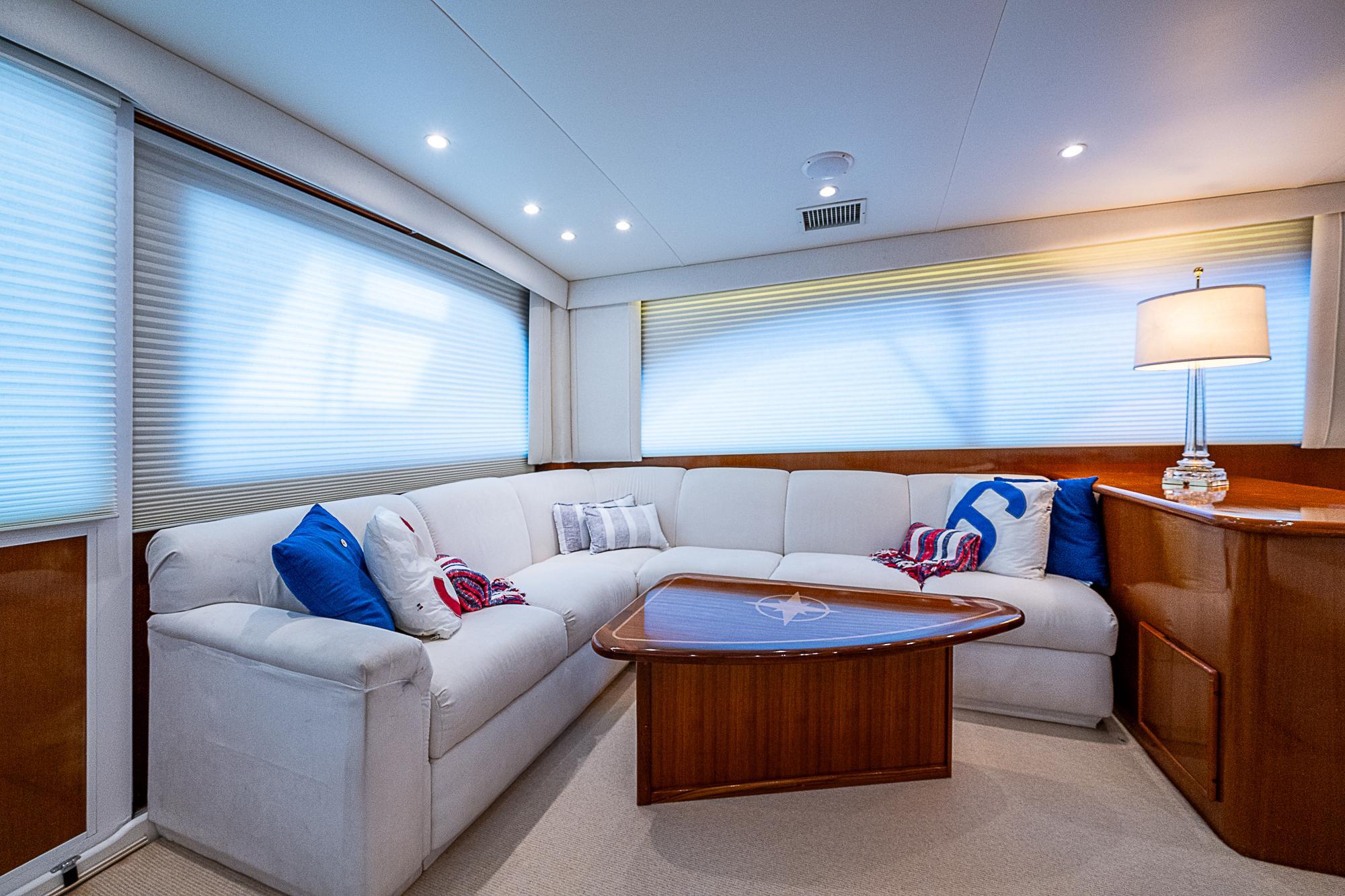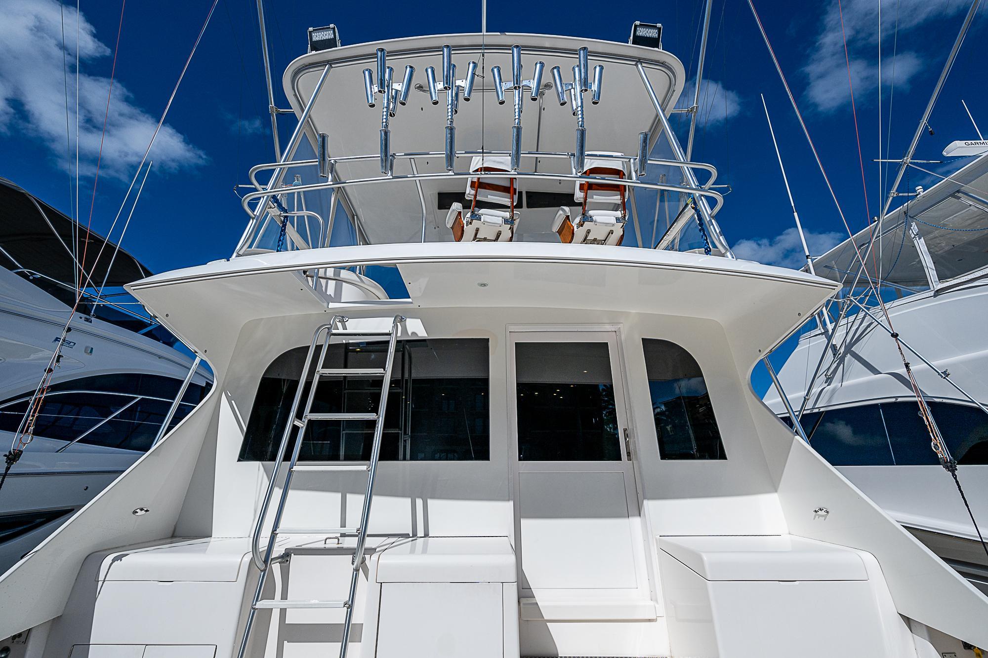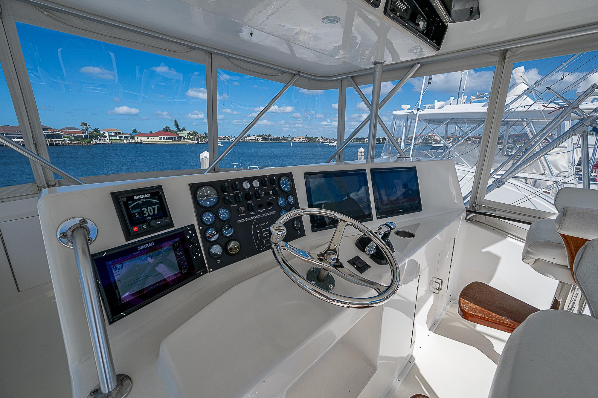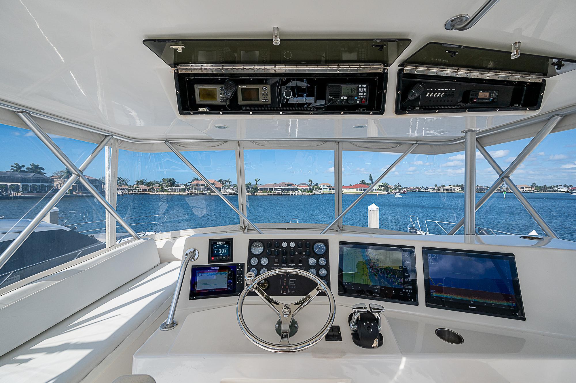 The flybridge features a newer 3-sided 2018 EZ2CY enclosure. All cushions are in good condition. All electronics are nicely flush mounted in the helm console and overhead. Electronics were replaced in 2018-2023.