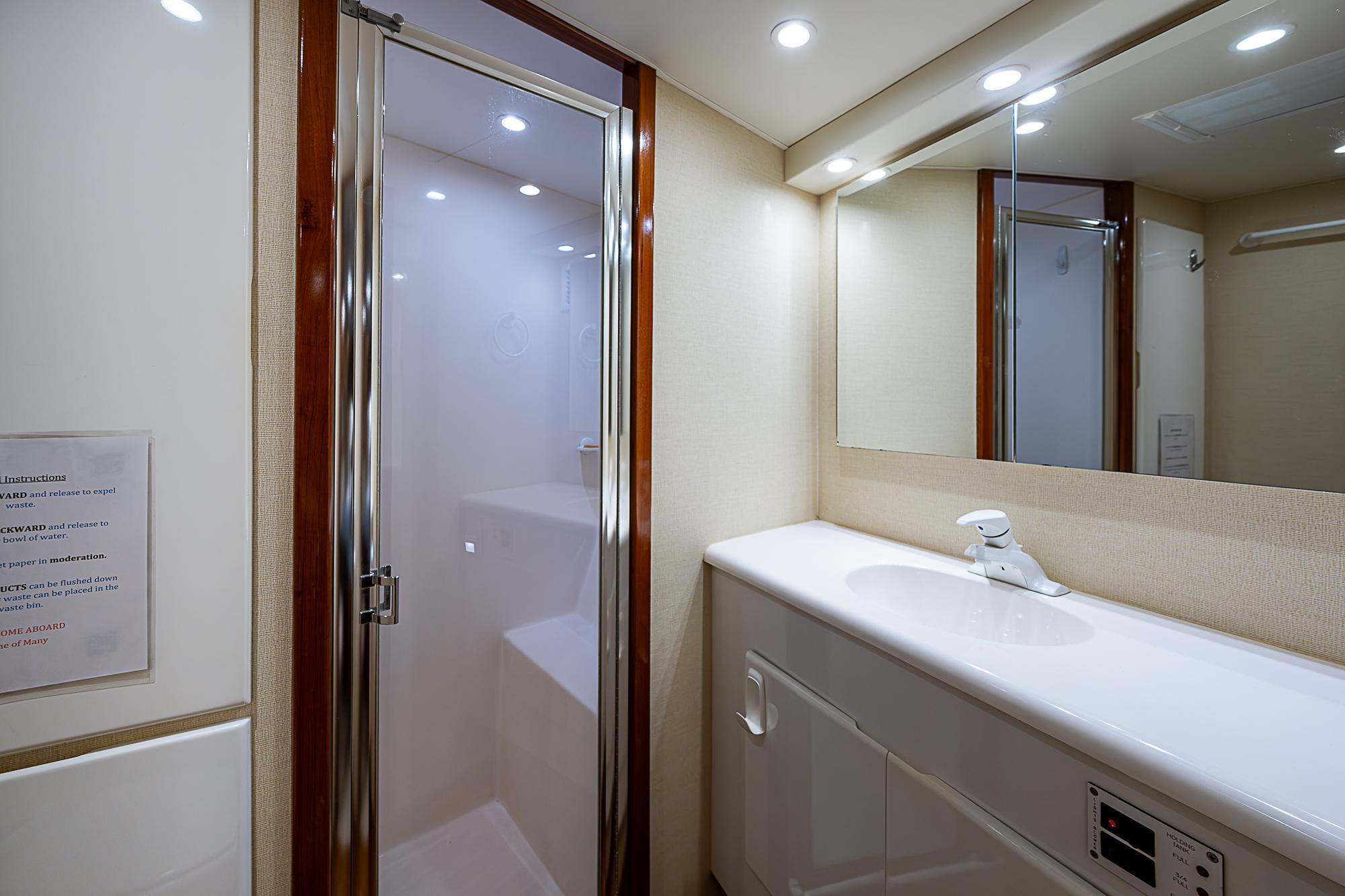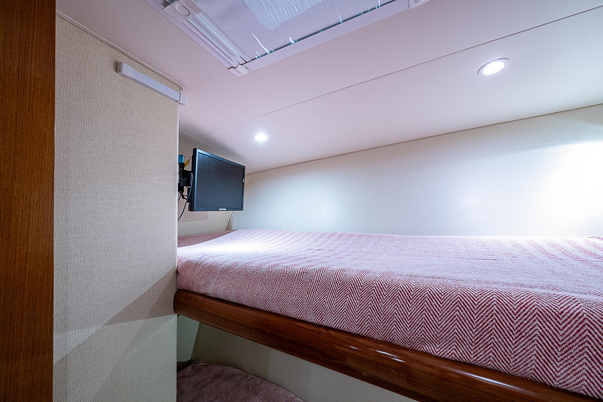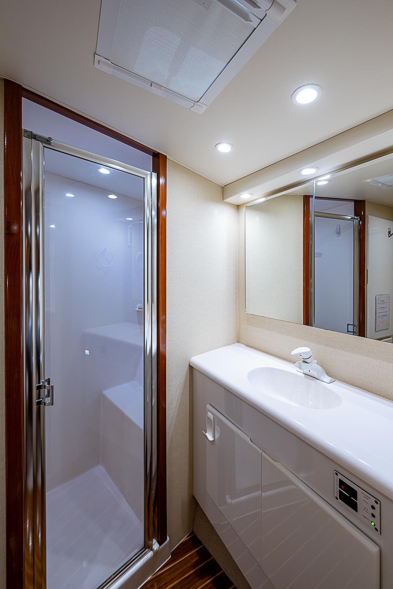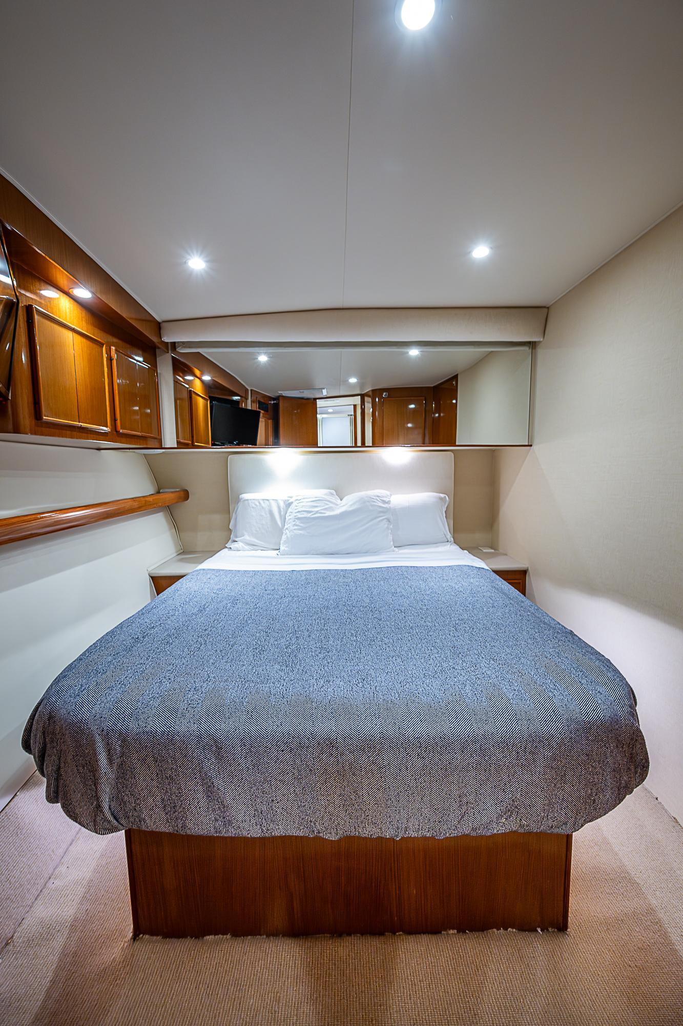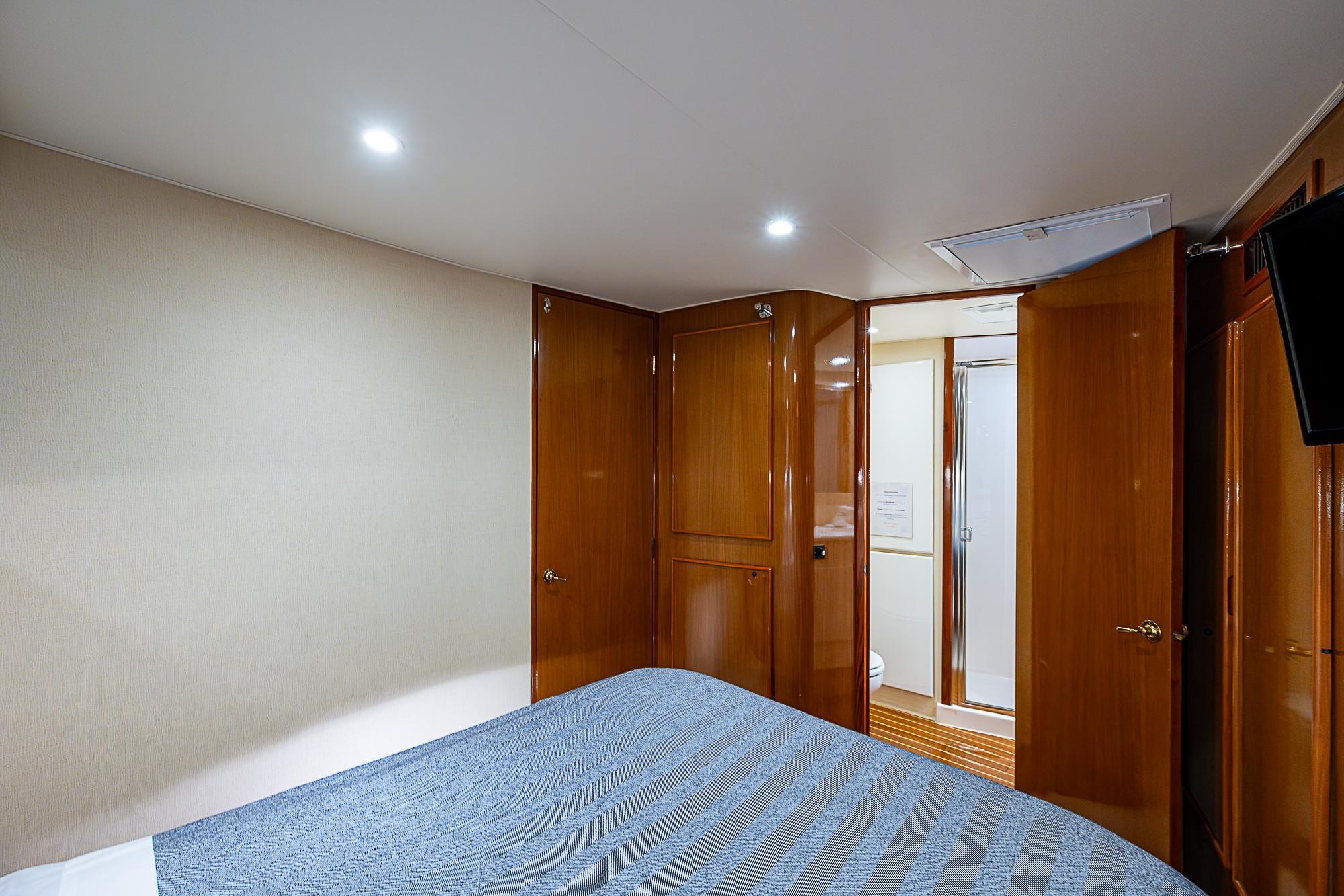 This is the popular "Plan B" featuring the Owner’s cabin to the starboard side with walk around queen bed with private head and large shower. This stateroom is clearly larger than having the master forward. It is a very comfortable cabin. The mid galley and larger salon are a real plus when comparing to the smaller 46 Post.
