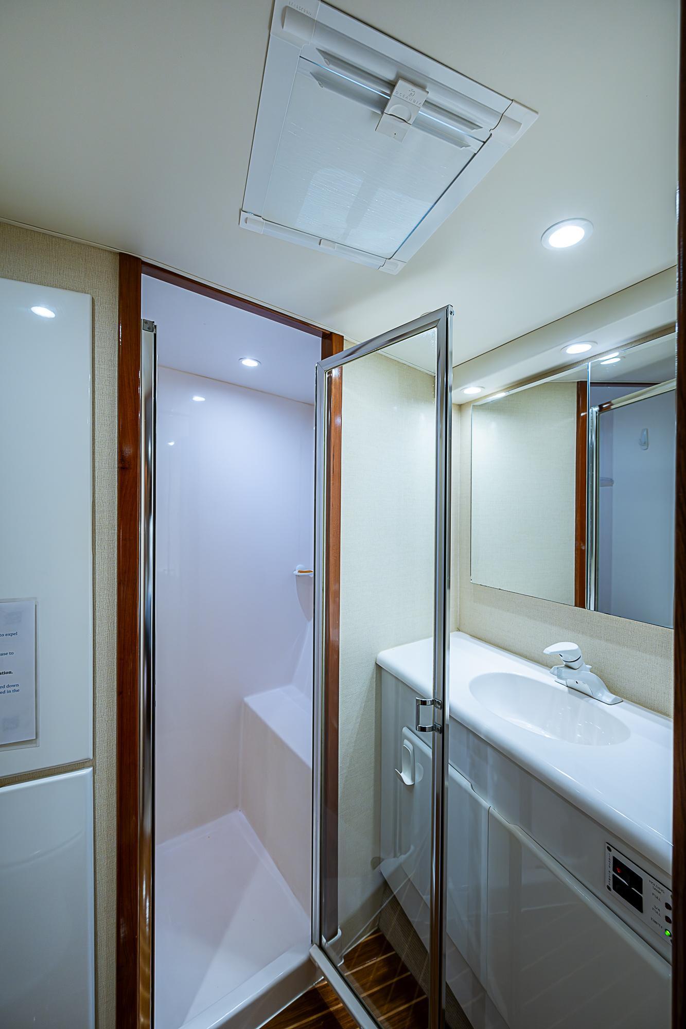 - Fresh water electric heads w/ holding tank & level indicator lights