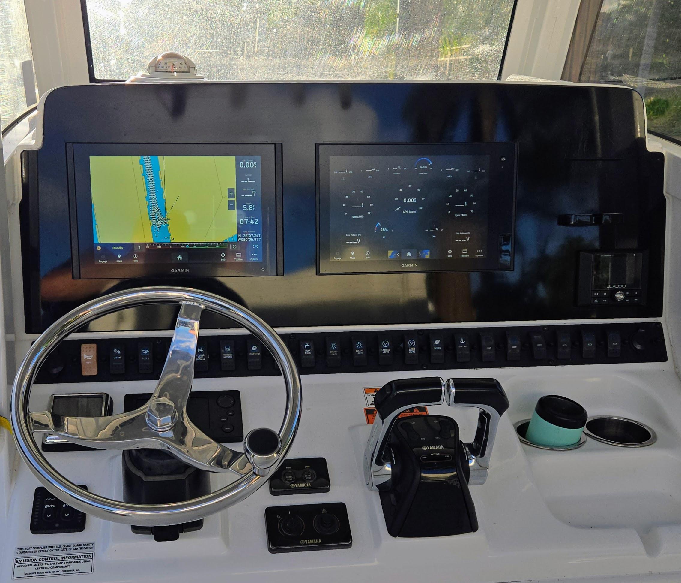 PRICE TO SELL New bottom Paint and complete detail!!The 2018 Sea Hunt Gamefish 30 with forward seating. Twin 300hp Yamaha Engines with 1025 hours of light usage. Price includes Load Rite tri-axle trailer. Two (updated 2022 and 2023)1242 Garmin Electronics Displays( one updated 2022 and the other 2023).Upgraded JL MM50 Audio Waterproof Stereo w/BluetoothWireless Phone ChargerDual Battery Switch- 3 new 2022/23 batteriesYamaha Electric SteeringSeastar Tilt HelmT-Top w/ Mister SystemT-Top Underside ColorKingfish Rod HoldersGemlux Deluxe Outrigger KitFresh Water SystemSide Entry Ladder & HolderRecirculating LivewellThis series delivers exactly what the serious fishermen demand in a sportfishing center console boat. These boats come ready to fish with standard freatures such as multiple insulated fishboxes and livewells, cockpit and bow bolsters, all stainless hardware and Yamaha Command Link digital gauges. The Gamefish series have recessed trim tabs, and hydraulic steering as standard equipment as well. The cockpits are designed to have abundant room for 360-degree of fishing. These hulls deliver soft dry rides second to none.