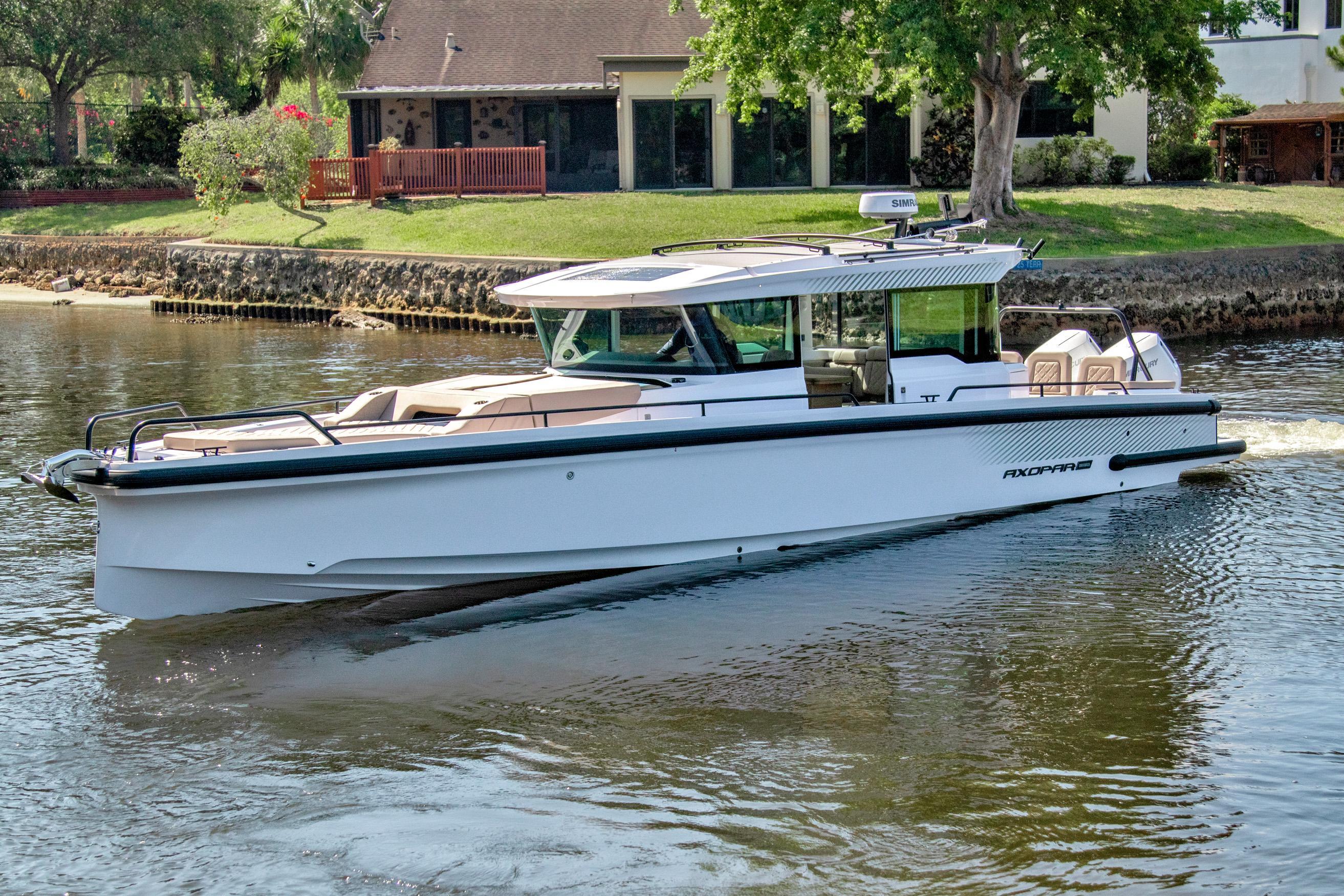 Available in Store: Sarasota / HIN: AXO7C185A525Axopar 37XC Cross CabinTwin Mercury 400Hp V10 JPO**Trailer Not Included** The new Crossover that challenges convention in both looks and onboard functionality bringing a new era to all-weather boating. This model combines the functionality, ease of movement, social outdoor and indoor spaces and versatility of outboard walkaround centre-consoles with a spacious, fully enclosed weather proofed cabin, that with distinctive looks challenges traditional perceptions of cabin boats. We consider the 37XC to be the Gran Turismo of the seas opening a world of possibilities for safe, extended voyages in comfort even in unpredictable weather. We’re proud to showcase Axopar Boats at all our Florida showrooms, including:Ft. Lauderdale, Palm Beach, Stuart, Sarasota, Tampa Bay, Panhandle and Key Largo