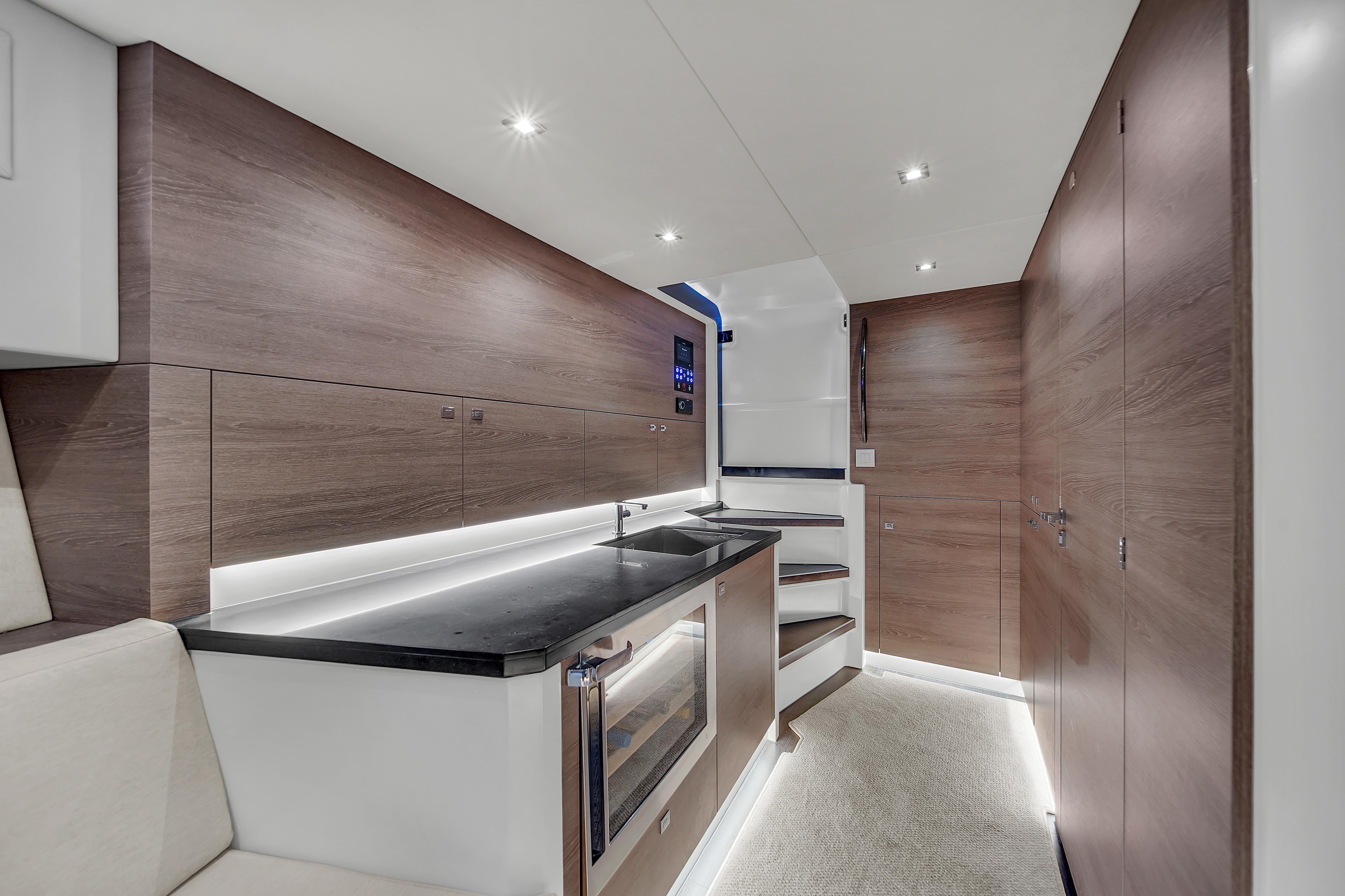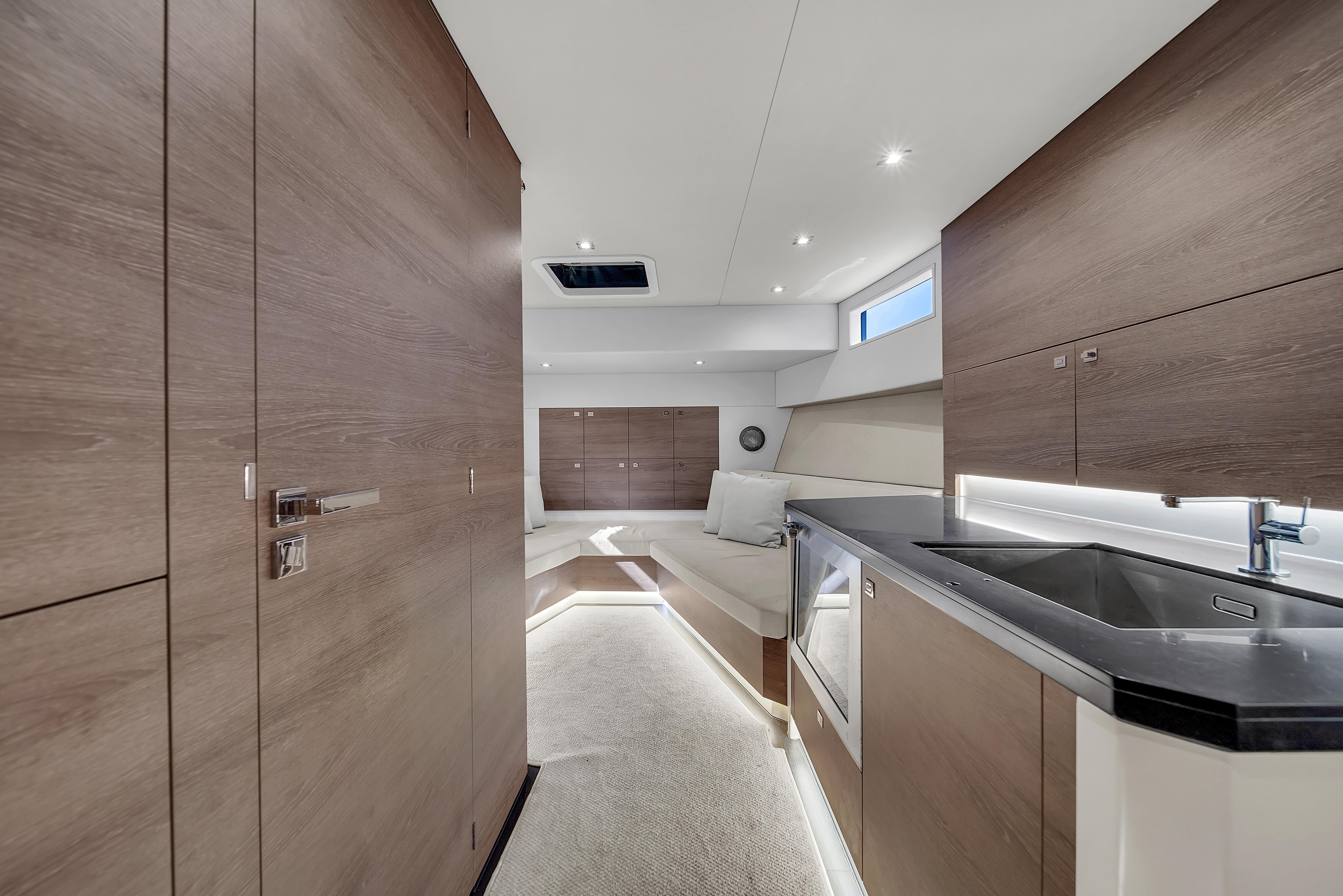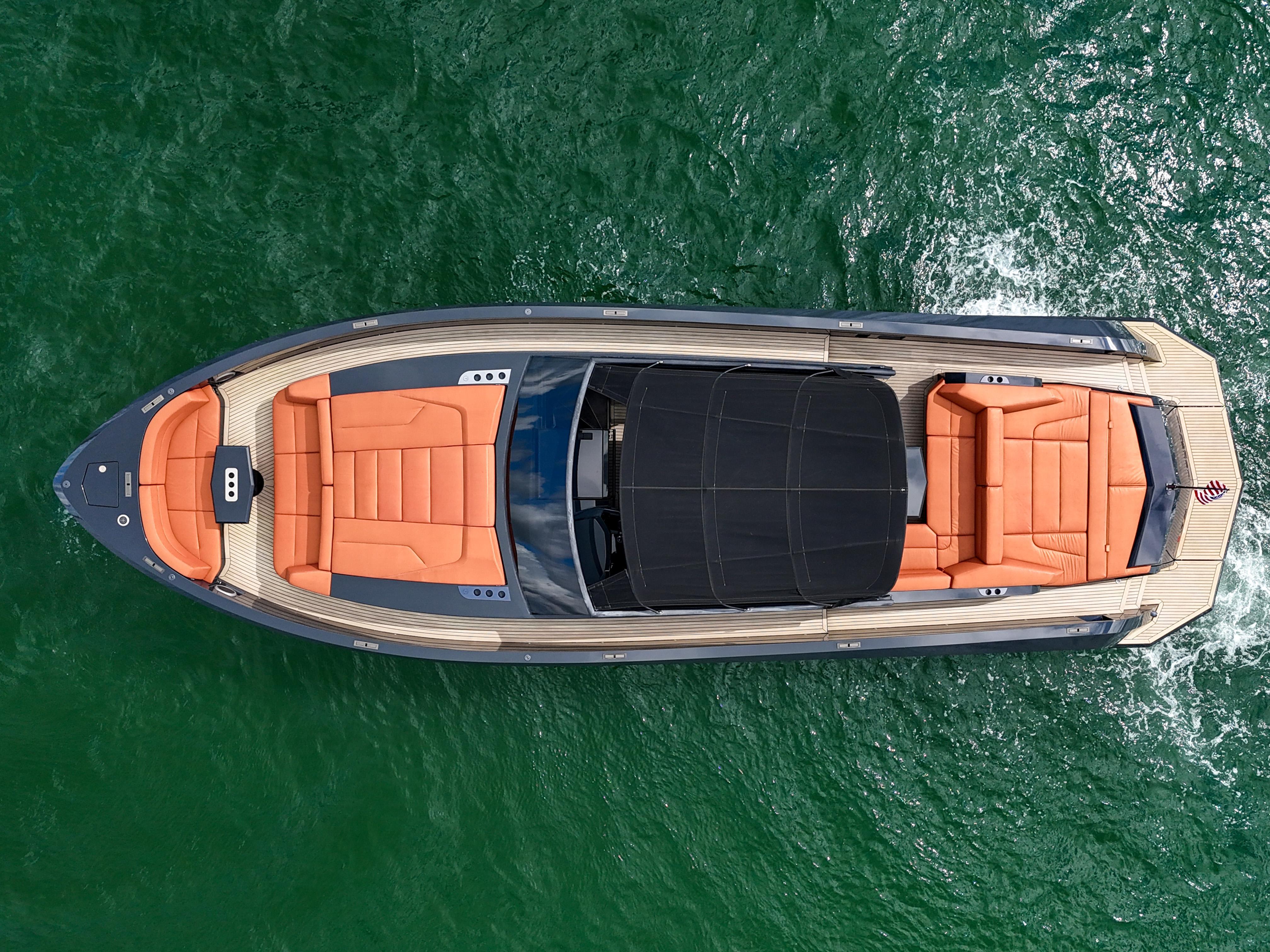 The VQ58 has an expansive open deck layout with 2 large sun platforms located on the bow and stern. In addition, the spacious gangways allow for guests to move freely around the deck. The spacious alfresco dining area around the table for ten on the aft deck is unique and extremely comfortable.