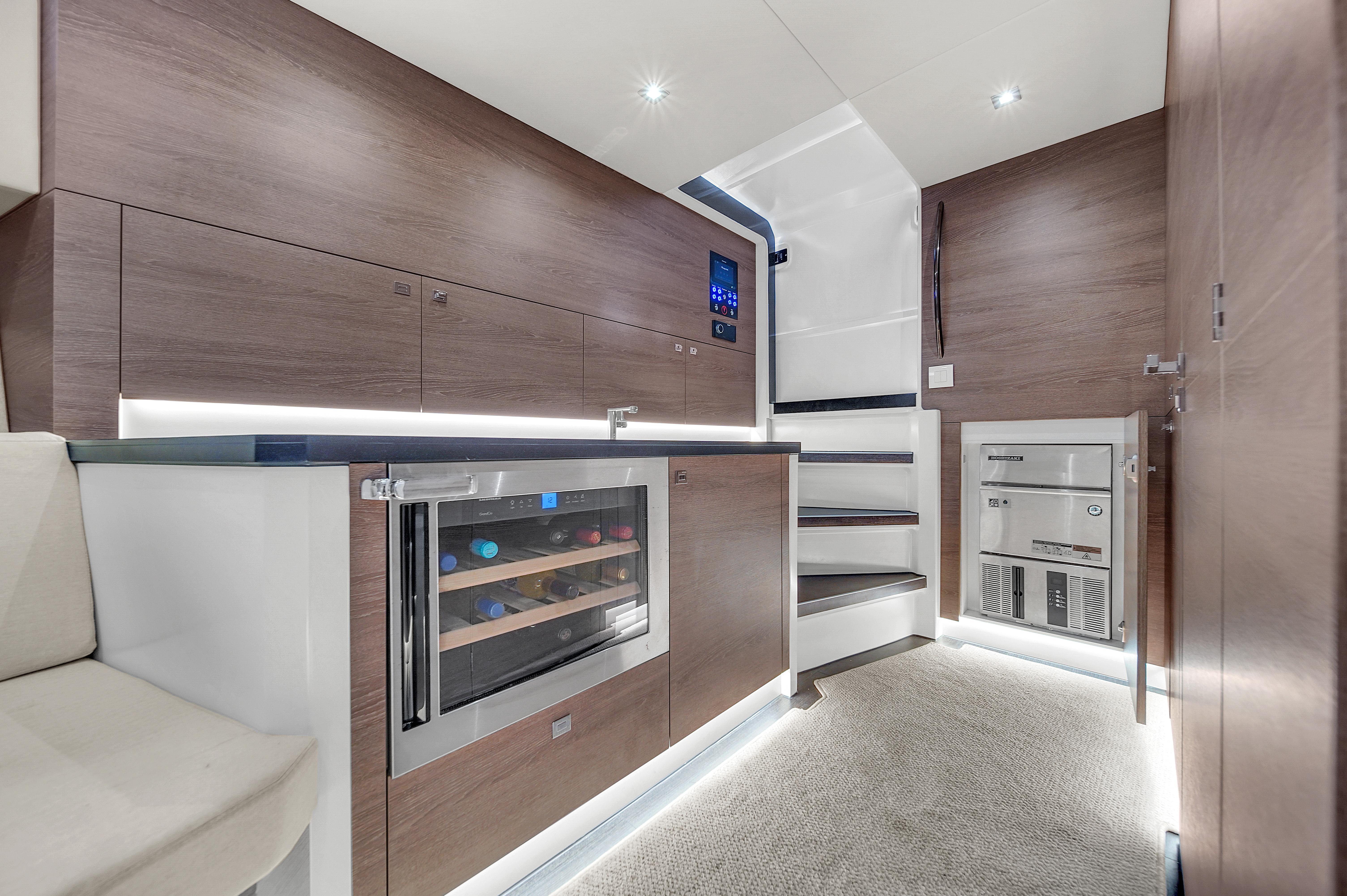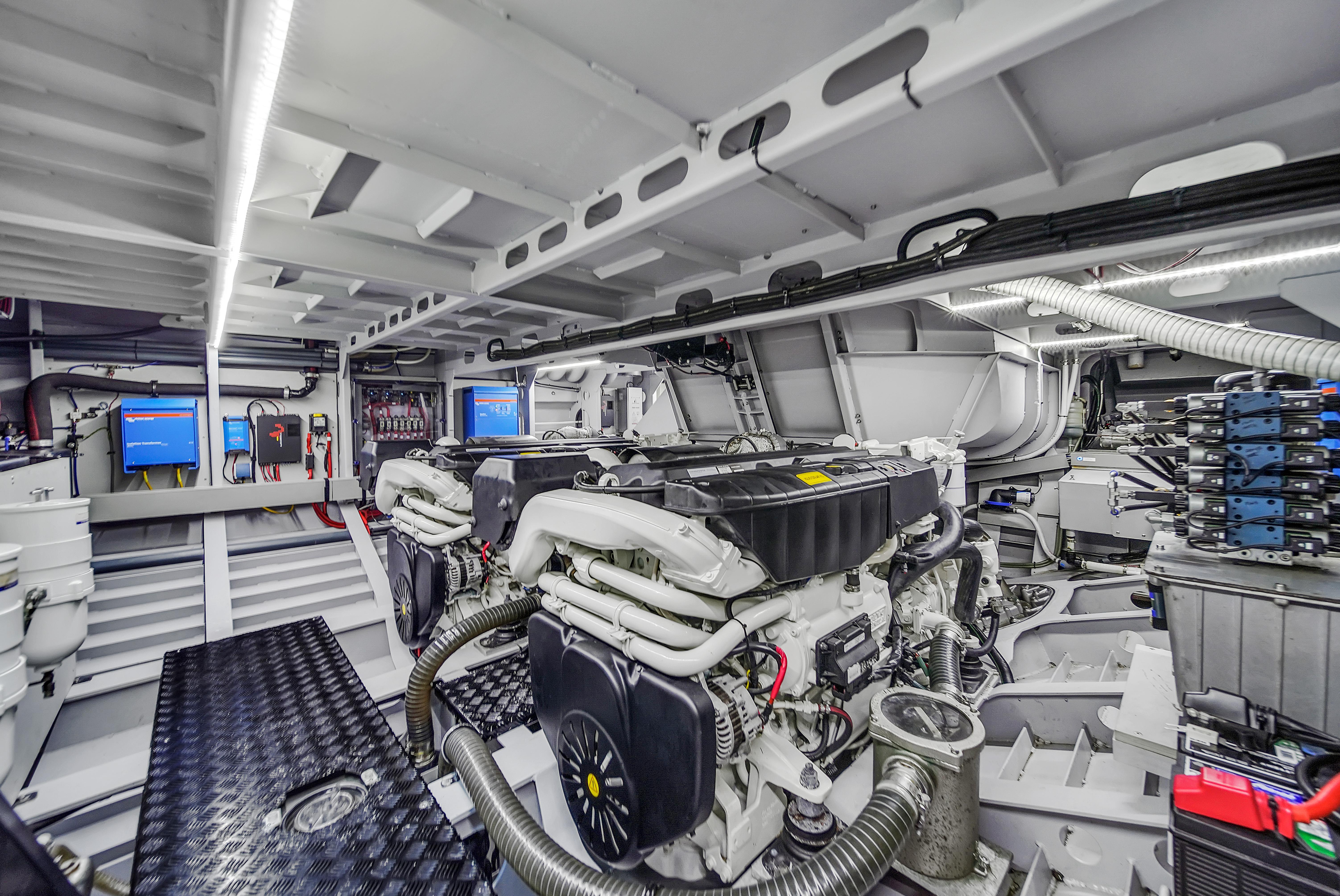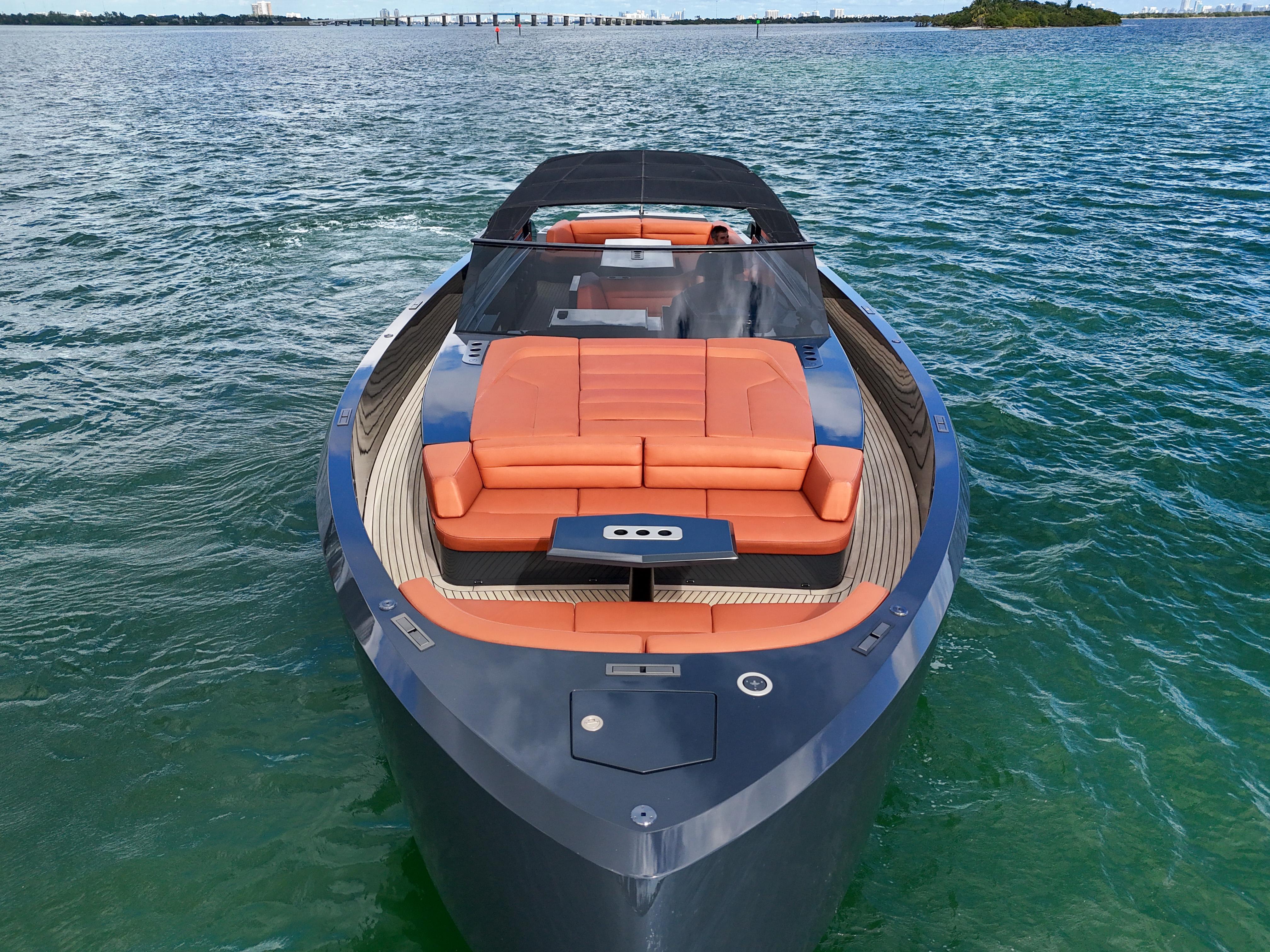 The VQ58 has an expansive open deck layout with 2 large sun platforms located on the bow and stern. In addition, the spacious gangways allow for guests to move freely around the deck. The spacious alfresco dining area around the table for ten on the aft deck is unique and extremely comfortable.