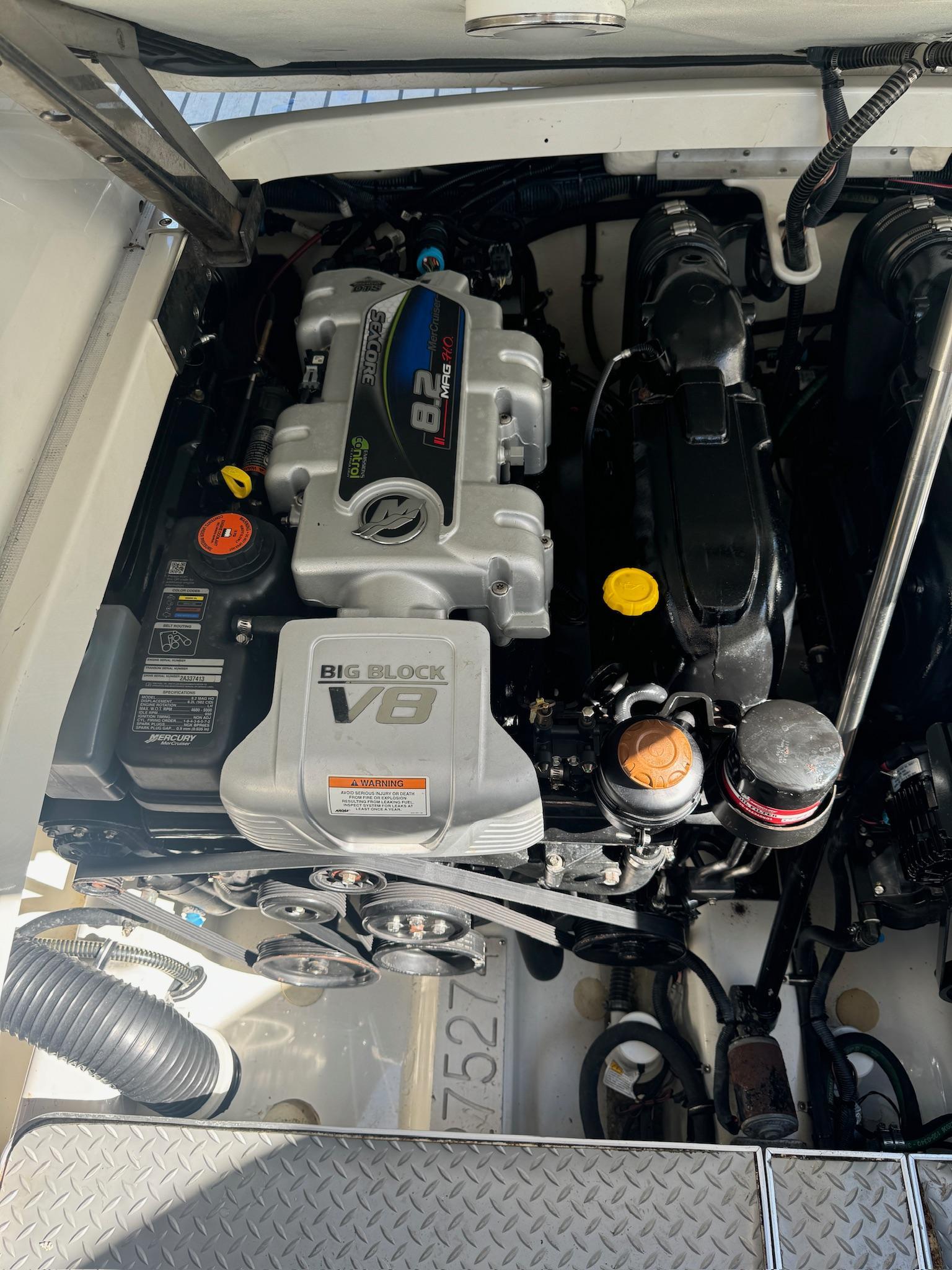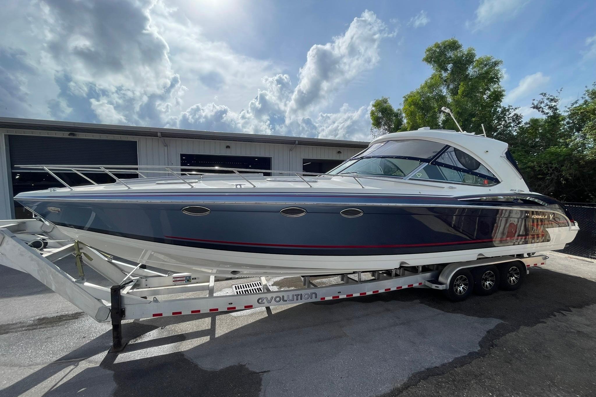 2017 Formula 400 Super Sport – Impeccably Maintained and UpgradedStep into exceptional boating with this meticulously maintained 2017 Formula 400 Super Sport. With only two owners, this vessel has been lift-kept since new and stored indoors, ensuring top-tier condition and reliability. Originally built with premium features, it has been upgraded to perfection, making it a standout in any marina. Its twin MerCruiser Seacore engines offer thrilling performance and smooth cruising, whether you're out for adventure or entertaining guests!Don’t miss out! Call today to schedule a viewing and make this stunning boat yours. Key Features and Upgrades:Engine and Performance:Twin MerCruiser Seacore 8.2 MAG HO ECT B3X engines (520 hours on Vessel View) 50 Hours since new long blocks installed.NEW IN 2024: long blocks, manifolds, risers, heat exchangers, water pumps, starters & Bravo 3 outdrives - all items listed were replaced on both port and starboard engines.Less than 50 hours since longblocks were installed as well as new outdrives, manifolds and risers!ADDED IN 2023: Bow thruster system added for enhanced maneuverabilityInstalled Sidepower SE100/185T-12V bow thrusterInstalled 185mm fiberglass thruster tunnelInstalled joystick pilotingInstalled absorbed glass mat (AGM) battery with holderInstalled 12 volt battery chargerInstalled automatic main switchLuxury and Comfort:Single Raymarine eS128 GPS widescreen color chart plotterCockpit and cabin air conditioningPremium sound system with Bluetooth, iPod/USB connectivity, and SiriusXM satellite radioHigh-gloss Deep Wenge doors and cabinetryUltraleather seating and custom décor pillowsConvenience and Safety:Hardtop with full canvas enclosure with aft isinglassUnderwater lightingRemote control LED searchlightAutomatic engine room fire suppression systemDual shore power with galvanic isolatorsVHF radio with antennaAdditional Features:Swim platform with concealed swim ladder and swim seatCockpit wet bar with Corian countertop, sink, and refrigeratorElectric windlass with chain counter and stainless-steel anchorCentral vacuum systemCockpit cover and all-weather cockpit coverDimensions and Capacities:LOA: 40' 9"Beam: 11' 0"Fuel Capacity: 250 gallonsWater Capacity: 55 gallonsHolding Tank Capacity: 57 gallons