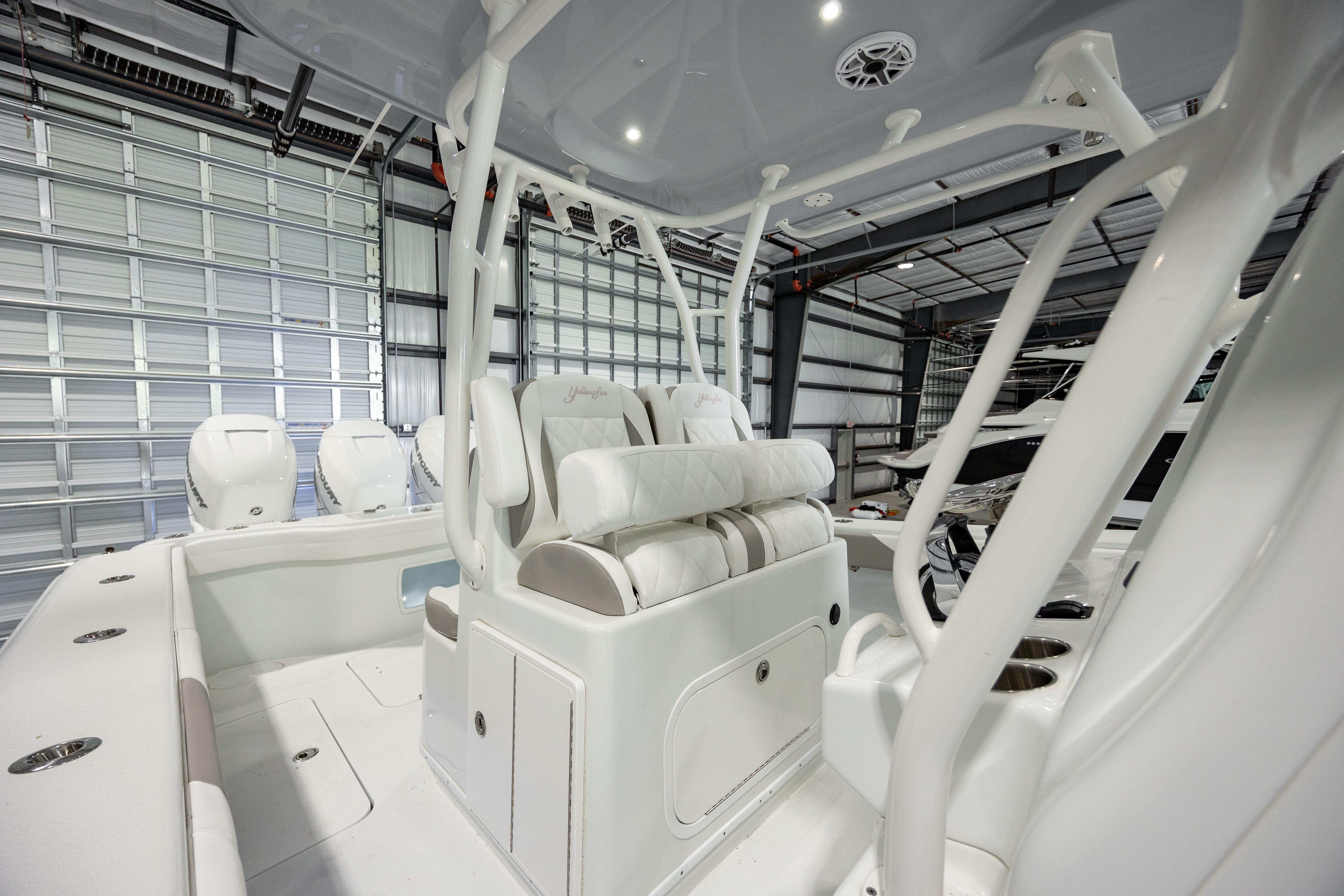 It’s a live-bait fisherman’s dream, with a 55 gallon transom live well and the options of an additional 55 gallon floor well, for maximum bait-keeping capability. You can power the 34 with twins or triples and it easily cruises 40MPH while burning only 24GPH with twins, or 27 GPH with triples. This astounding level of performance comes with Yellowfin’s trademark dry ride, and the 10-foot beam gives you plenty of room for yourself and all of your fishing buddies.