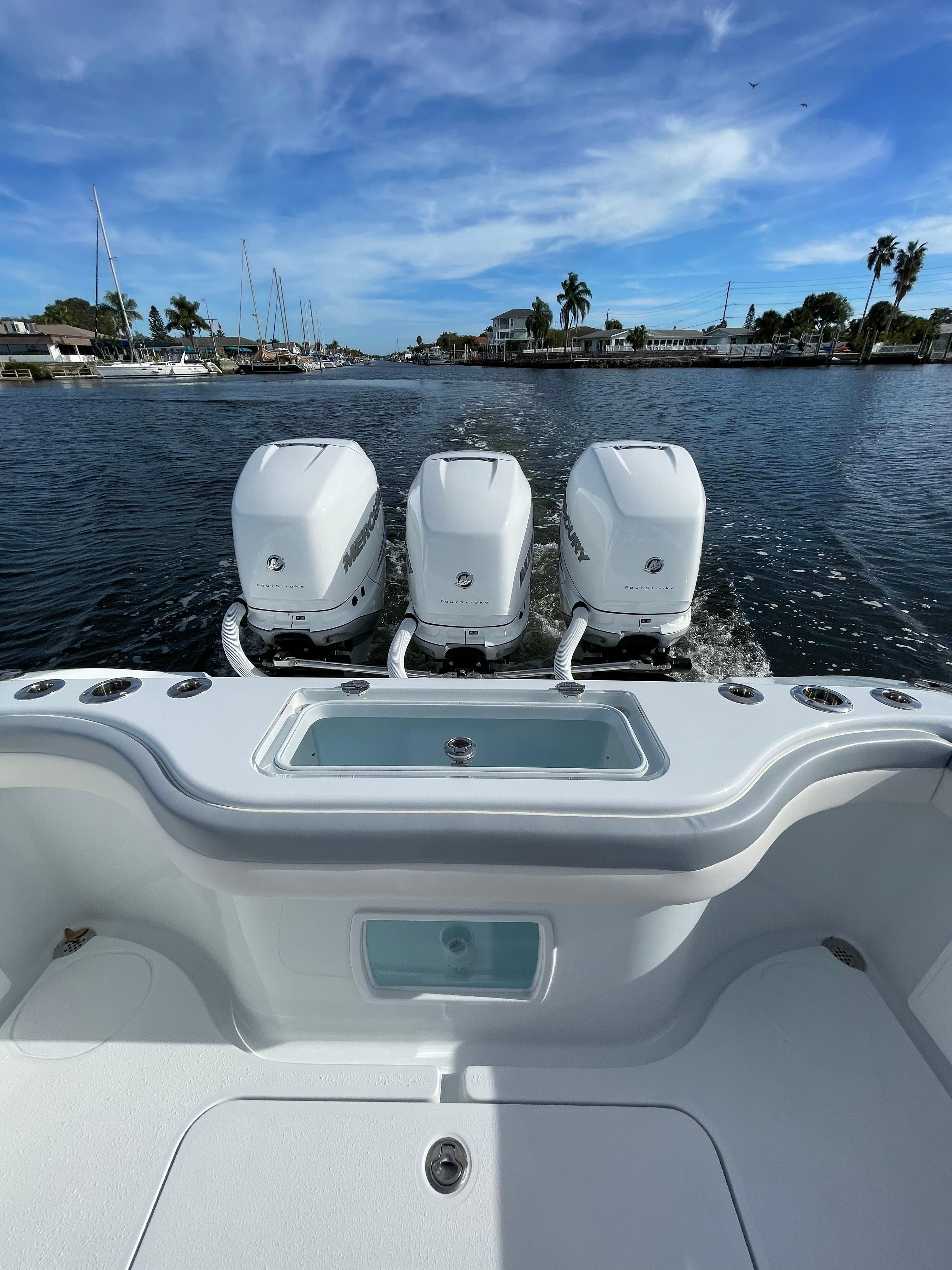 THE NEWEST 34' YELLOWFIN TO HIT THE MARKET!! MOST LOADED 34' YOU WILL FIND!! 200 HOURS!! TRAILER INCLUDED!! - Triple L6 400 VERADO'S ONLY 200 HOURS (WHITE) - Double Diamond stitch upholstery - Whisper gray hull and bottom of the hard top.- (2) 8617 Garmin MFD'S- 12KW XHD Open array Garmin Radar- Garmin autopilot- AIRMAR B275LHW transducer w/ GCV20 ULTRA HD BLACK BOX- Garmin ram mic VHF- Fusion stereo 4 10" JL Subs & 10 JL Speakers - JL Audio amplifiers-Pro Charging PS4 onboard charger- Underwater lights- Hard top Multicolor lights- 5 Spreader lights- Bow thruster- Rhodan Trolling motor with lithium battery.- Coffin box with removable back rest - Fresh water washdown- Salt water wash down- Deluxe Yellowfin helm seating- Tackle center- 2 Live-wells- Live-well window on the transomAMERATRAIL Trailer includedTHIS BOAT IS ABSOLUTELY LOADED AND IN IMMACULATE CONDITION!! A MUST SEE!! WE CAN ASSIST WITH FINANCING AND WILL CONSIDER ALL TRADES!