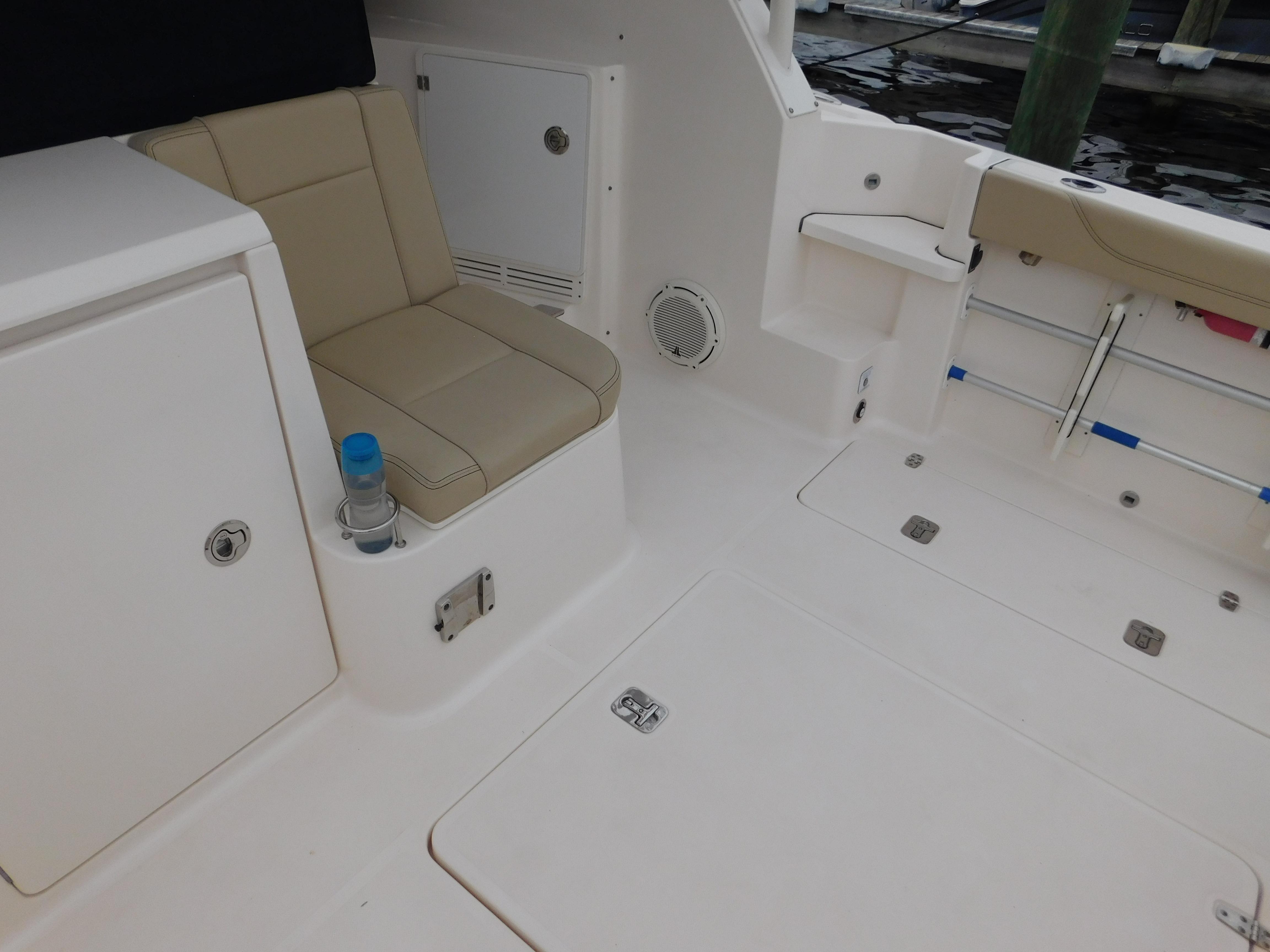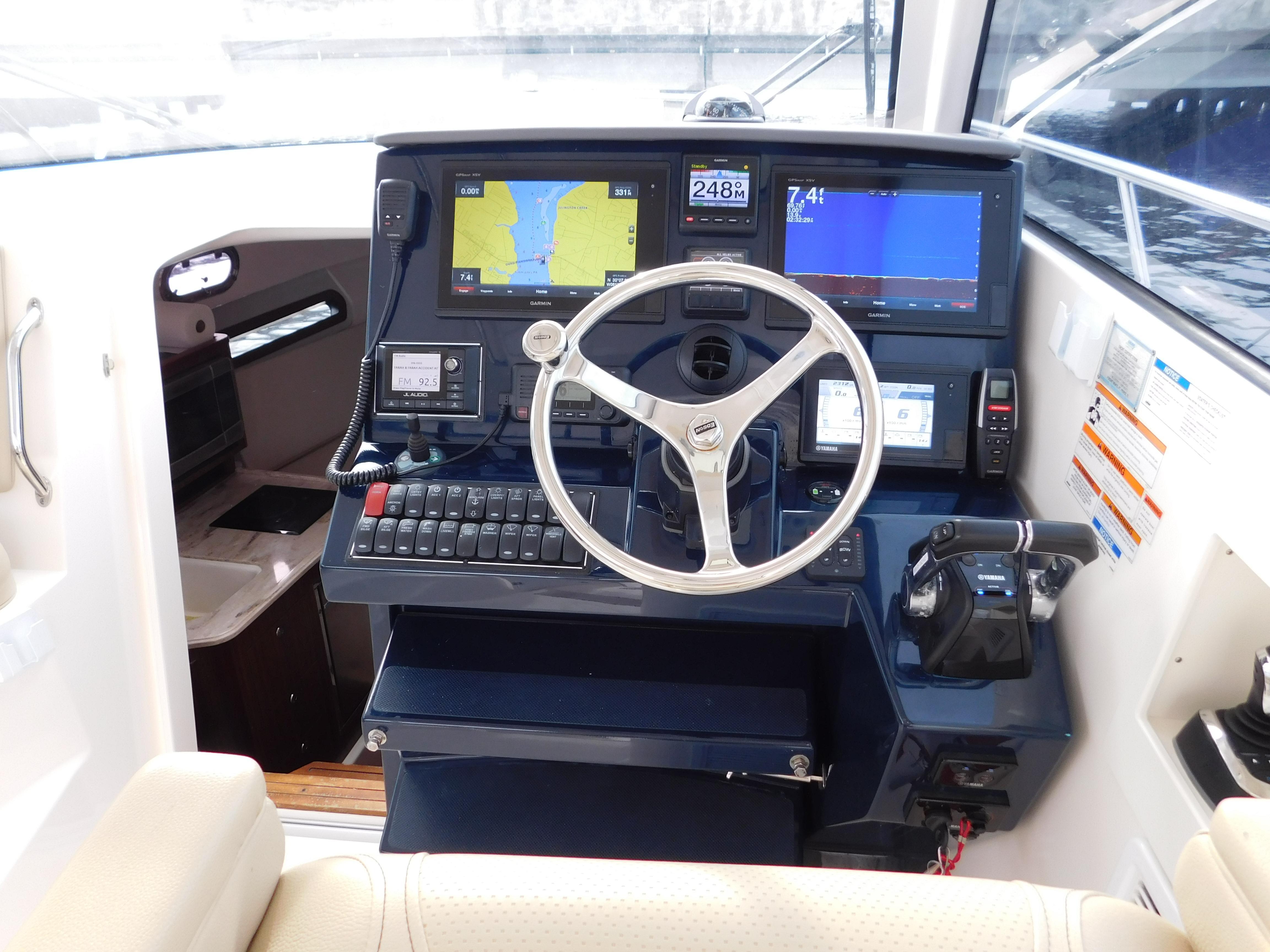 - Pursuit cockpit entertainment system: 12V bluetooth® compatible stereo system, premium speakers (7 total, 4 in hardtop, 2 interior & subwoofer), amplifier and remote at helm
