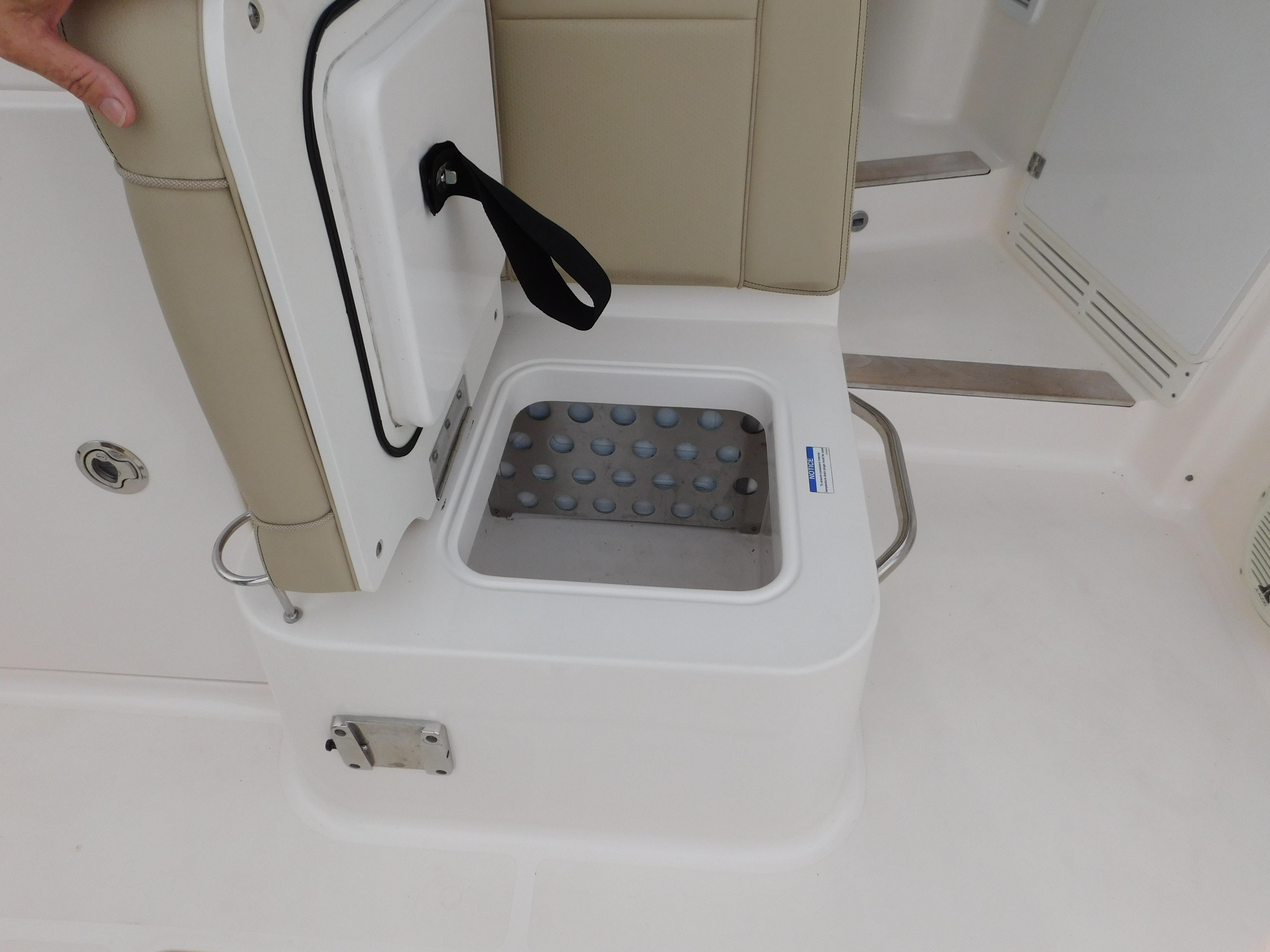 - Vacuum flush marine head with 18 gallon holding tank, macerator discharge pump, deck pump-out fitting and bronze through hull fitting