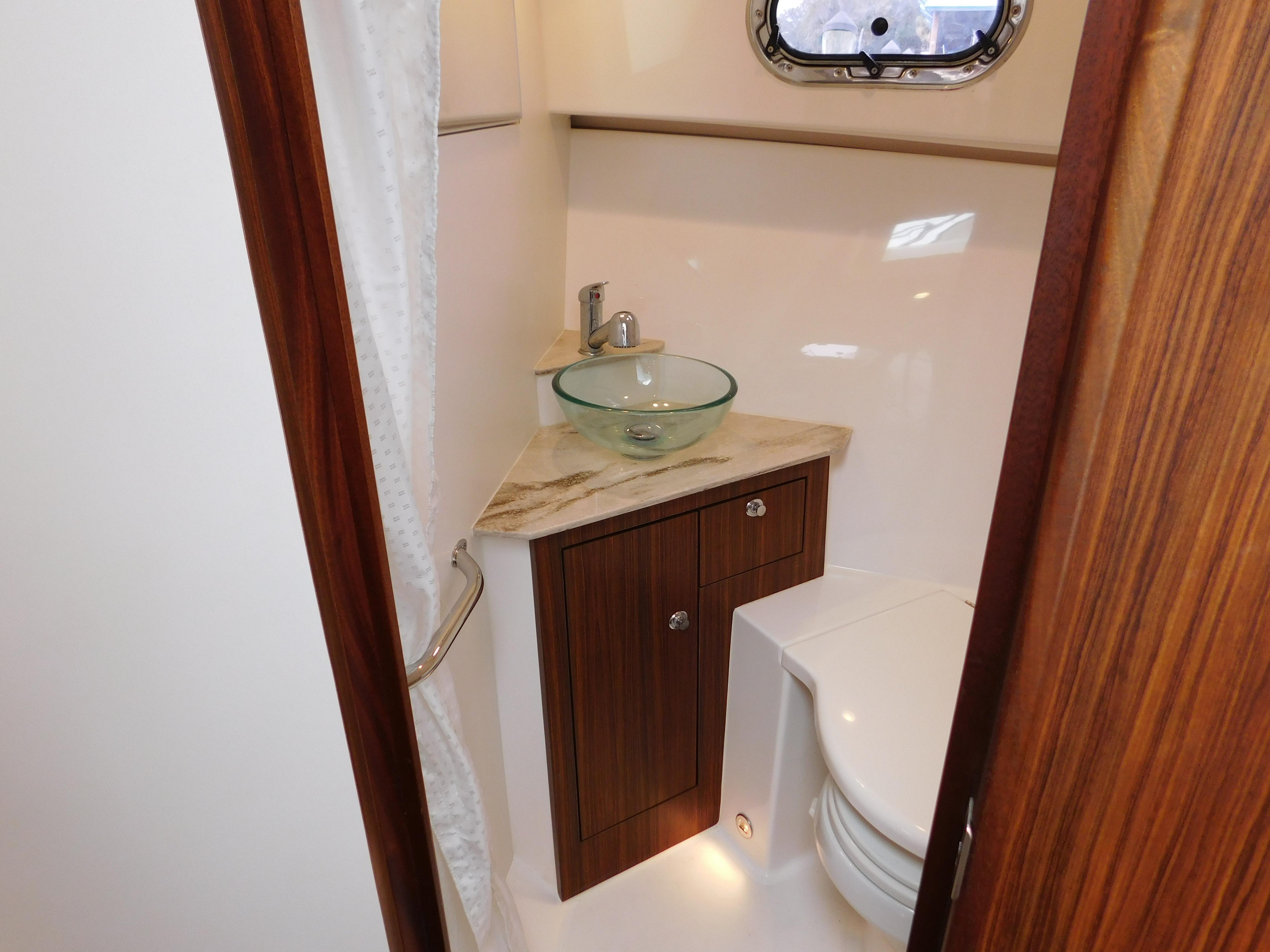 - Fiberglass enclosed head compartment with non-skid pattern area