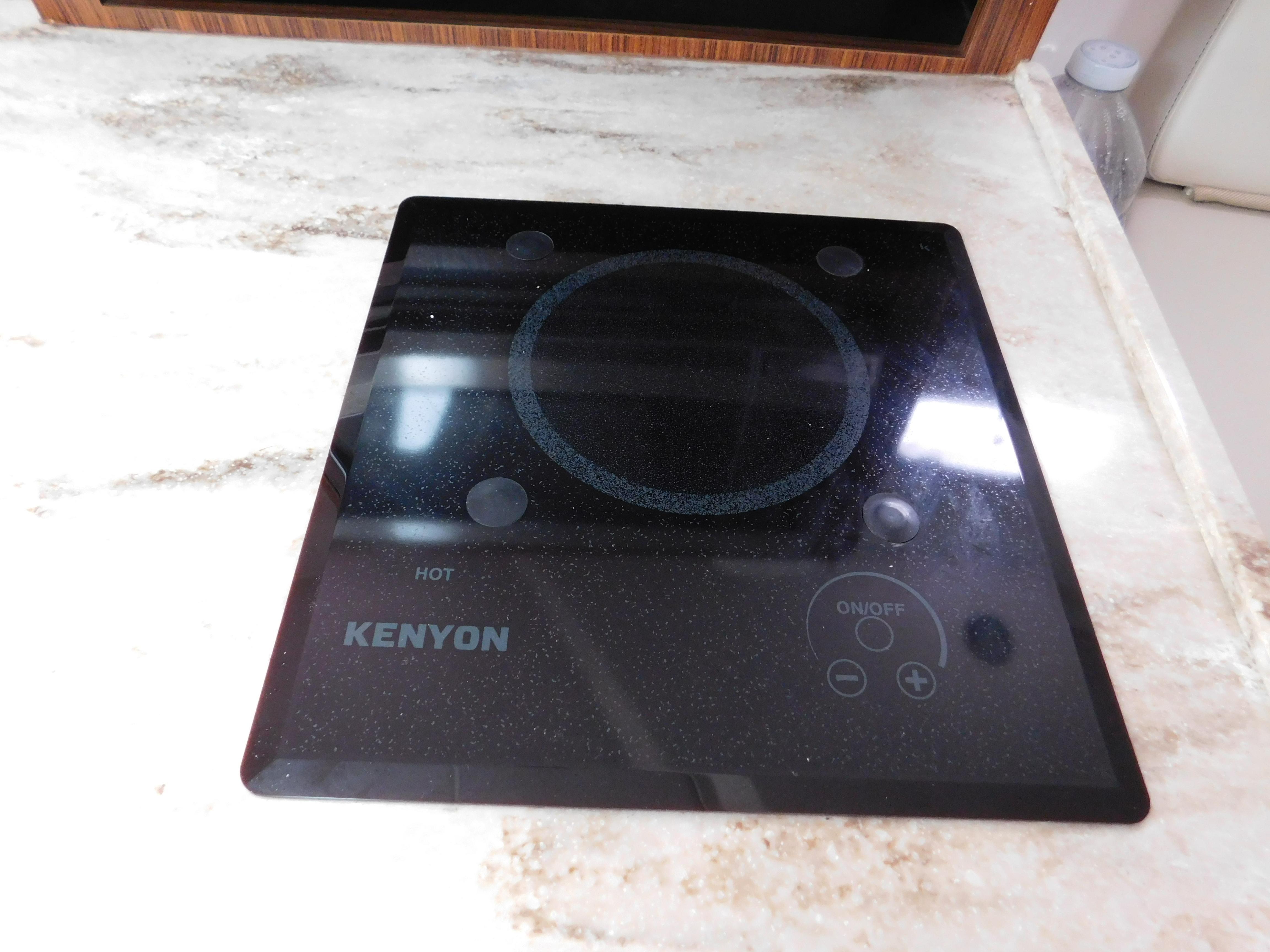 - 120V single burner glass cook top with touch controls and pop-up pot holders
