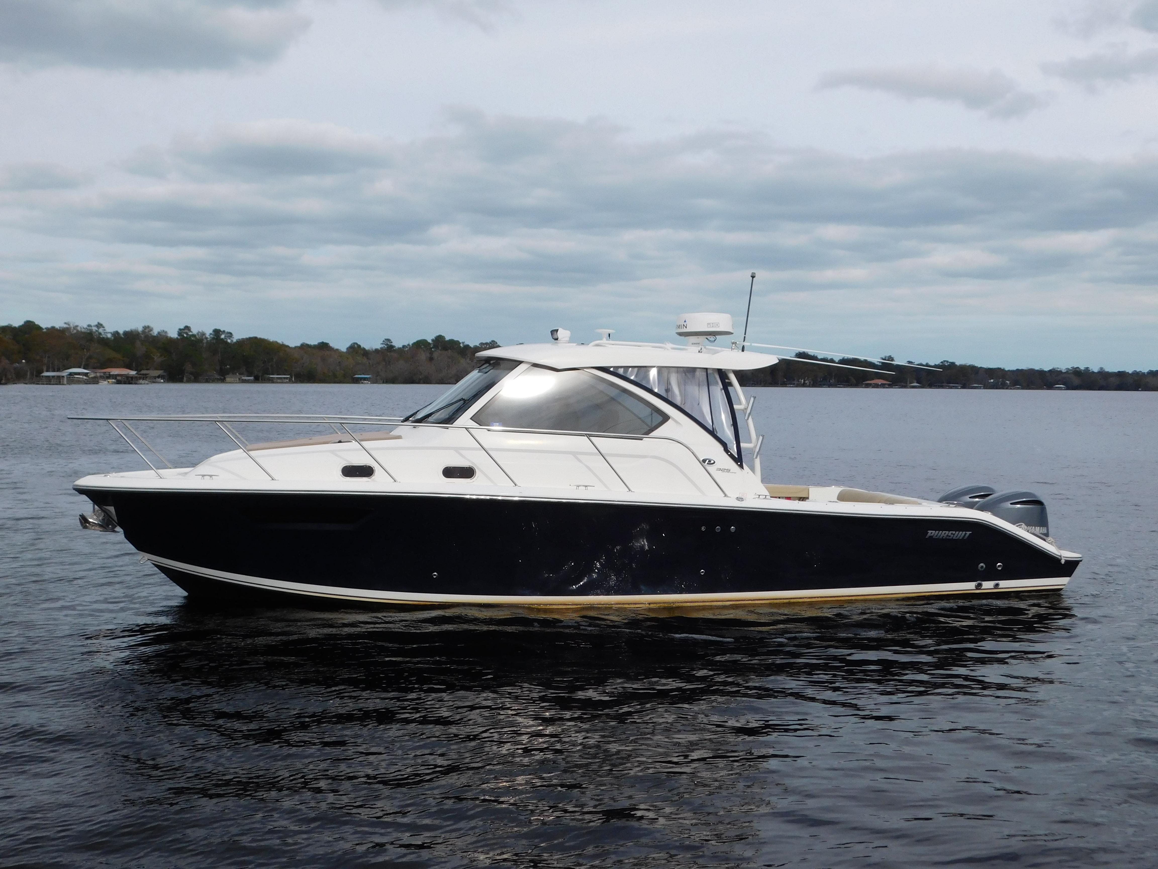 Another Major Price Drop - Offers Strongly Encouraged!This 2018 Pursuit OS-325 is nicely maintained and well equipped. Power is provided by twin Yamaha F300 motors with 580 original hours. The Fischer Panda 4kw diesel generator has 350 hours. The boat is equipped with a full compliment of Garmin electronics including twin 7612 MFD's, 24" closed array radar, 315 VHF and auto pilot. She is also equipped with the Sea Star Optimus 360 joy stick steering system with station keeping. A full listing of the options is included in the spec sheet. Accommodations include air conditioned helm & cabin, dinette that converts to a marine queen berth, located in the bow. A second marine queen berth located midship. Enclosed wet head with vessel sink to starboard. And a compact galley with, refrigerator, stove & microwave, to port. Seller will consider trade-ins of 23' to 25' center console. Please feel free to contact us with any questions or to setup an appointment to see the boat.