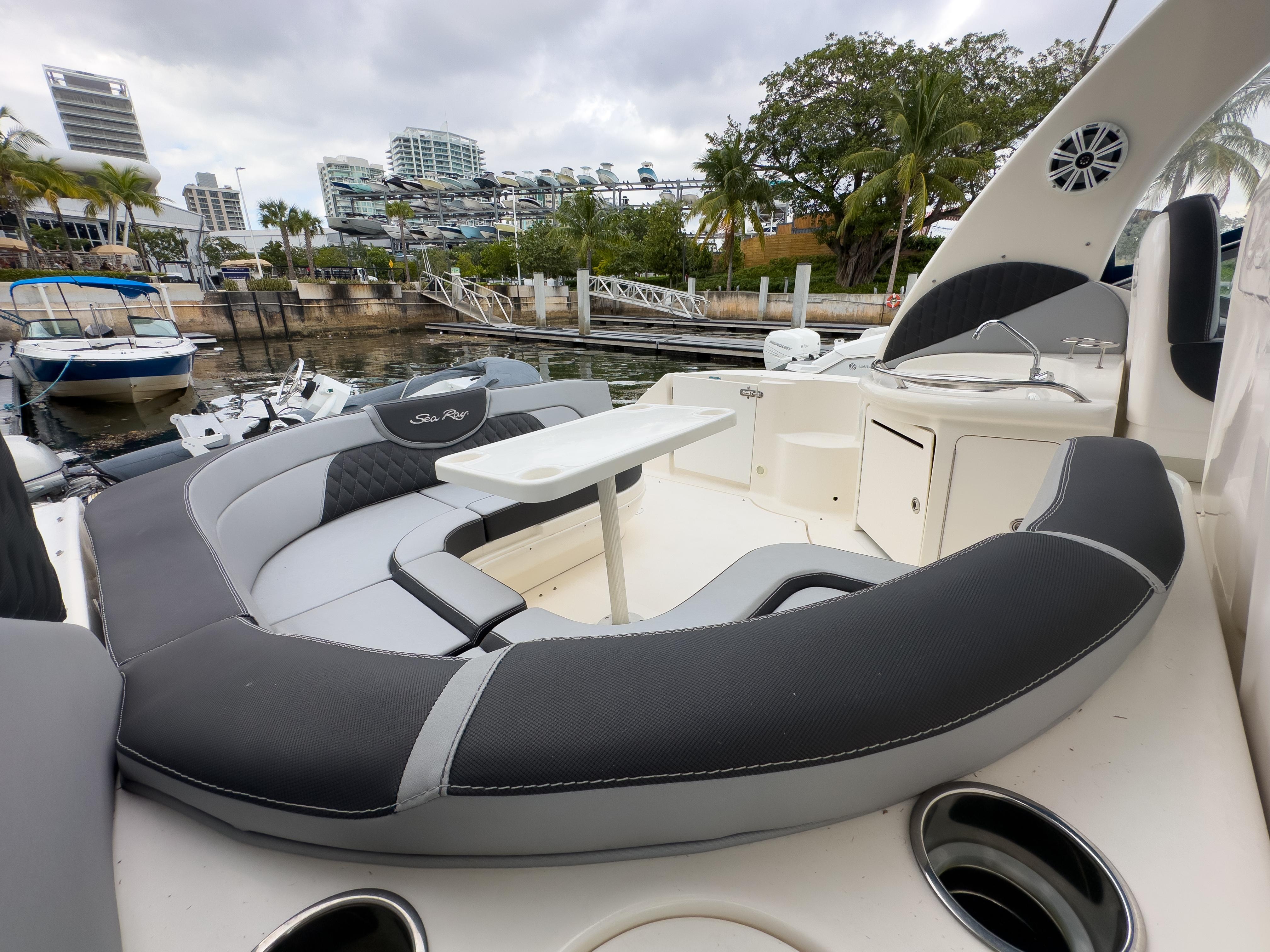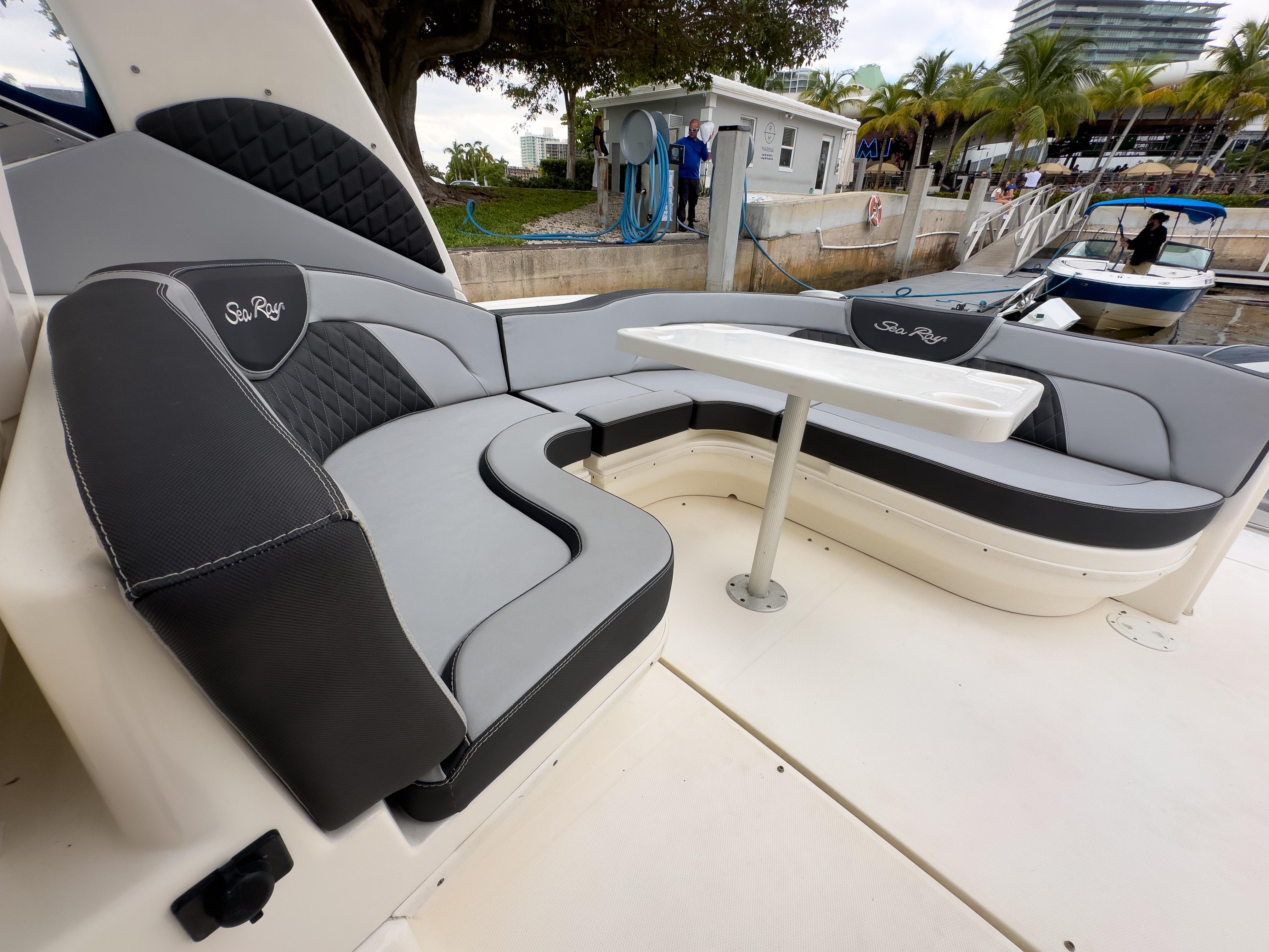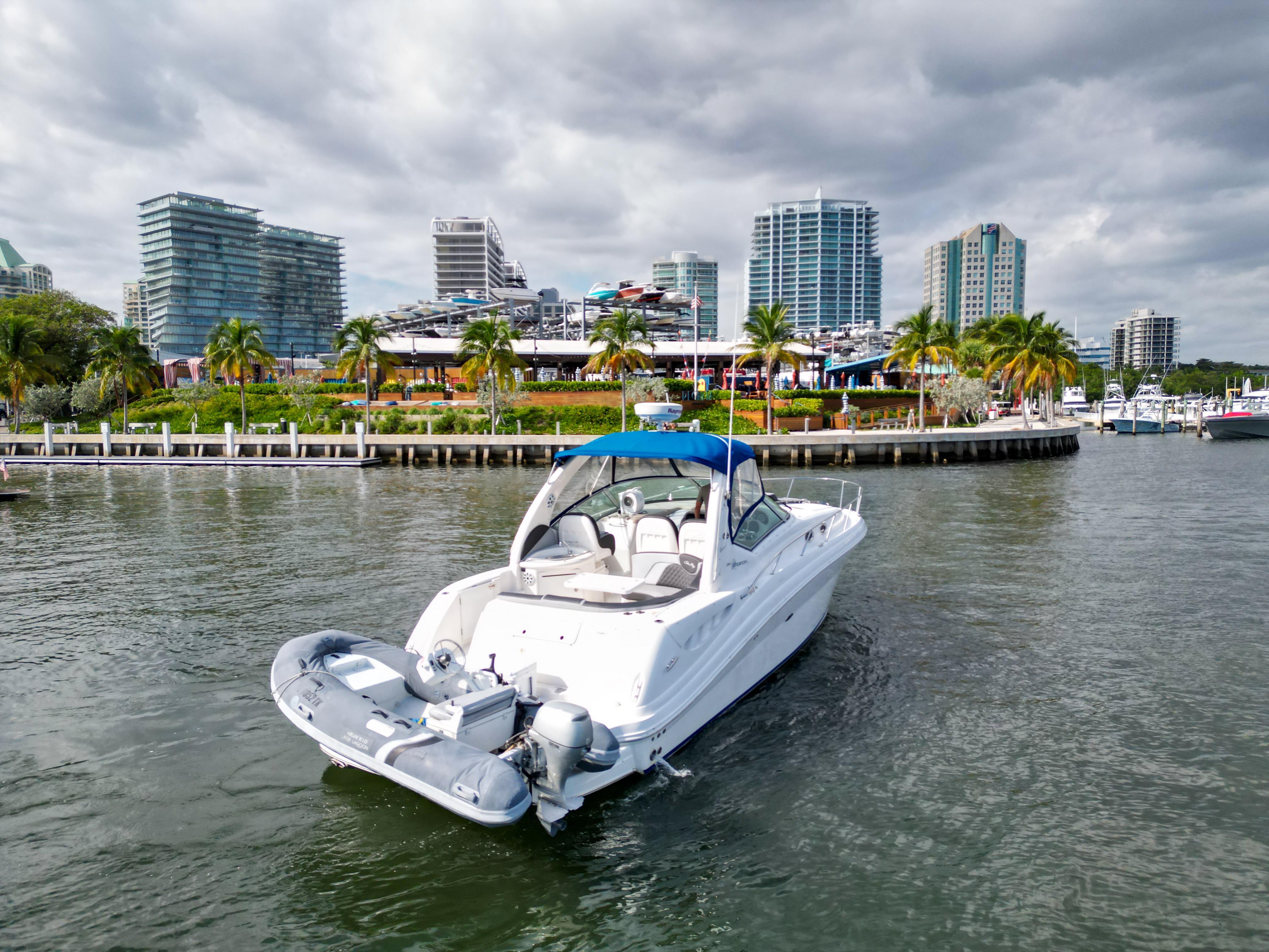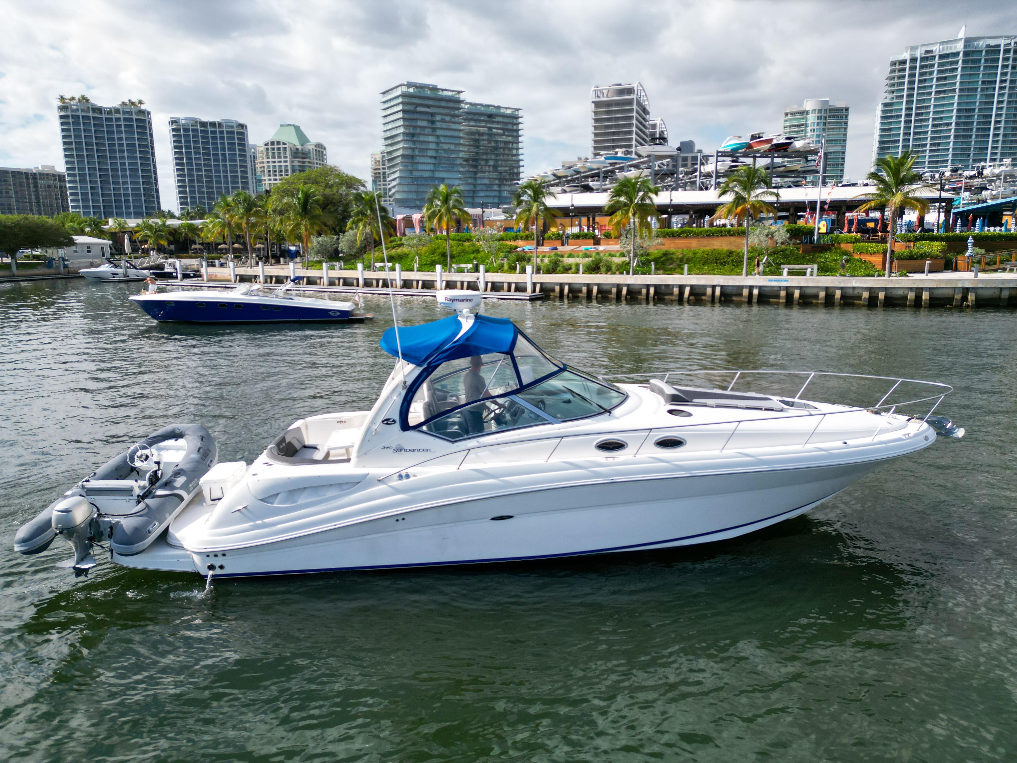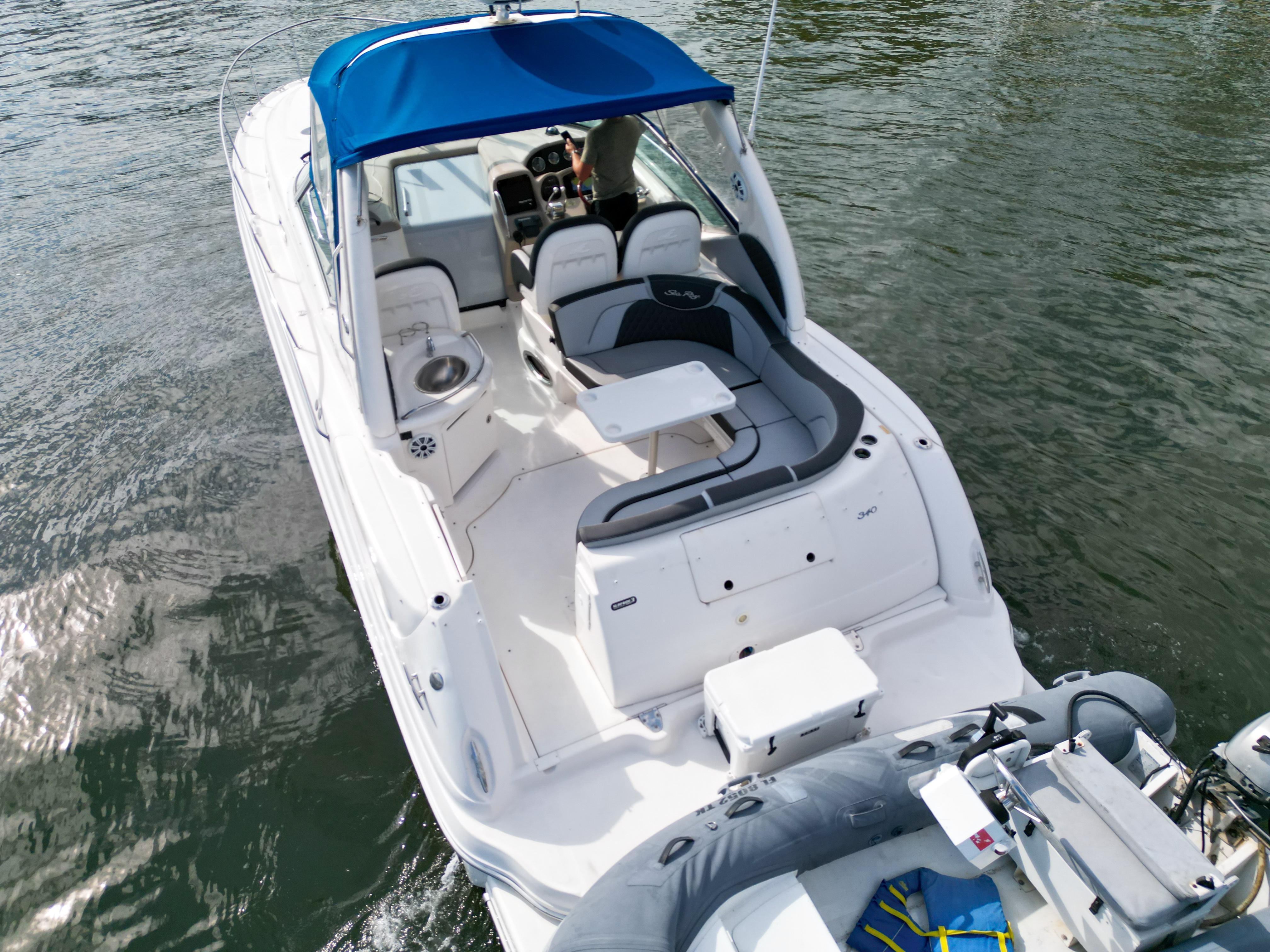 2005 Sea Ray 340 Sundancer . This vessel is well-equipped to deliver an exceptional boating experience, combining style with functionality.Boat Highlights:• Engines and Performance: Powered by twin Mercruiser 8.1 Horizon gas engines with a dual cooling system and shaft drive. The starboard engine has approximately 1100 hours, and the port engine is fresh off a rebuild with about 300 hours. • Recent Upgrades: The boat features new manifolds, new upholstery, and new hydraulic systems for the engine hatch, enhancing both performance and aesthetics.• Audio and Entertainment: A new audio system has been installed, offering premium sound quality for your enjoyment while cruising.• Spacious Living: The interior is in exceptional condition with full flooring coverage in the salon. Capable of sleeping 4-6 people comfortably, it’s ideal for family outings or entertaining guests.• Additional Features: An extended swim platform adds an extra 3 feet, perfect for relaxing or engaging in water activities. The sale also includes a tender.• Weather Protection: Equipped with new isinglass to enclose the helm area, ensuring clear visibility and protection against the elements no matter the weather.This 2005 Sea Ray 340 Sundancer represents an excellent opportunity for anyone looking to enhance their maritime lifestyle. With its thoughtful layout and comprehensive features, it’s ready to take you and your family on countless memorable journeys.nterested in learning more or scheduling a visit? Contact us today!Step aboard the Sea Ray 340 Sundancer and set sail on your next adventure with confidence and style.