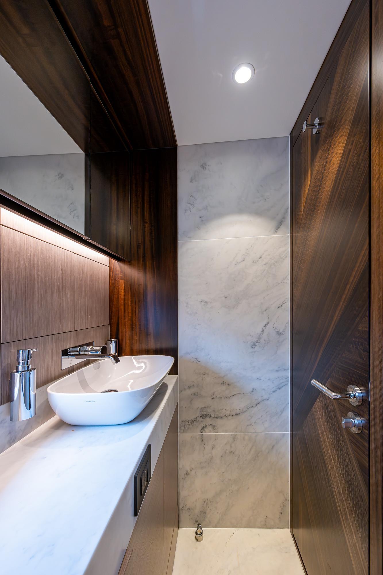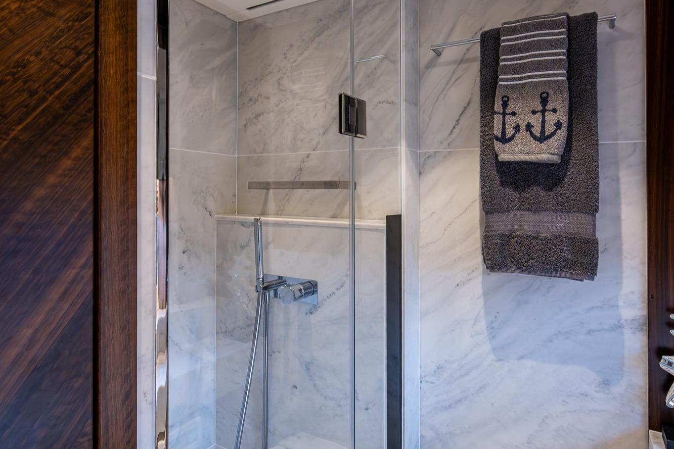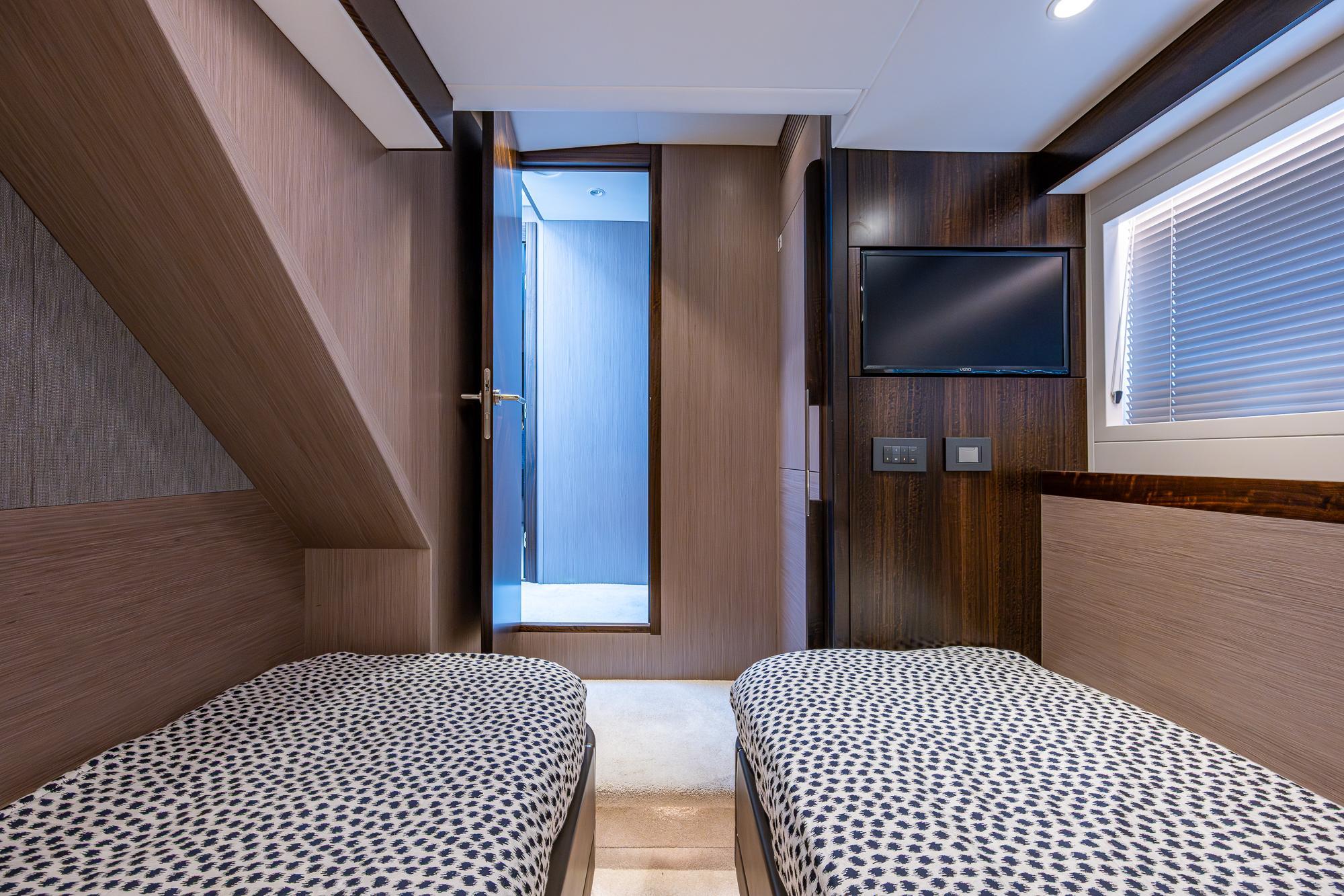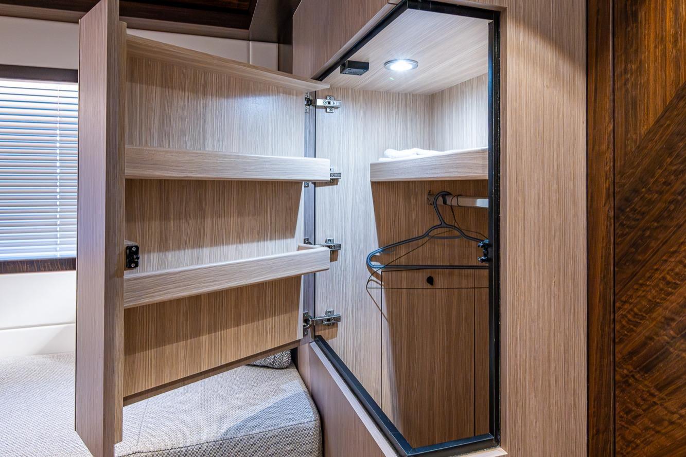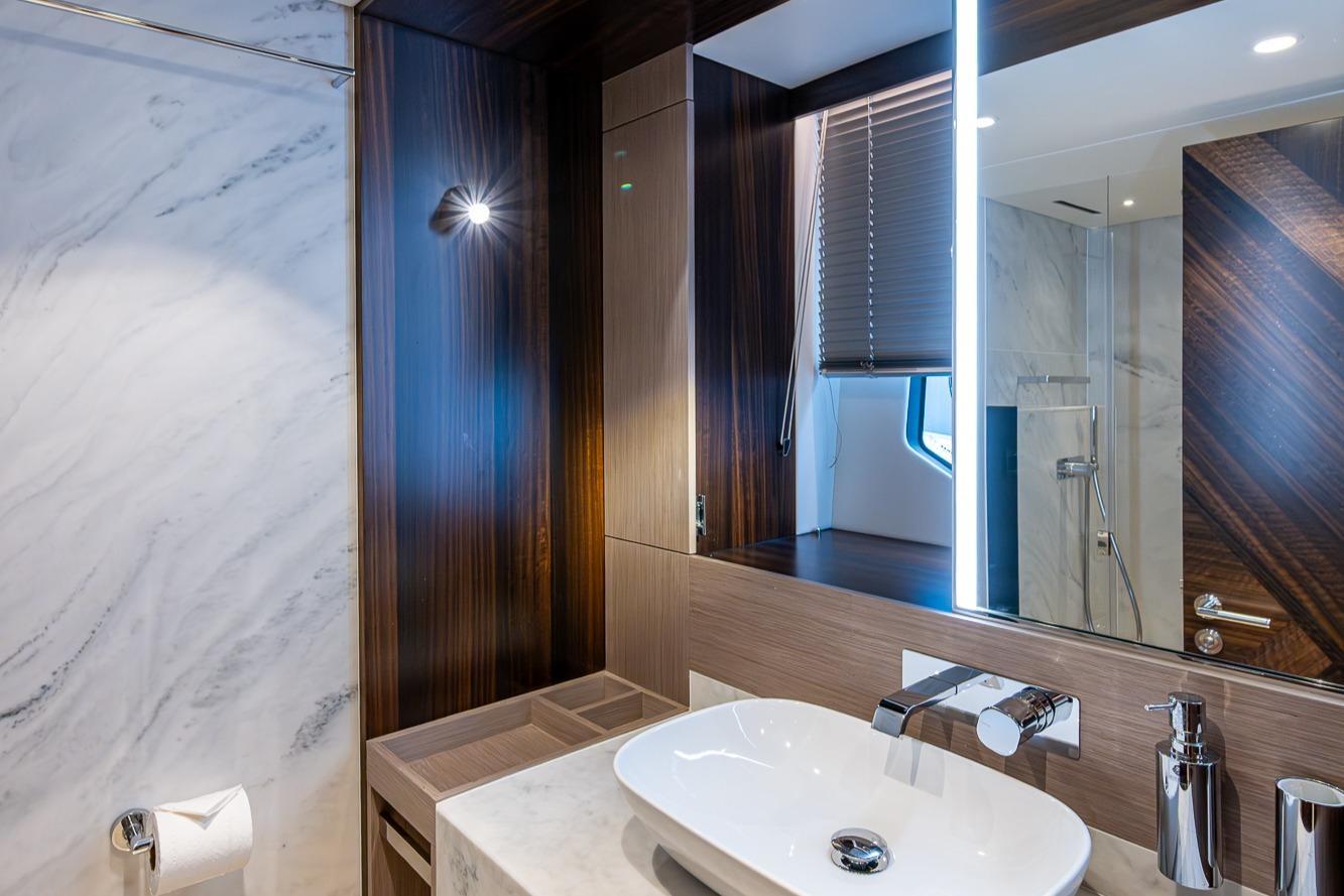 Built upon the exceptional family of award-winning Manhattan models, the Manhattan 68 offers an extraordinary level of comfort and luxury with incredible detailing. Throughout the main deck, there is a strong focus on creating generous, usable sociable spaces. The exterior lines flow effortlessly from the Portuguese-bridge bow seating and sunbathing areas to the expansive cockpit adjoining an innovative Beach Club with enhanced features, including a dedicated water level locker with built-in charging for two SeaBobs, delivering effortless enjoyment. Internally, the expansive main saloon benefits from sweeping glazing, extending below the TV console, revealing glimpses of the sea from all perspectives. The fully-equipped aft galley with a large dinette links seamlessly to the cockpit via full-width sliding doors, helping to bring everyone together. The innovative design layout allows owners to welcome guests with a strong focus on ambient lighting and interior detailing. Access to the spacious guest cabins is via the lower helm and elevated companion seating, whilst the sumptuous master cabin amidships is accessed via its very own staircase to port. This exceptional layout allows the owner and guests to move effortlessly between spaces. The interiors boast exquisite attention to detail with a new palate of upholstery that provides a cool, crisp, and contemporary look, unmistakably a Manhattan. The special edition Manhattan 68 Pacific option features a newly configured saloon layout with double over-sized U-shaped sofas on the main deck to maximise entertaining space on board. Below deck, owners can expect a continuation of this yacht’s meticulous design. The Pacific arrangement offers an exceptional amount of space for a boat of this size. The master cabin affords owners with flexibility to use their private space however they wish. Portside, owners can opt for a chaise lounge, breakfast table and seating, vanity table with additional draws, or an equipped sideboard for ample storage. What’s more, the master cabin benefits from its own private lounge and bar, providing a relaxing retreat for owners. This exceptional layout strikes a perfect balance between ample social spaces for entertaining and generous private quarters.