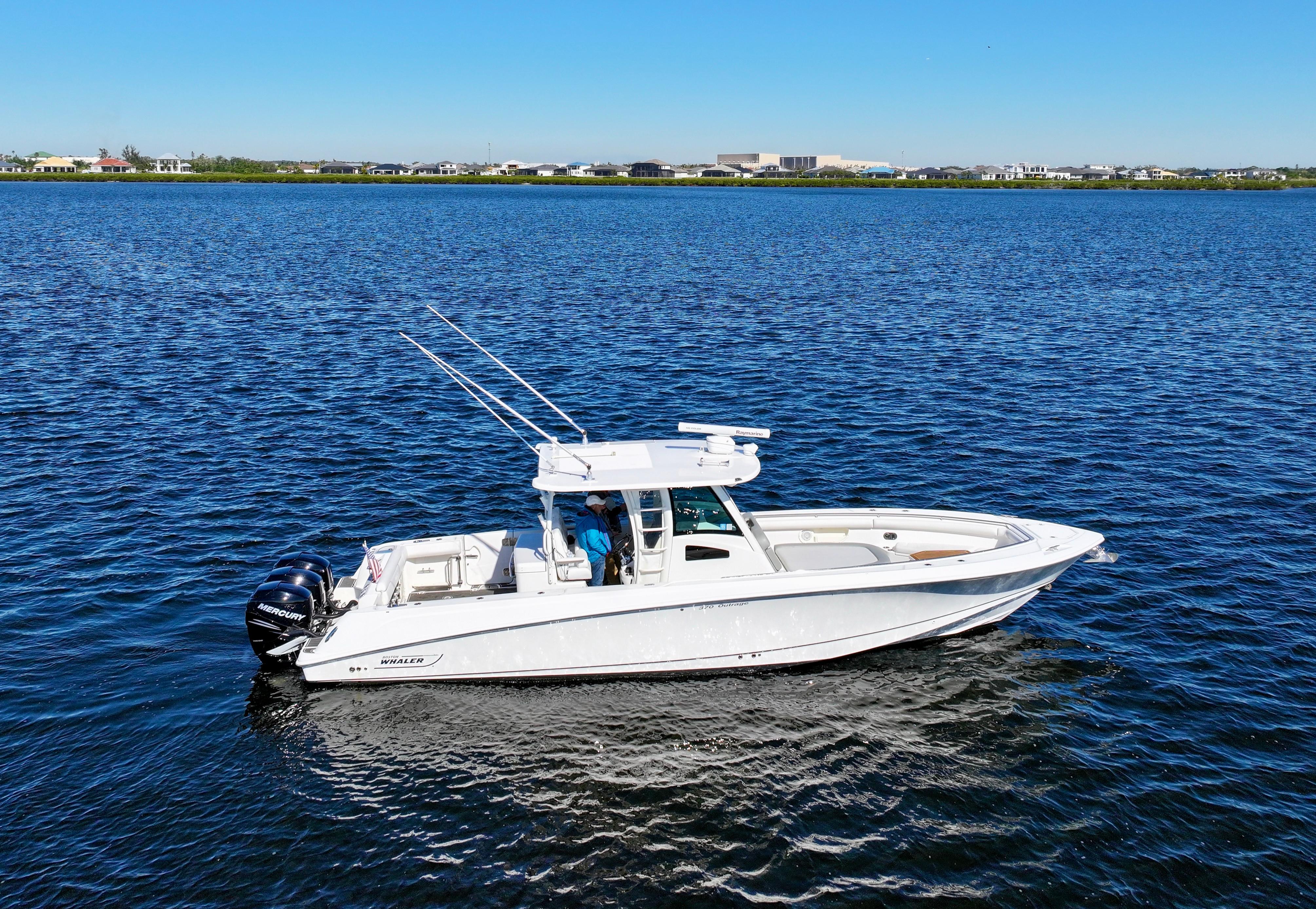 NEW ARRIVAL!!2012 Boston Whaler 370 OutrageTriple 300 Mercury Verado’s (339hrs)Twin Raymarine DisplaysRaymarine RadarBow ThrusterVHF Ship to Shore RadioWindlass Anchor with RemoteFull Service Records from BW Dealer!Brand New Custom Engine Paint on Verado’s!OutriggersJL Audio Premium SoundBRAND NEW Upholstery on LoungeHydraulic Table with Bow ControlsCanvas Cover for Lounge and Bow TableMisting System to Keep CoolFull Isen Glass EnclosureTrim Tabs w/ LED IndicatorFull Bait Prep Grill Station w/ LivewellFresh and Raw Water Wash-DownsDual Insulated Fish BoxesOversized Easy Access BilgeLED Docking and Courtesy LightingTransom LivewellVessel View Smart Craft GaugeFold Down Fighting BolstersTransom Fold Out Seating for TwoSide Exit Tuna Door w/ Removable LadderMarine Mat Sea Floor ThroughoutTeak Flooring In ConsoleTurn-Key Ready To Explore!The Only Reason the Boat is For Sale is Current Owner is Looking to Get a Larger Vessel!!