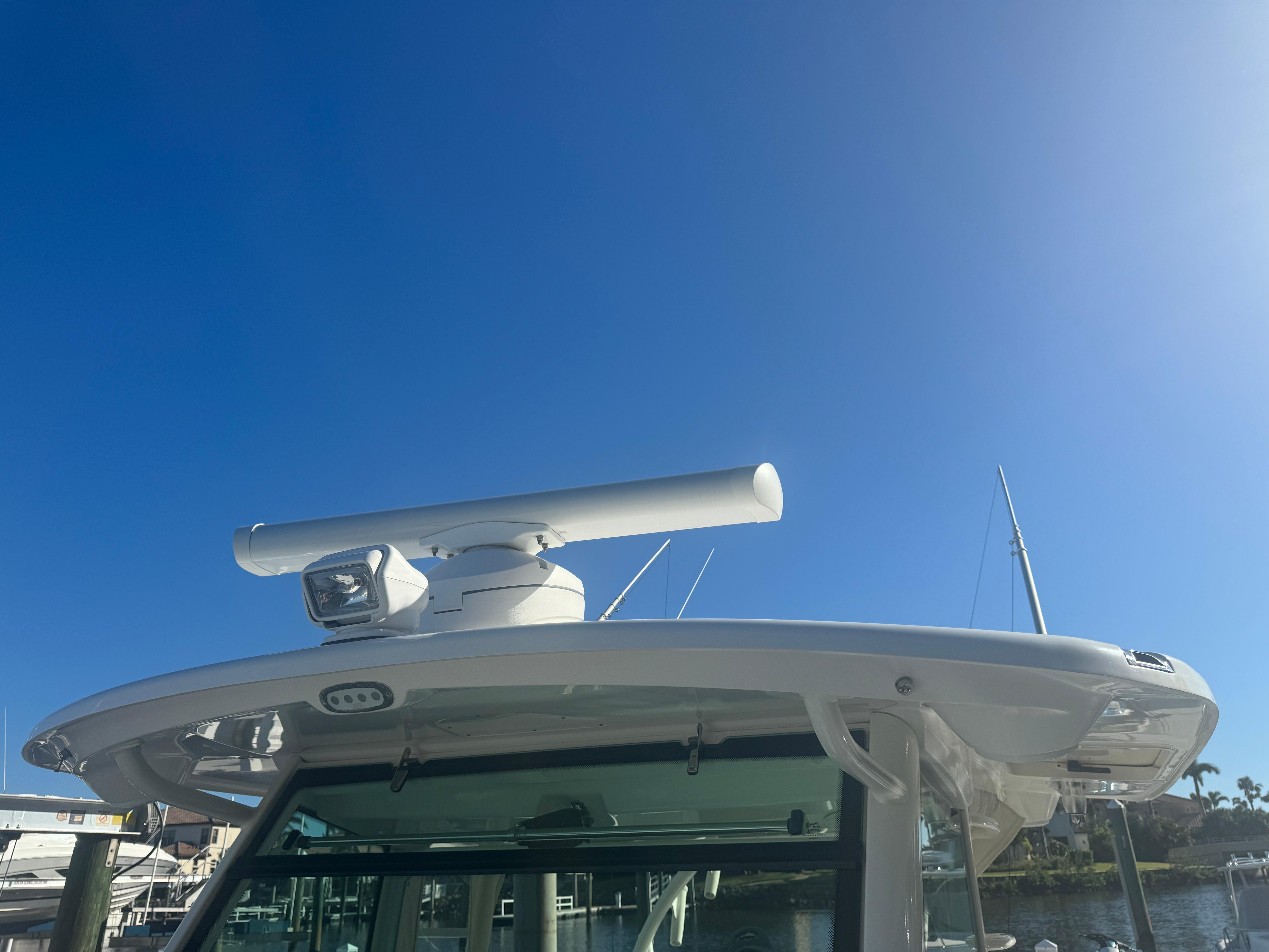 - Stainless steel drink holders (4 in bow, 2 in hawse pipes, 2 at helm, 4 at console lounge and 2 at leaning post)