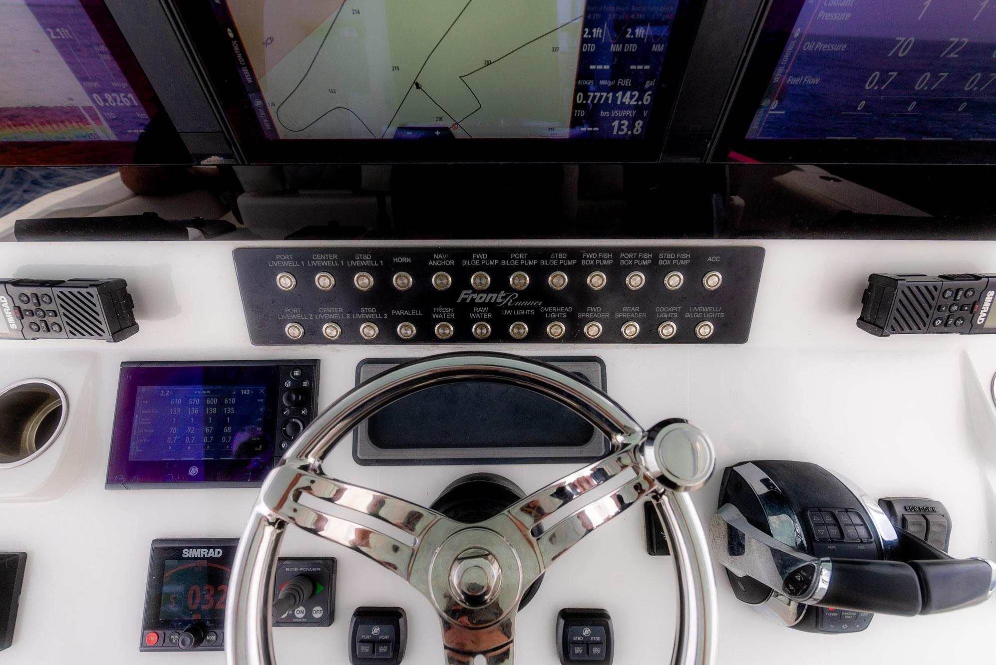Meet “Bluefin Tales” a Front Runner 39 CC powered by quad Mercury 300 V8’s, this package provides a comfortable cruise with great economy and is capable of reaching some of those spots offshore as it features an extended fuel tank (650 Gallons). Some notable options include triple Simrad multifunction displays, folding marlin tower, SiOnyx Nightwave camera, bow thruster, dive door, underwater lights, upgraded JL audio system, triple helm seats, Gemlux carbon fiber outriggers with center rigger, SeaDek, cockpit screen, slide out Frigid Rigid cooler, insulated sun lounge with chiller plate, air-conditioned cabin with a TV, tackle center, and much more. Contact the listing broker for more information or to schedule your showing.