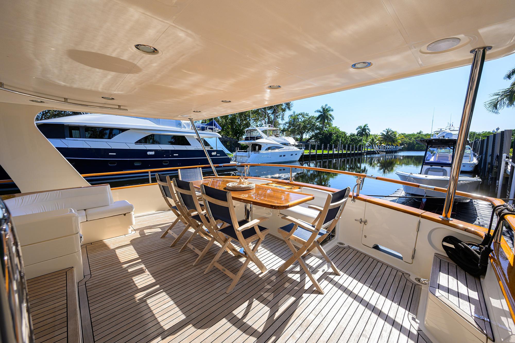 - New Garmin navigation system in wheelhouse and flybridge including GPS, depth, wind, autopilot, and radar