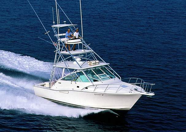 Created by the boat building team of Henry Mohrschaldt and Michael Howarth, the same craftsman selected by Fortune Magazine for building one of the top 100 products in the world, the Cabo 35 Express is a benchmark in design, construction, and performance. As an offshore powerboat racer, Dick Ornstein knows that it takes a masterful blend of design and construction to achieve a high level of performance. When it came time to purchase a sportfisher for his personal use, he chose Cabo for just those reasons. Opt for the turbo charged and after-cooler 435 hp (422 shaft hp) Caterpillar V-8 diesel, and the Cabo 35 Express has a top speed of more than 40 mph at 2750 rpm. Even more important in the real world, however, is that the Cabo Express can eat up the miles at a comfortable cruising speed of 33 mph and still have a range of nearly 350 miles. This combination of speed and range gets the Cabo 35 to a faraway fishing ground fast and allows it to stay longer than any comparable boat. Whether you're backing down on a billfish, spinning to stay with tuna, or firewalling the throttles to head for new fishing grounds, the Cabo 35 Express responds instantly to helm and engines.