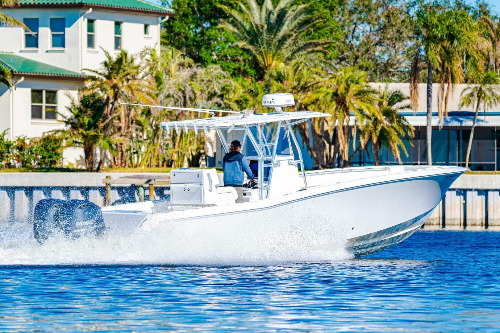 With 4,000 Hours on a nearly identical 33 Invincible, we at MacGregor Outboard Division can truly vouch for this boat being a best-in-class hull. From its incredibly spacious deck layout and massive storage capacity, this boat is hard to beat fishability - wise. With Michael Peters Design Patented SVVT Hull, the 33 maximizes speed and efficiency without sacrificing ride. With a 40 mph cruise at 4000 RPMs, the 1.7 mpg fuel consumption is unbeatable in the world of monohulls. Push the throttle down and this boat will run 60+ mph with the twin 300s. With fully updated upholstery, no scratches or dings, this example truly looks like it just left the showroom floor. Do not miss this rare opportunity to own a meticulously maintained and serviced 33 that looks, runs, and fishes like it just came out of the mold.