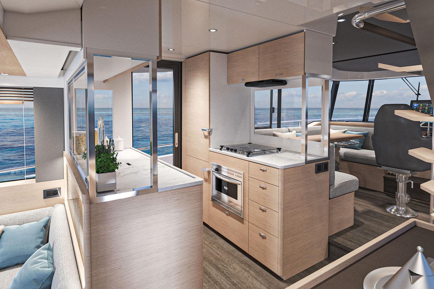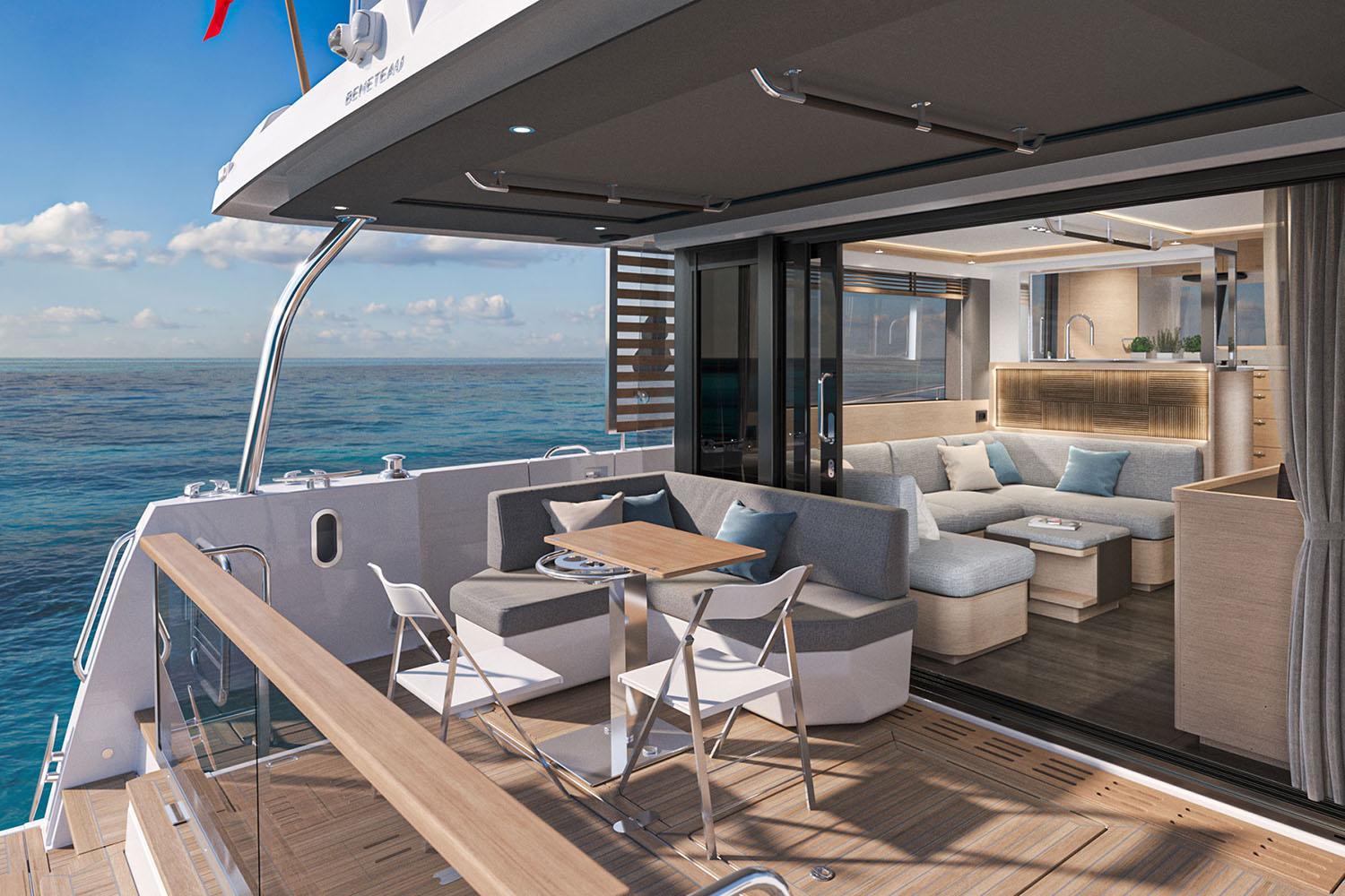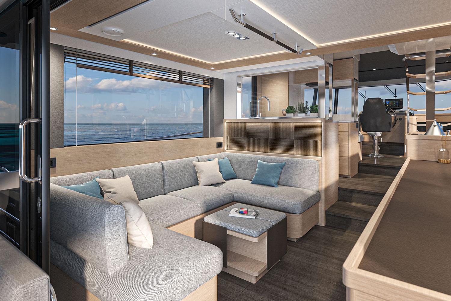 To mark the 140 years of BENETEAU heritage, an upgraded refined finish comes as standard, using premium materials to create an open space that feels elegant and sophisticated while also remaining warm, social and functional.
