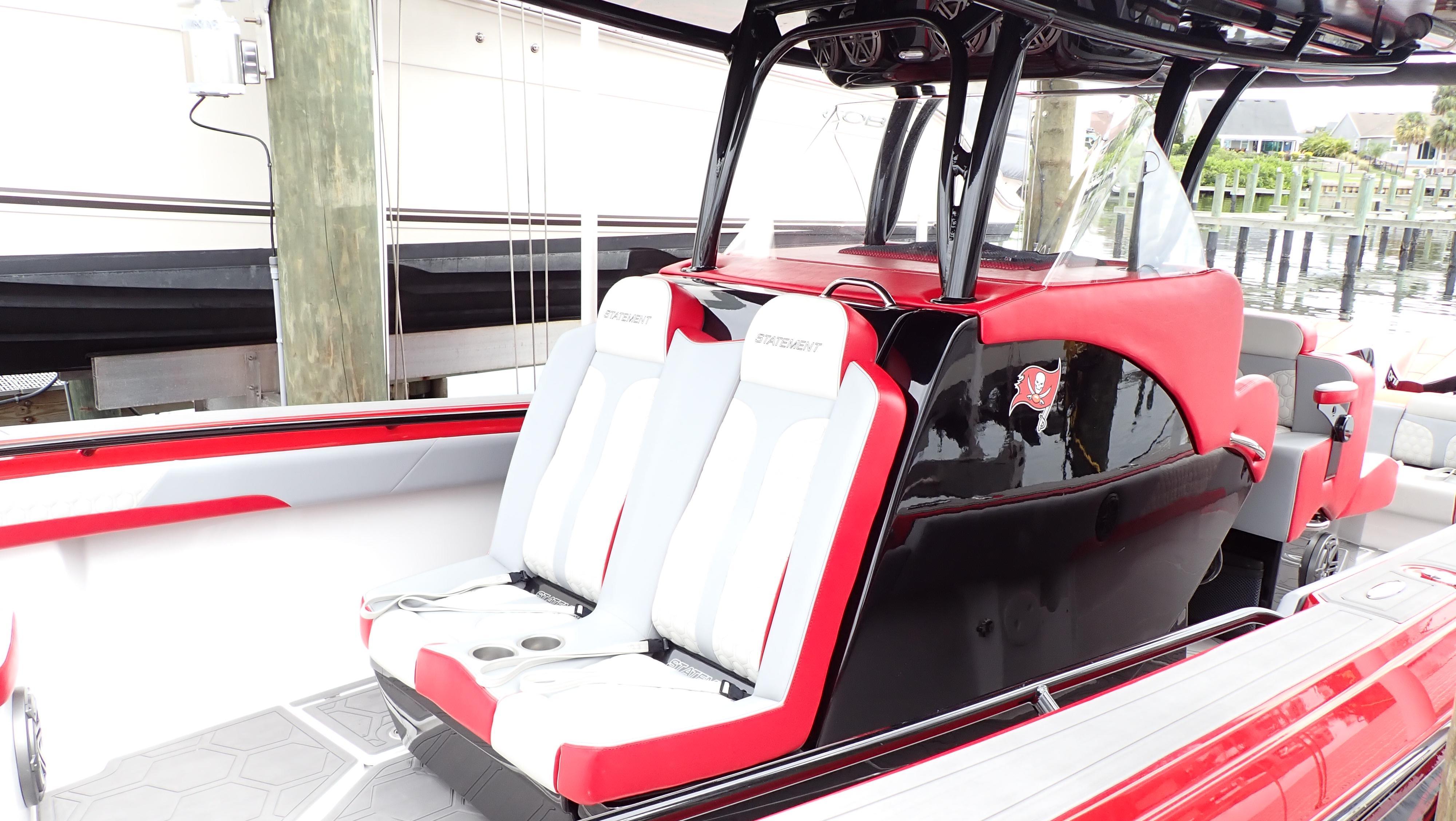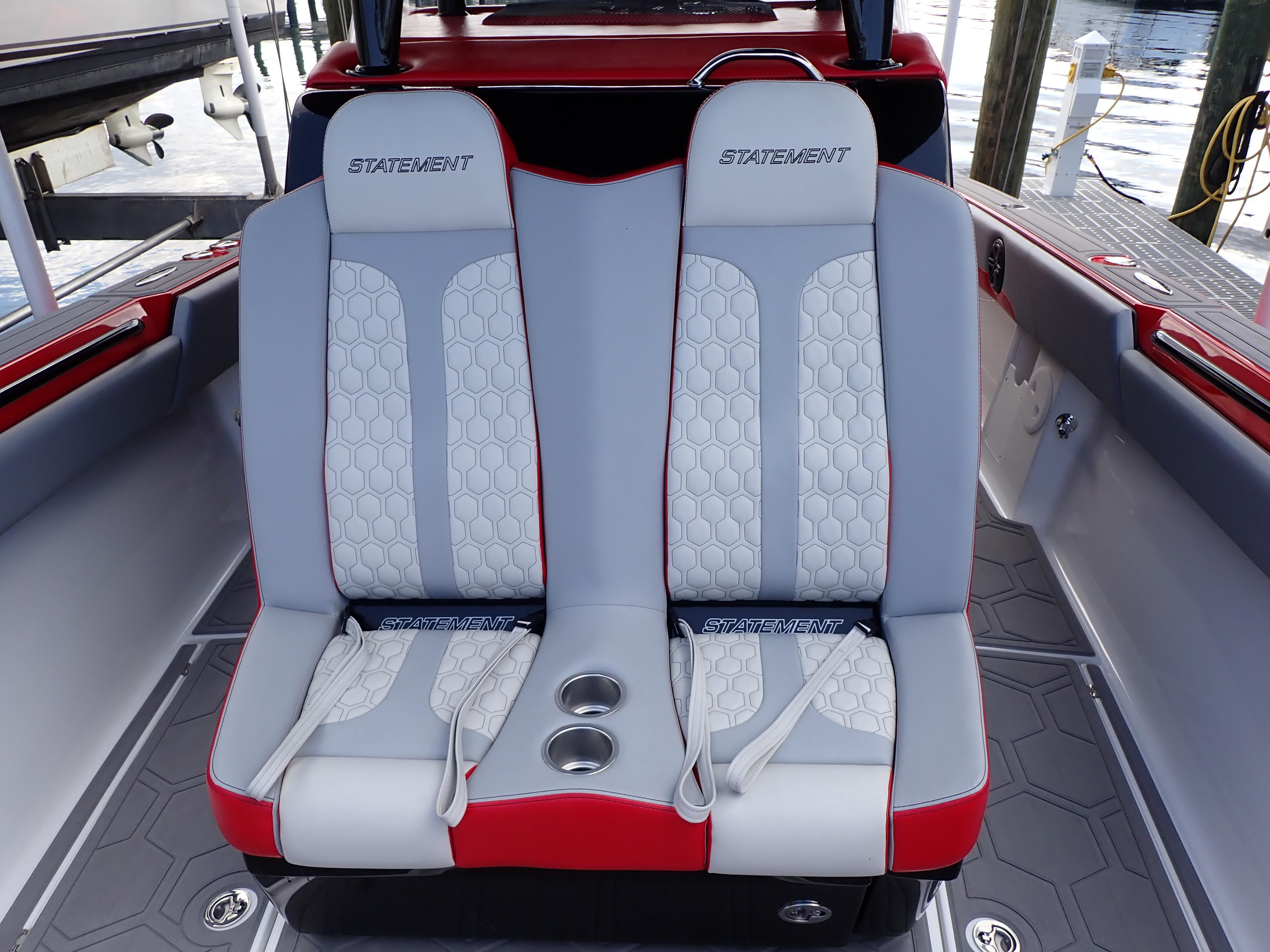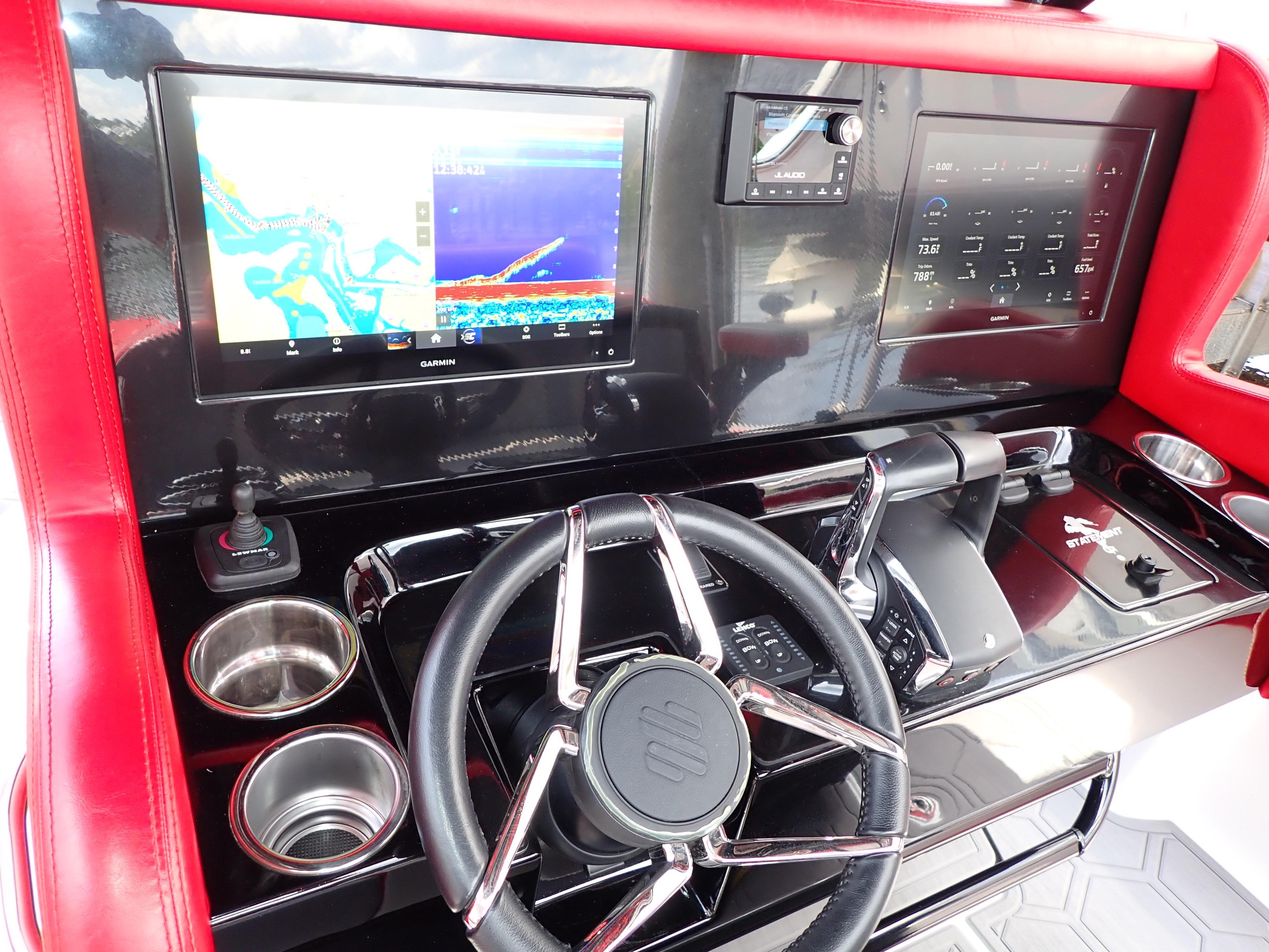 2024 Statement 350 OpenCustom Paint and InteriorColor Matched Triple Mercury 300R Racing MotorsOnly 45 Hours UseShows As New-Option LoadedBypass the factory wait list and build periodTwin Garmin 8616's Glass CockpitElectric Sure Shade Sun ShadeHigh End JL Audio Stereo -16 Speakers and 3 AmpsExperience everything that has made Statement a legend in the custom high performance power boat industry without the lengthy wait for a new build. This 2024 350 Open with just 45 hours use is option loaded from her triple 300R Racing Mercury's to her lengthy list of high-end options. Just detailed she shows "as new" and will not disappoint.Statement does an excellent job of summing up just what makes these amazing vessels so special:"At Statement, our first priority is to build boats that turn heads at the dock, make hearts race on the water, and keep doing those things reliably year after year. That means we don’t compromise anywhere in order to cut costs — not on materials, not on employees, not on processes, not on service.Because at the end of the day, if you’re not excited about your boat, there’s no price tag low enough to make it a good value.Instead of compromising to hit a price point, we leverage our unique strengths and business model to maximize value.As a small, family company with a hands-on owner/operator who lives and breathes performance boating, we save millions a year on the salaries of a suite full of executives. Likewise, our low-volume model means we sell every boat we build, saving millions more on marketing. And finally, our emphasis on retaining top craftsmen yields a better product at a lower cost than the high turnover rates and untrained workers common in the industry. The bottom line: superior value in a superior product."350 Open Standard Features Deck and CockpitSelf-bailing cockpit with integrated scupper systemNonskid deck and gunwalesObstruction-free "walking transom" swim platformAll stainless-steel hardware(5) pull-up cleats — 1 forward, 2 midships, 2 aftLow-profile, recessed stainless bow railFull cockpit wraparound coaming bolstersConsoleLeather-wrapped stainless steel steering wheel1/2” acrylic wraparound windshieldStainless steel cup holders (2)Grab handleLarge forward entry to head compartmentHard topHeavy-duty welded aluminum with oversized tubingFully-finished fiberglass top w/ radio boxHelmFull digital switching and instrumentationLarge electronics mounting areaIn-dash latching storage compartmentHead compartment6’5” headroomMarine headFreshwater sink with pull-out faucetConsole access panelSeatingSport bench seat w/ integrated backrest aftWraparound bow seating with storage beneathForward console seating with backrestFiberglass helm seat module with integrated cooler storage beneath aft-facing seatStorageOverboard-draining, recessed bow anchor locker with ample storage for rope and chainPort and starboard recessed dock line lockers in forward gunnelsTwin insulated 202-quart fish boxes with macerator pumps aft642-quart insulated forward fish boxElectricalHeavy duty marine batteriesHeavy duty battery traysBattery switches with circuit breakersDual, high-volume automatic bilge pumpsIntegrated LED navigation lightsLED lightingForward and aft spreader lightsOverhead courtesy lightsCockpit courtesy lightsElectric, recessed horns with stainless grillesMechanicalStainless steel high-performance propellersFull hydraulic steeringMercury Racing K-Plane trimPlease see 136 HD photos and a 13-minute video shot in HD to fully appreciate this amazing 2024 Statement
