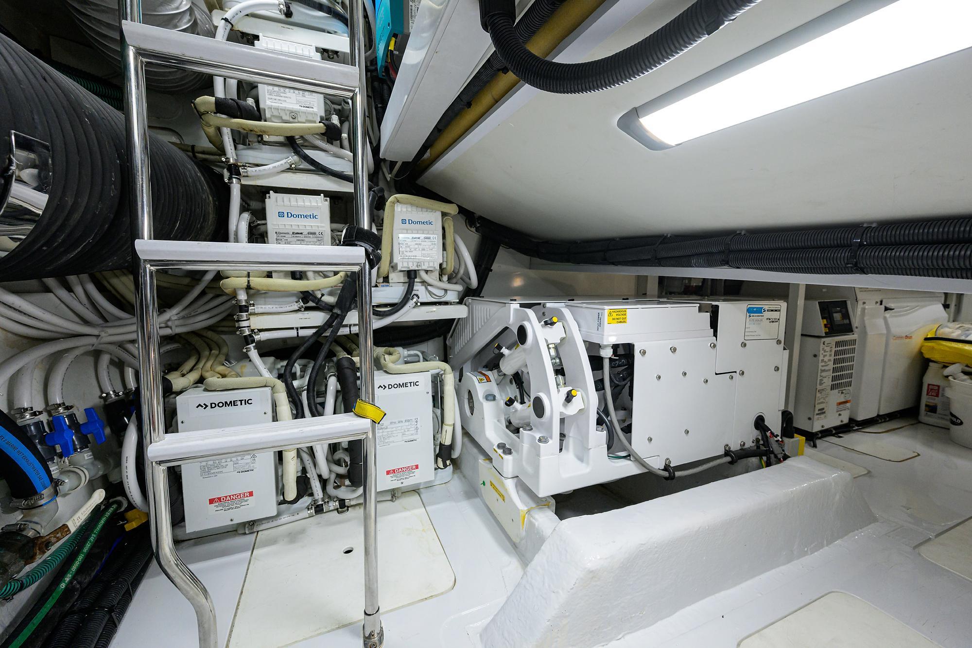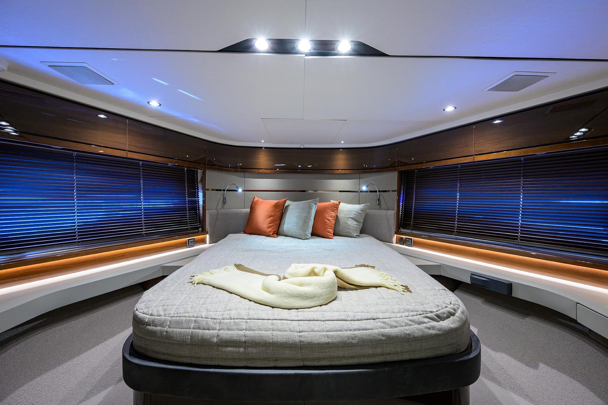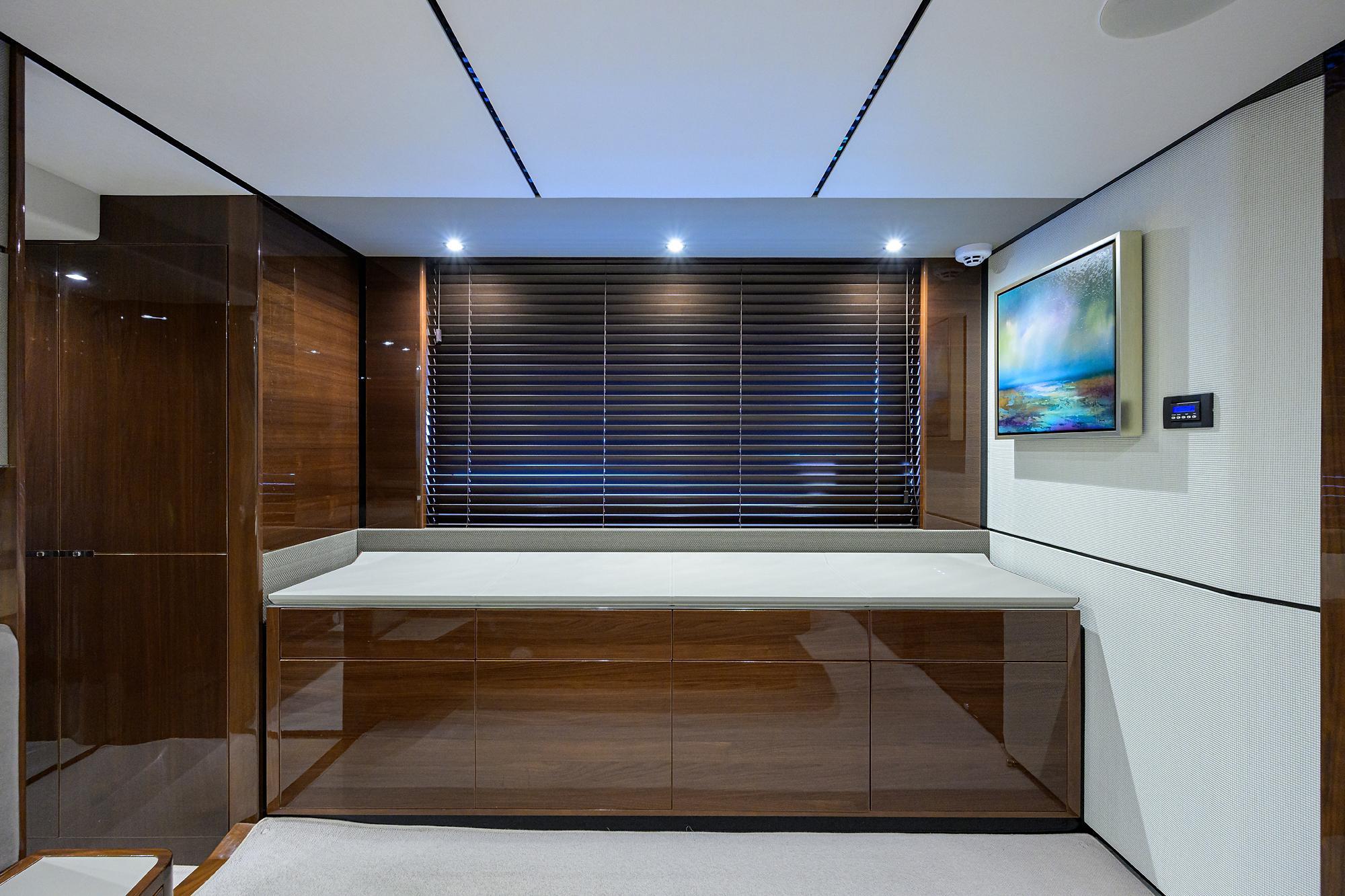 Starboard side by side berths convert to a double berth when needed by a power sliding mechanism.